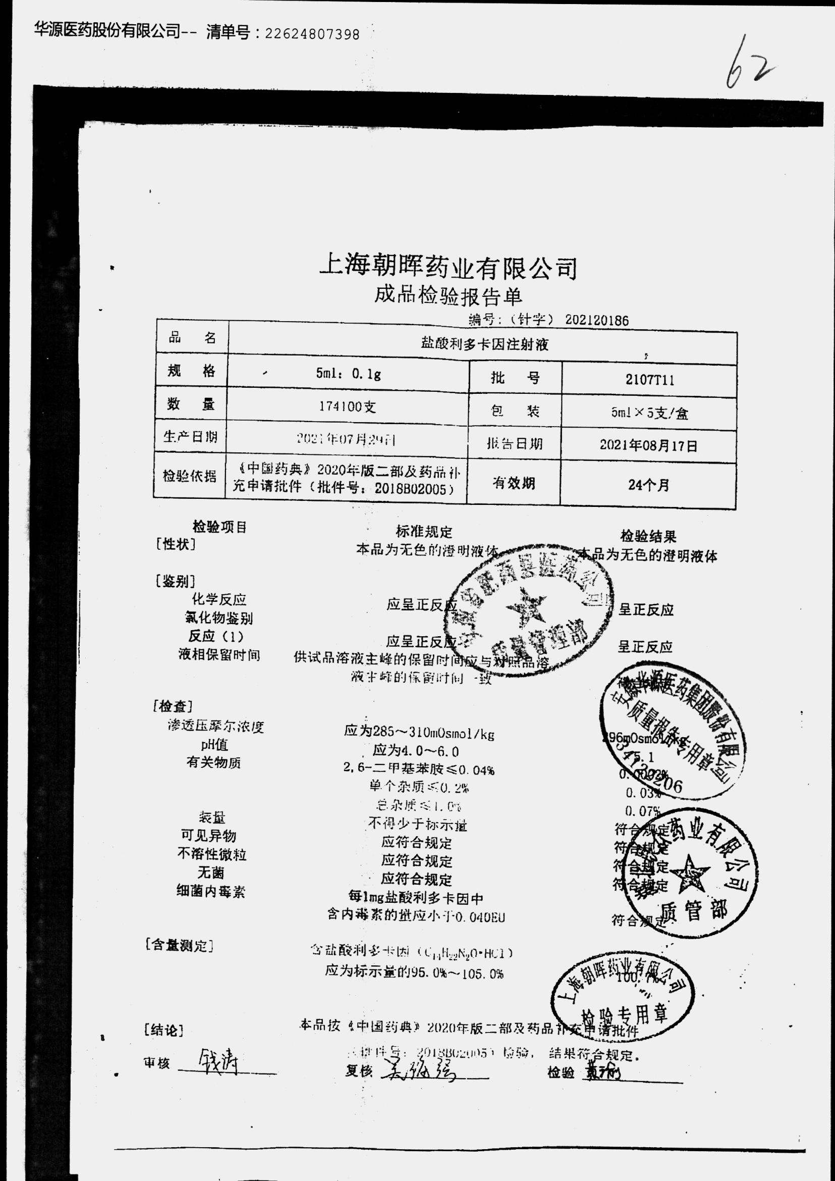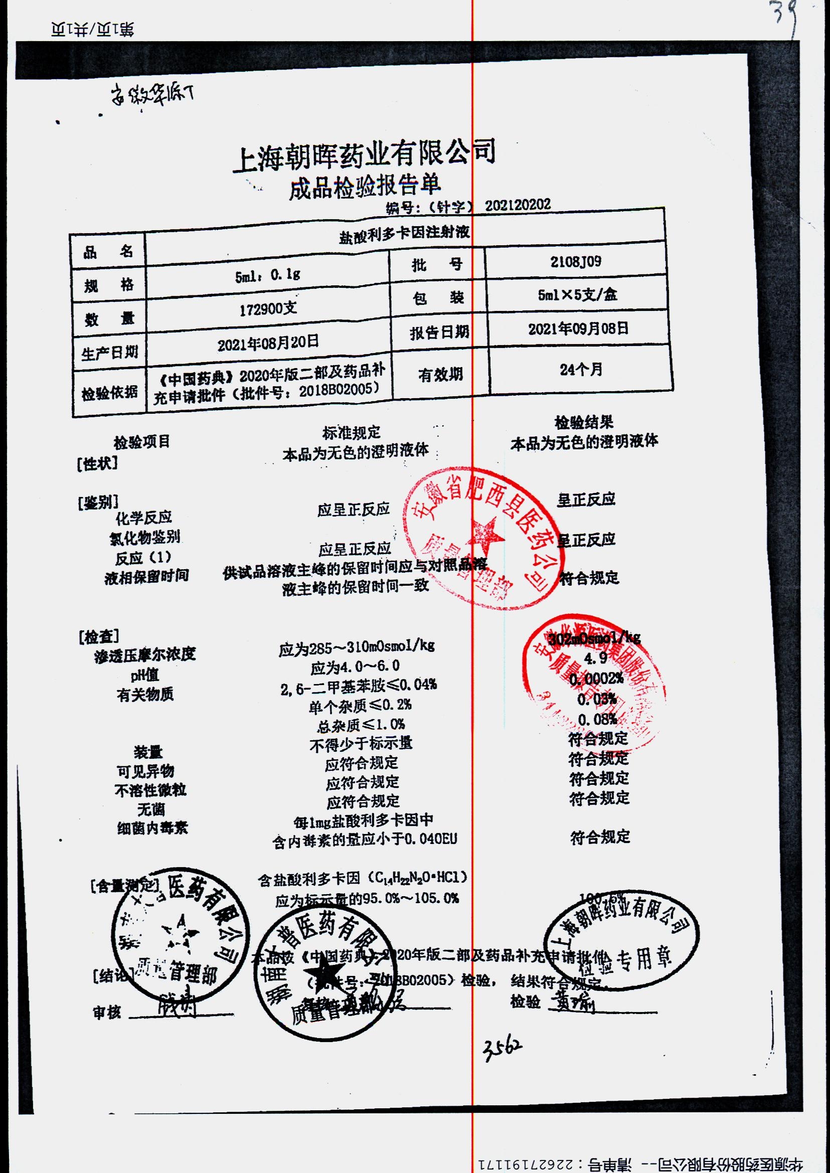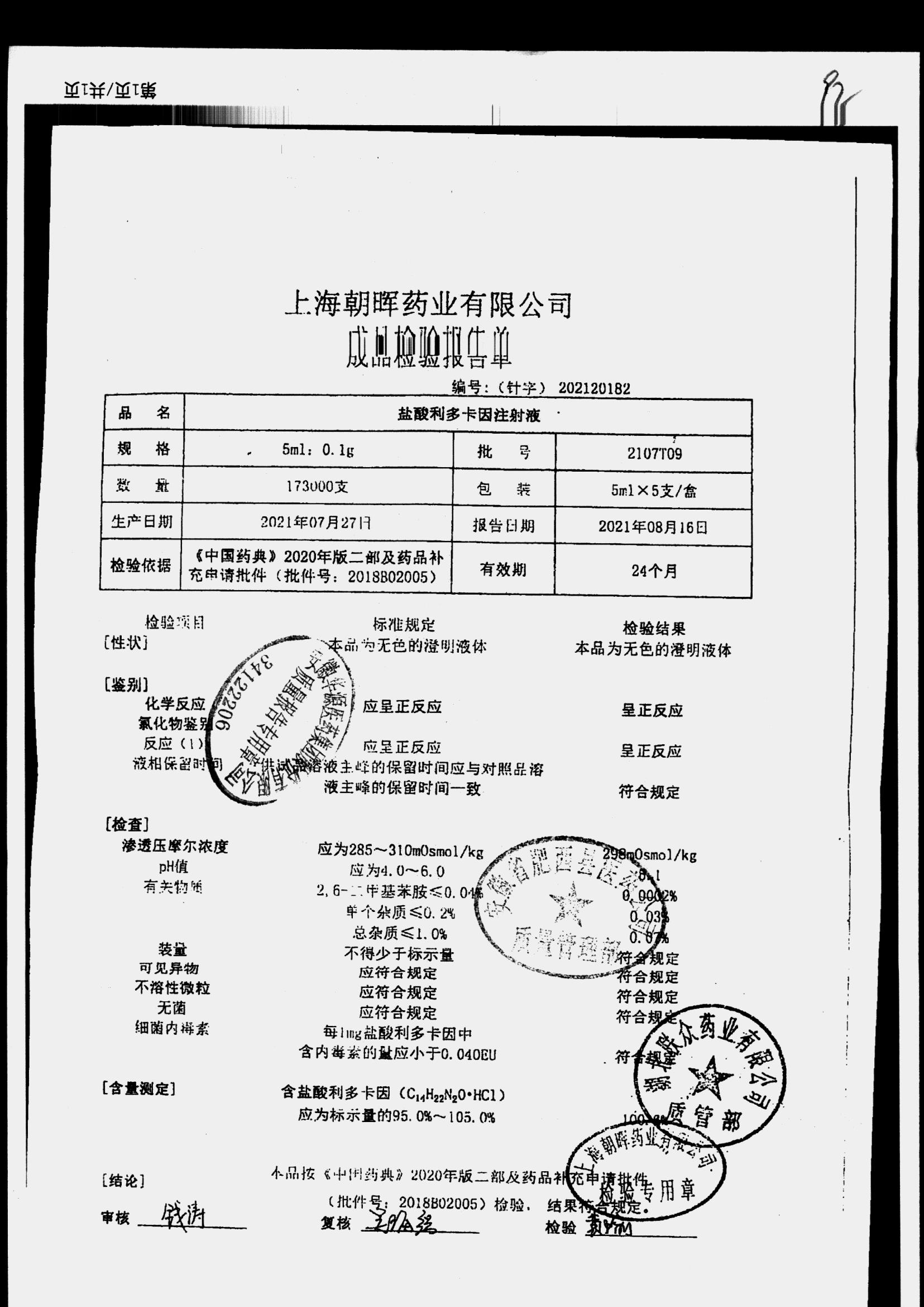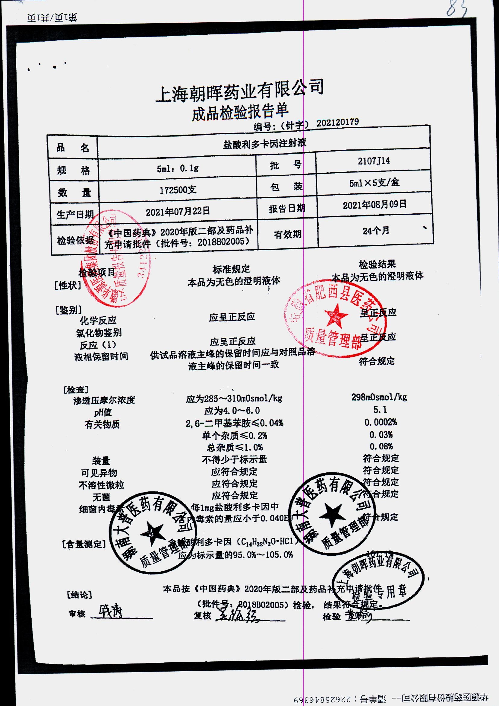 盐酸利多卡因注射液 | 5ml*5支 | 2108J09 | 查看详情 |