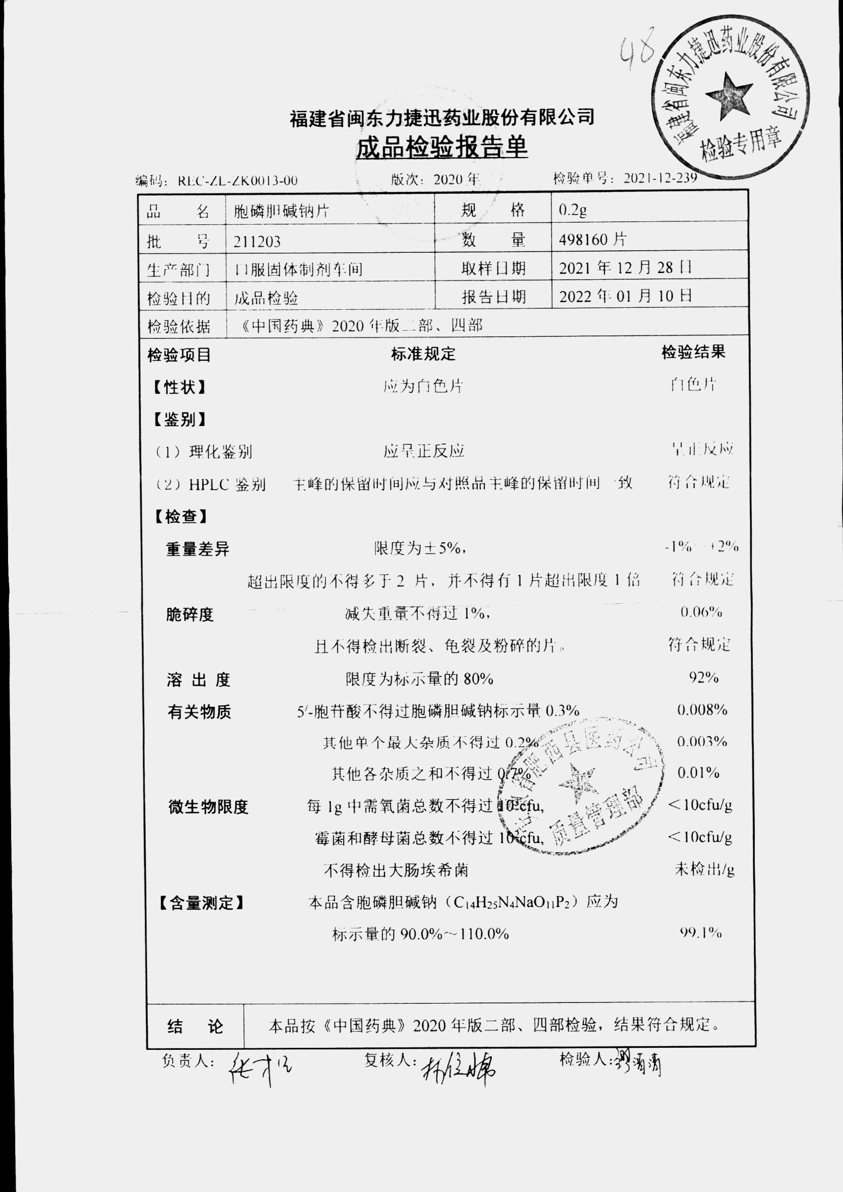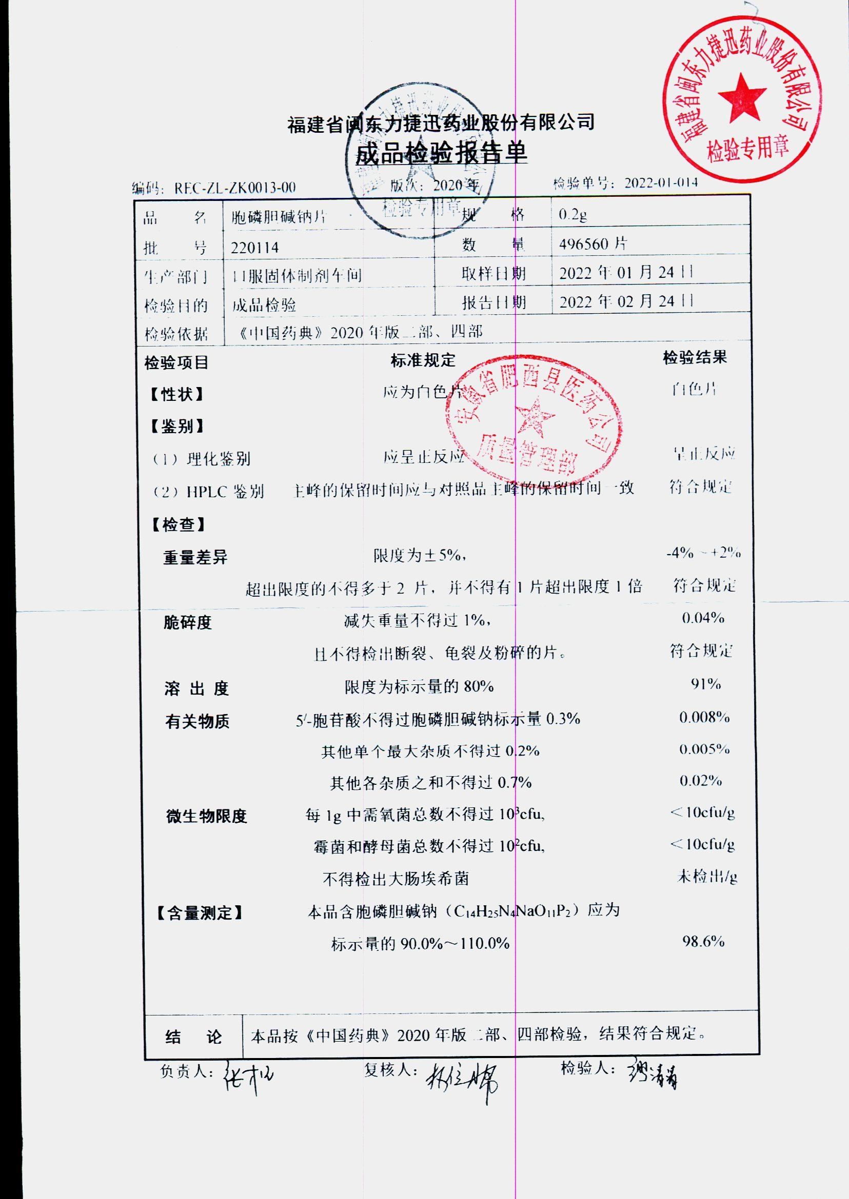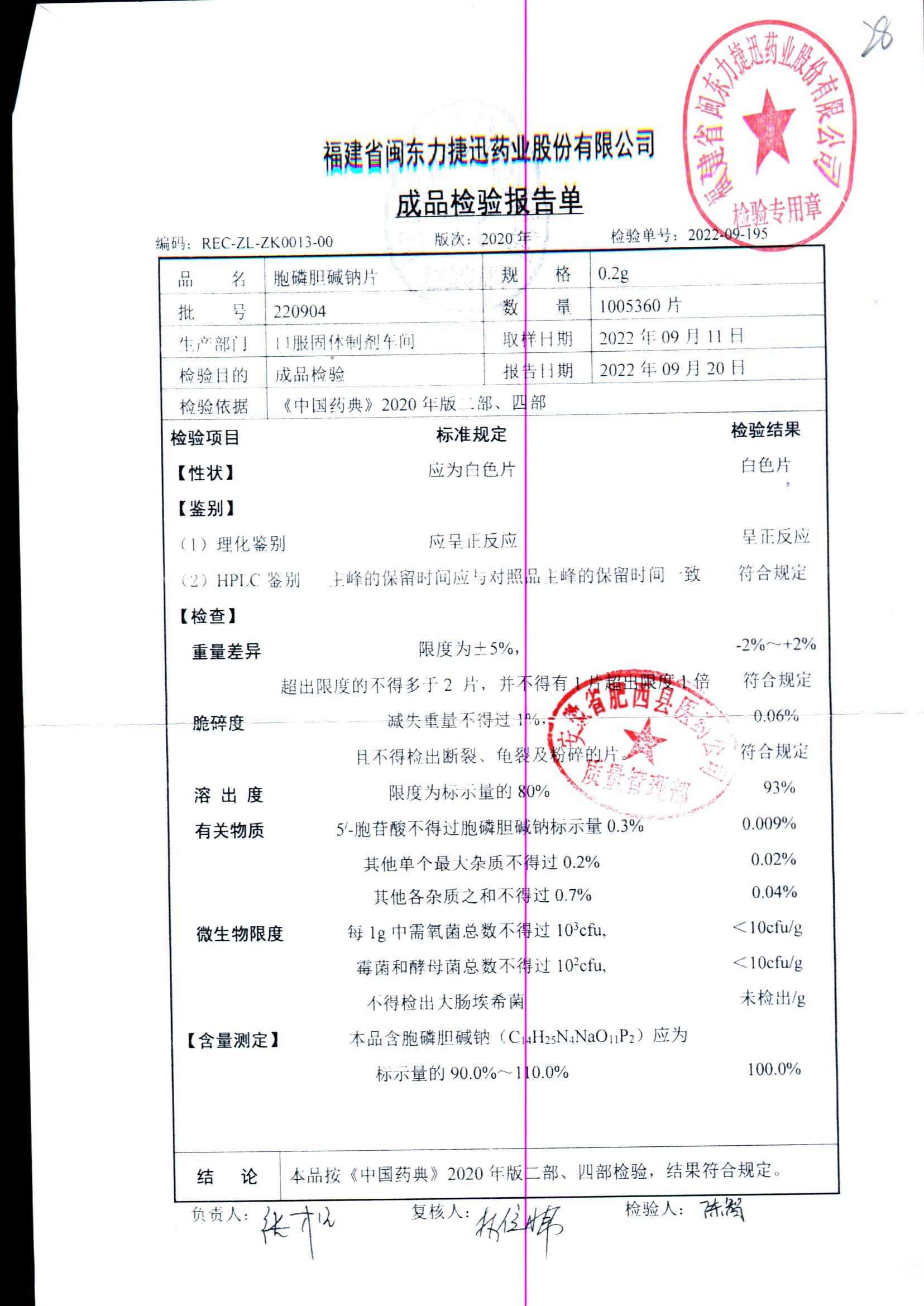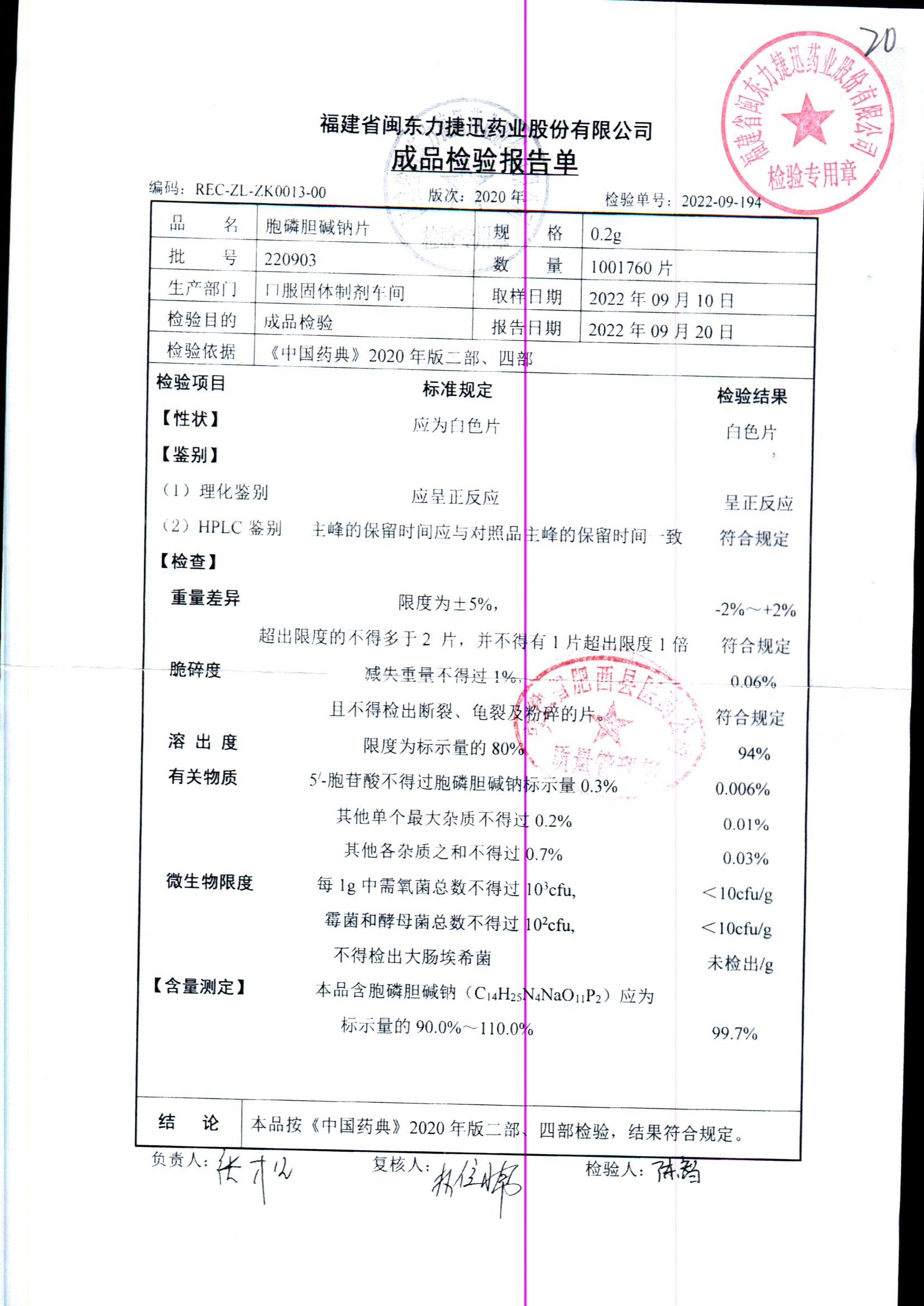 胞磷胆碱钠片 | 0.2g | 220904 | 查看详情 |