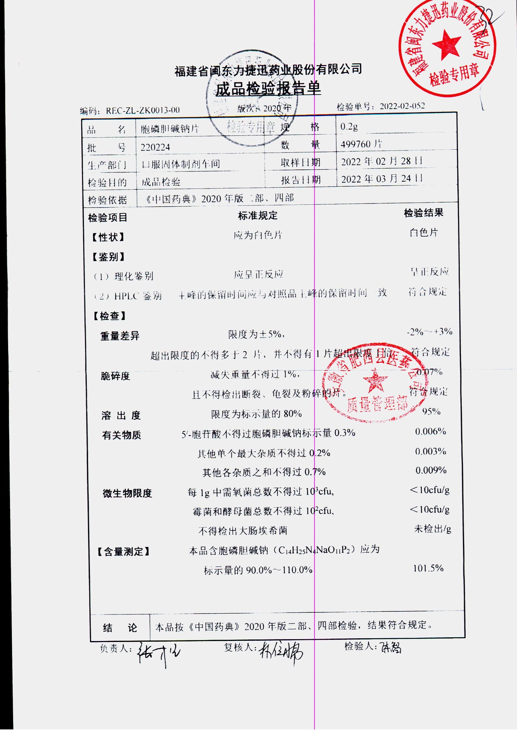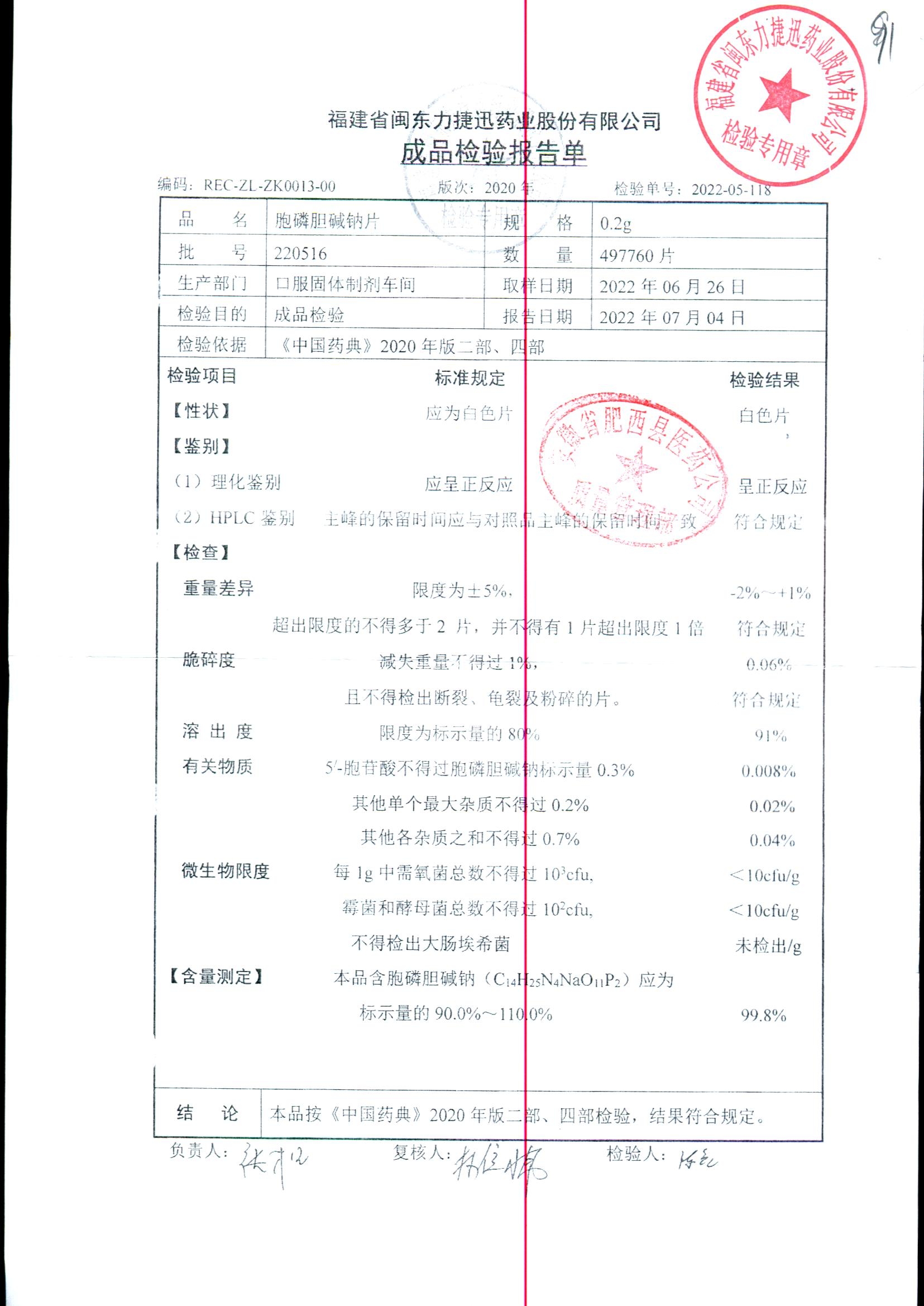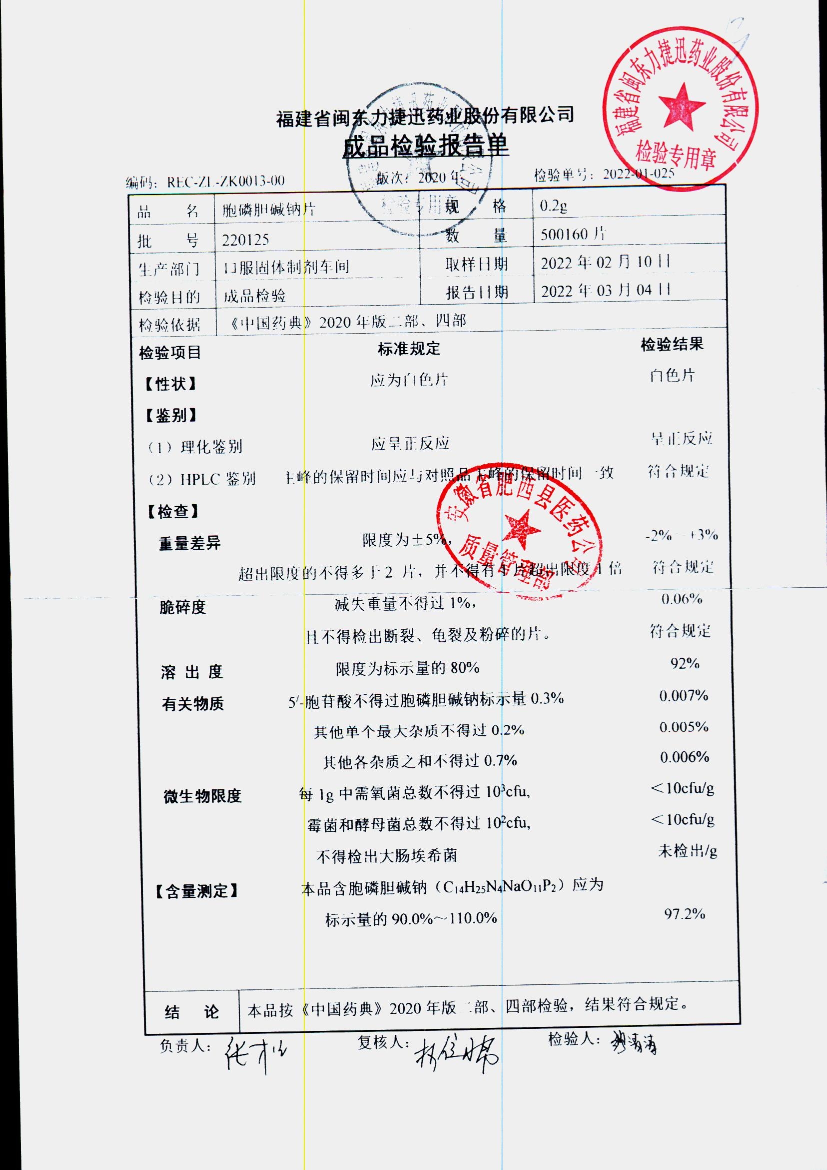 胞磷胆碱钠片 | 0.2g | 220516 | 查看详情 |