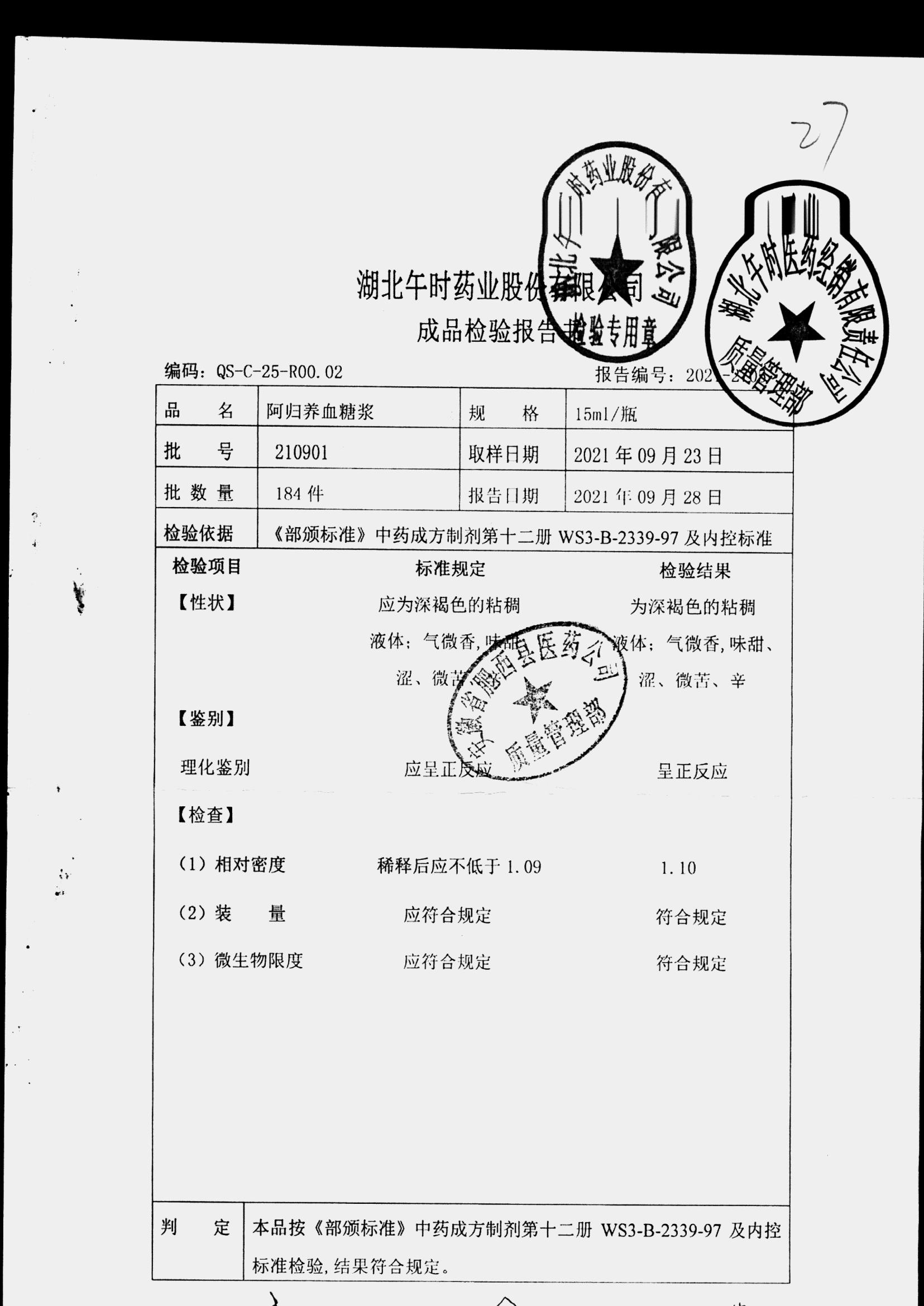 阿归养血糖浆 | 15ml | 210901 | 查看详情 |