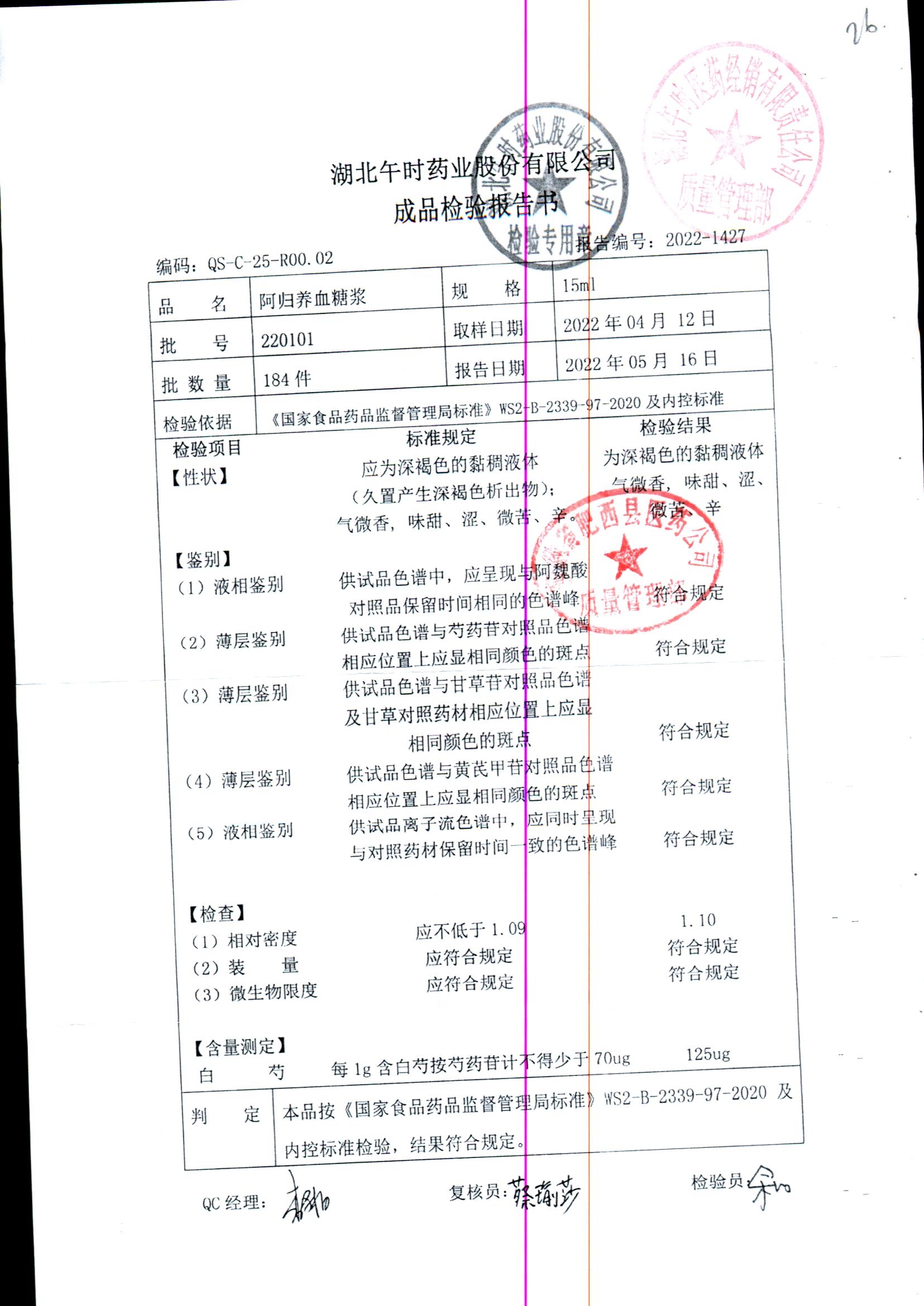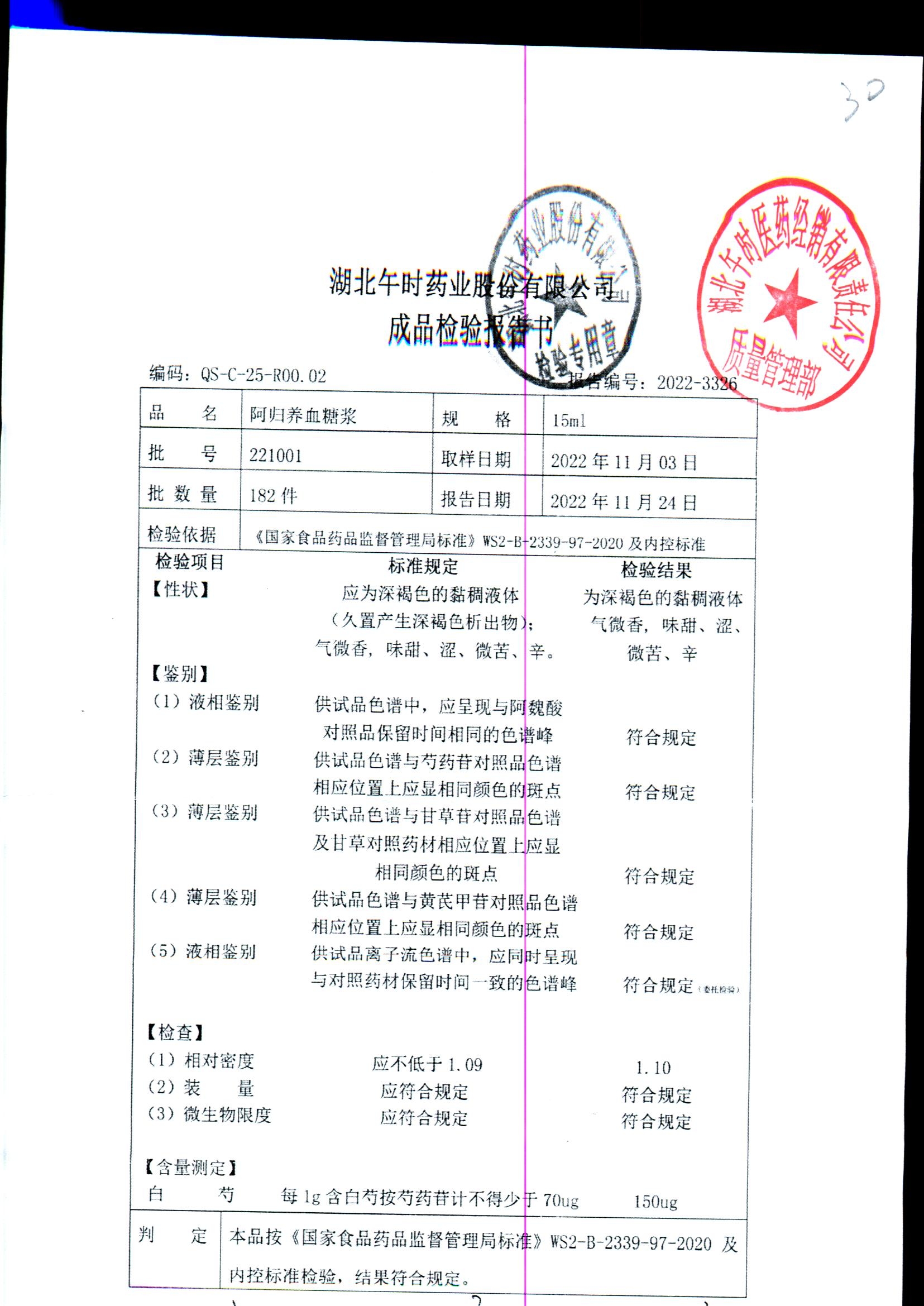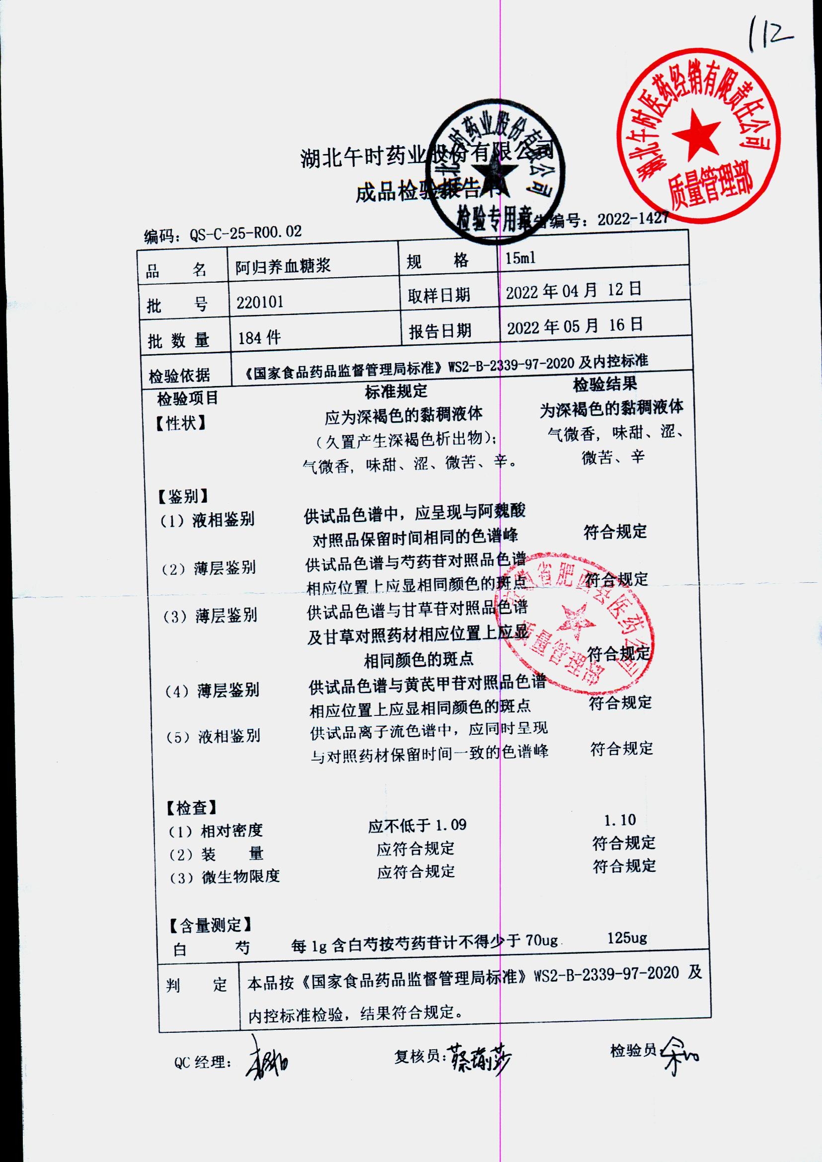 阿归养血糖浆 | 15ml | 220101 | 查看详情 |