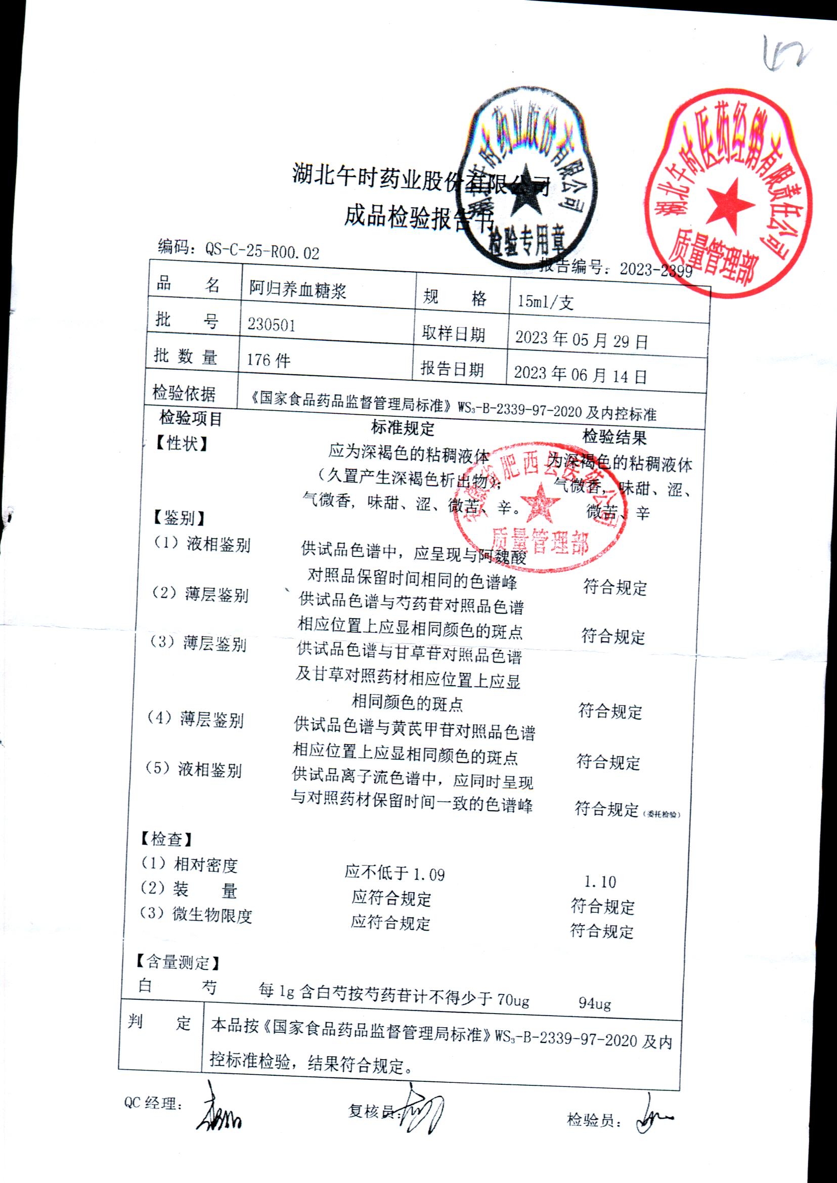 阿归养血糖浆 | 15ml | 230501 | 查看详情 |