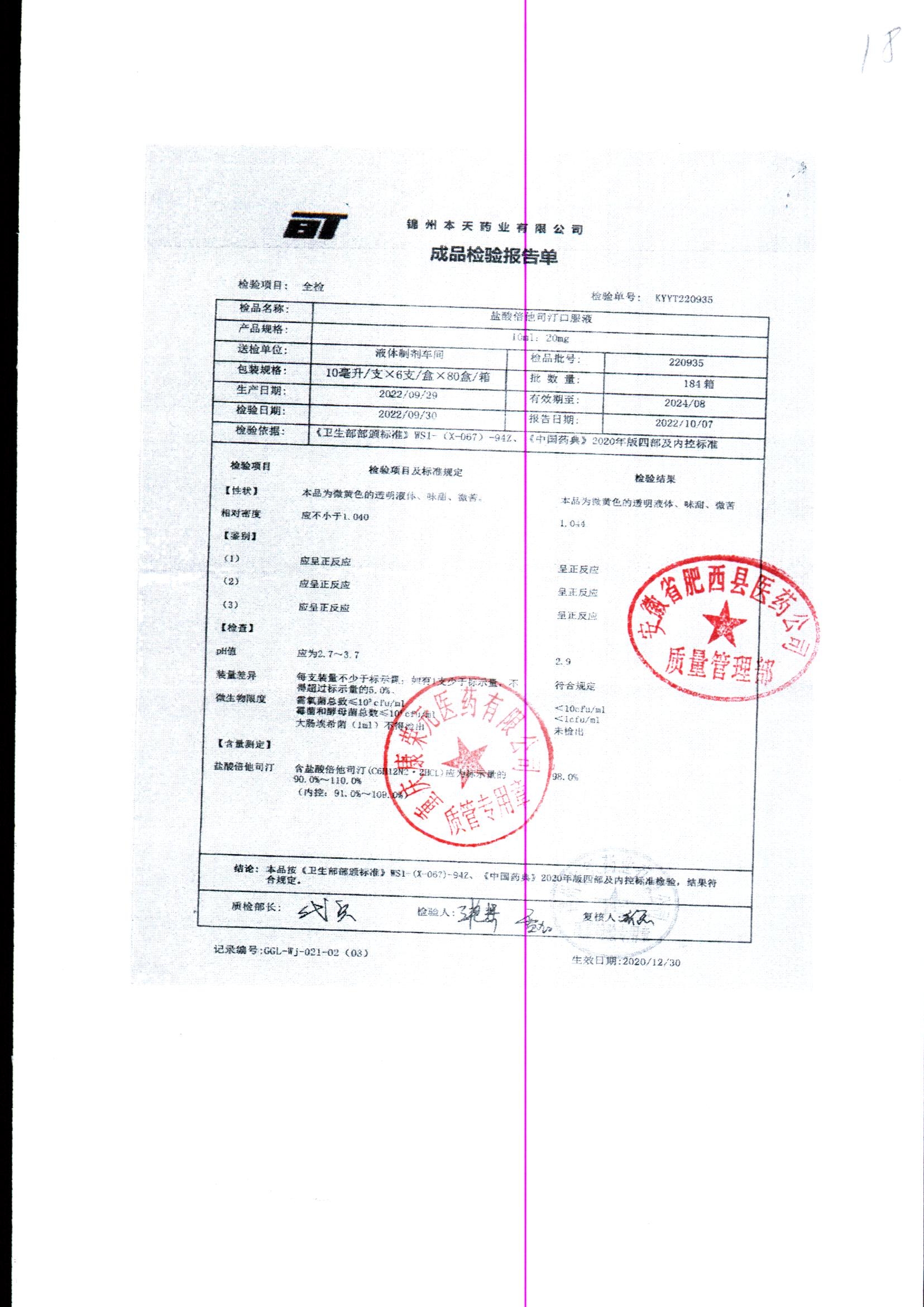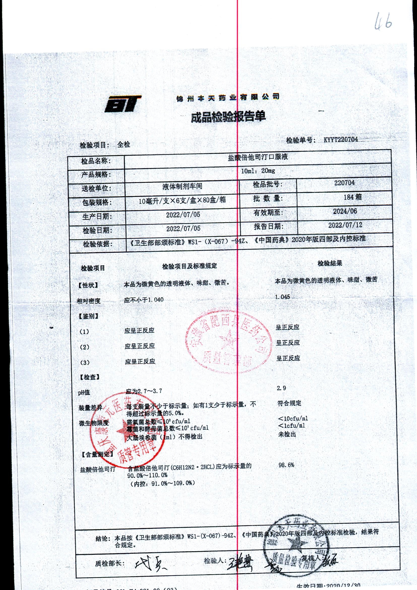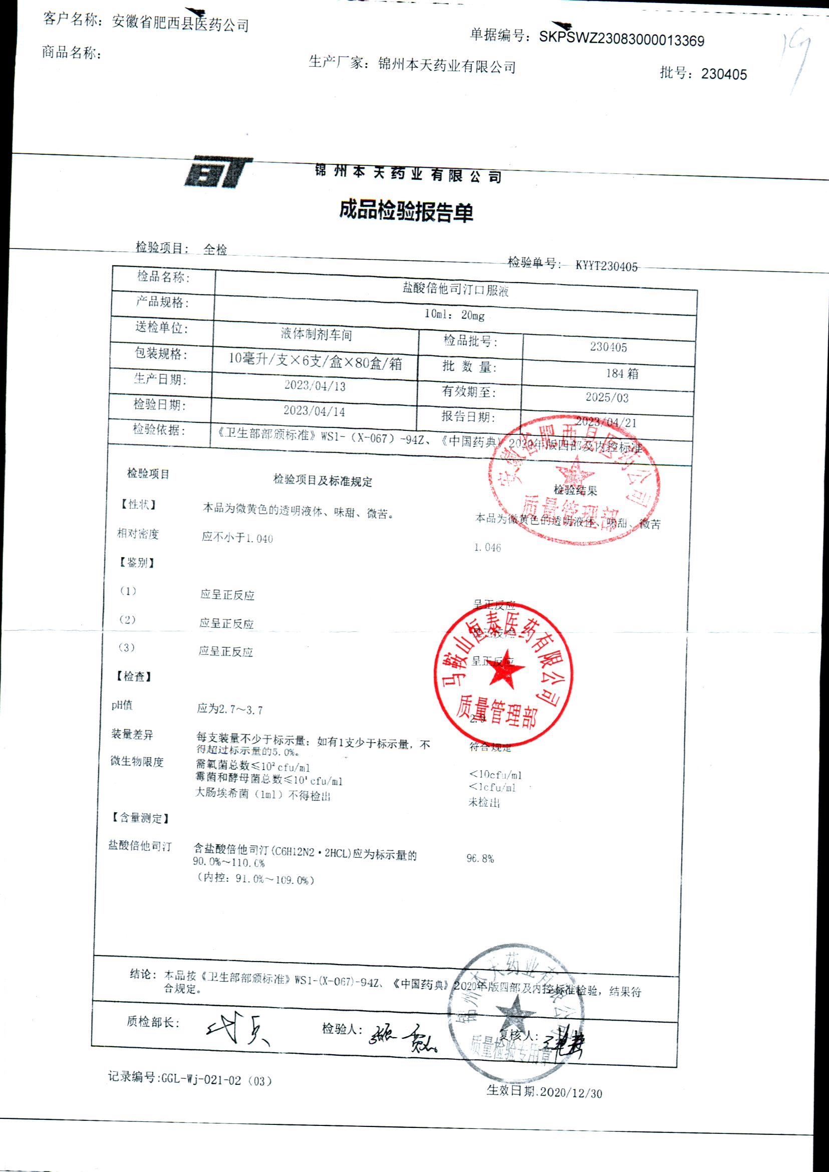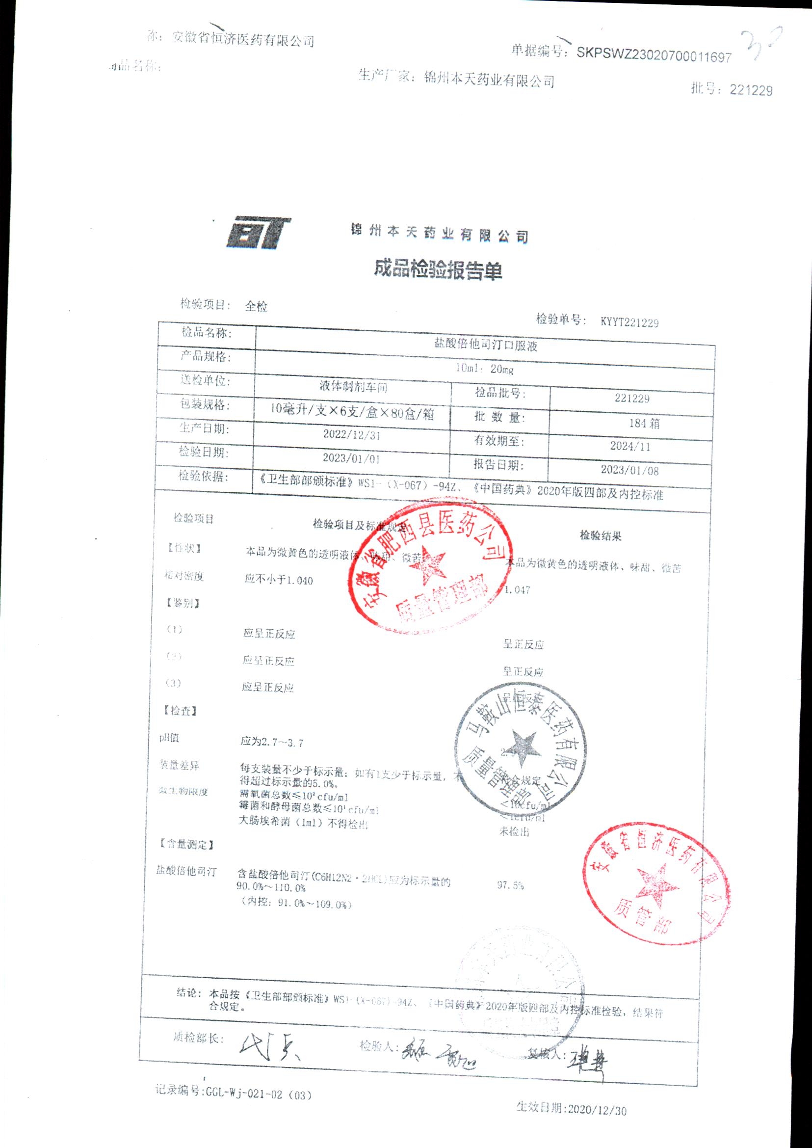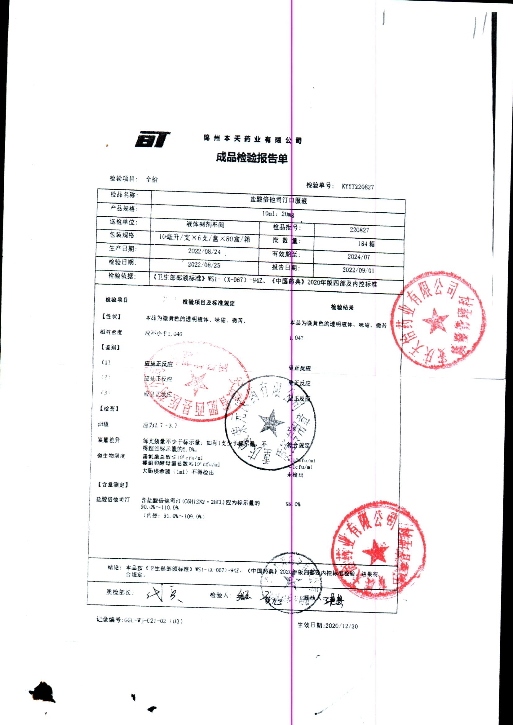 盐酸倍他司汀口服液 | 10ml:20g*6支 | 220818 | 查看详情 |
