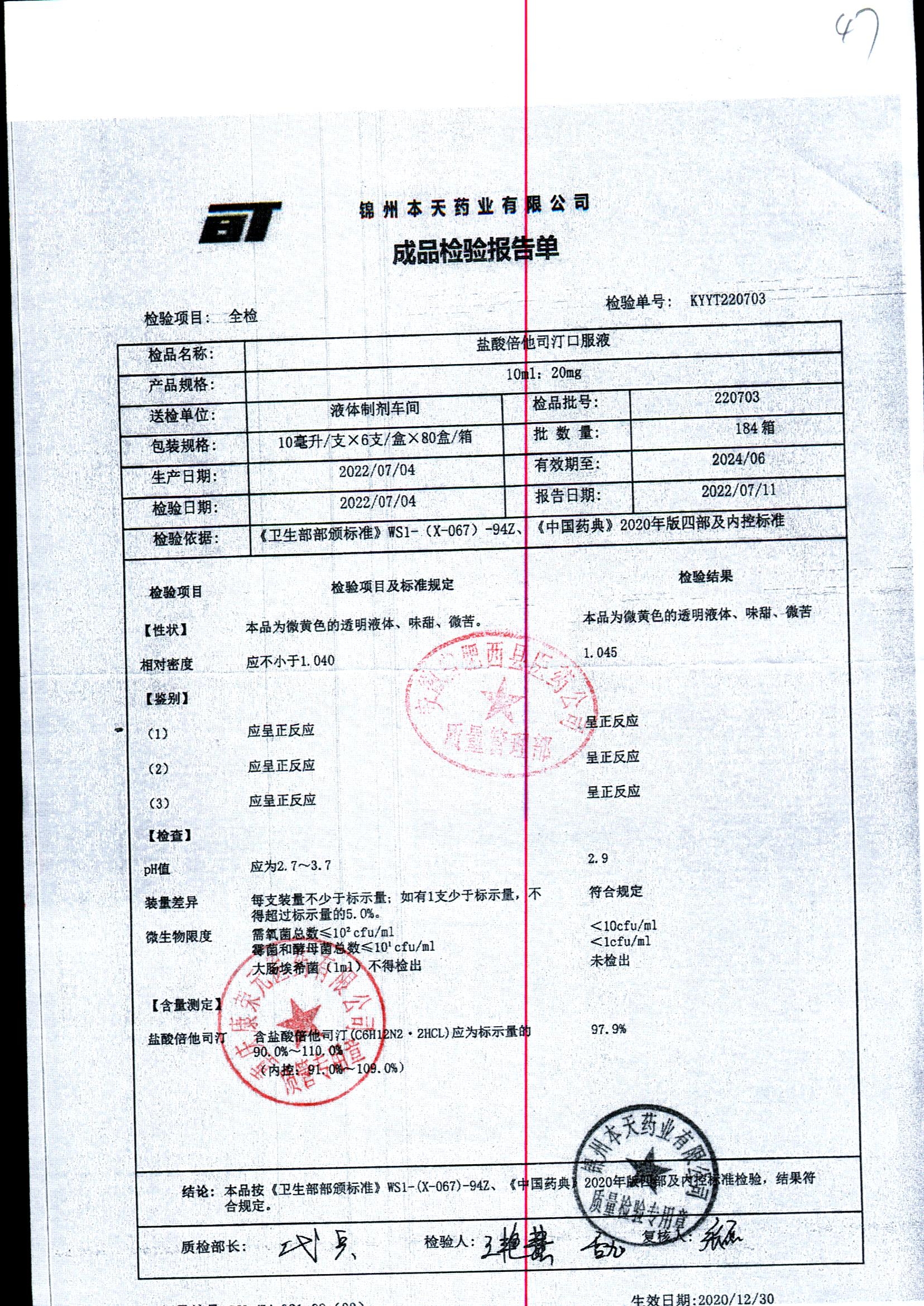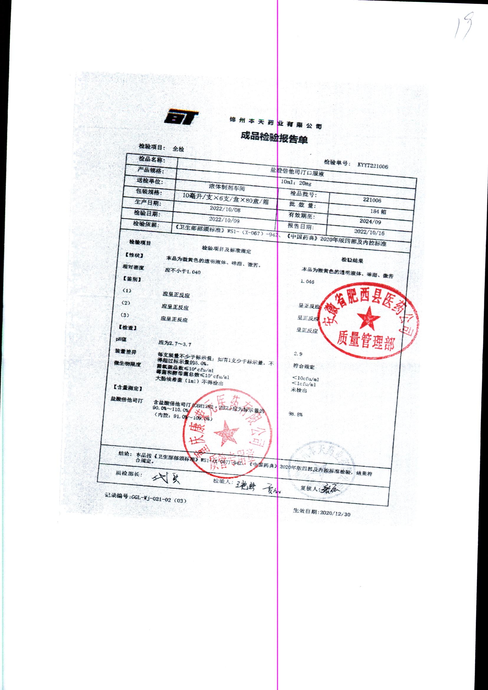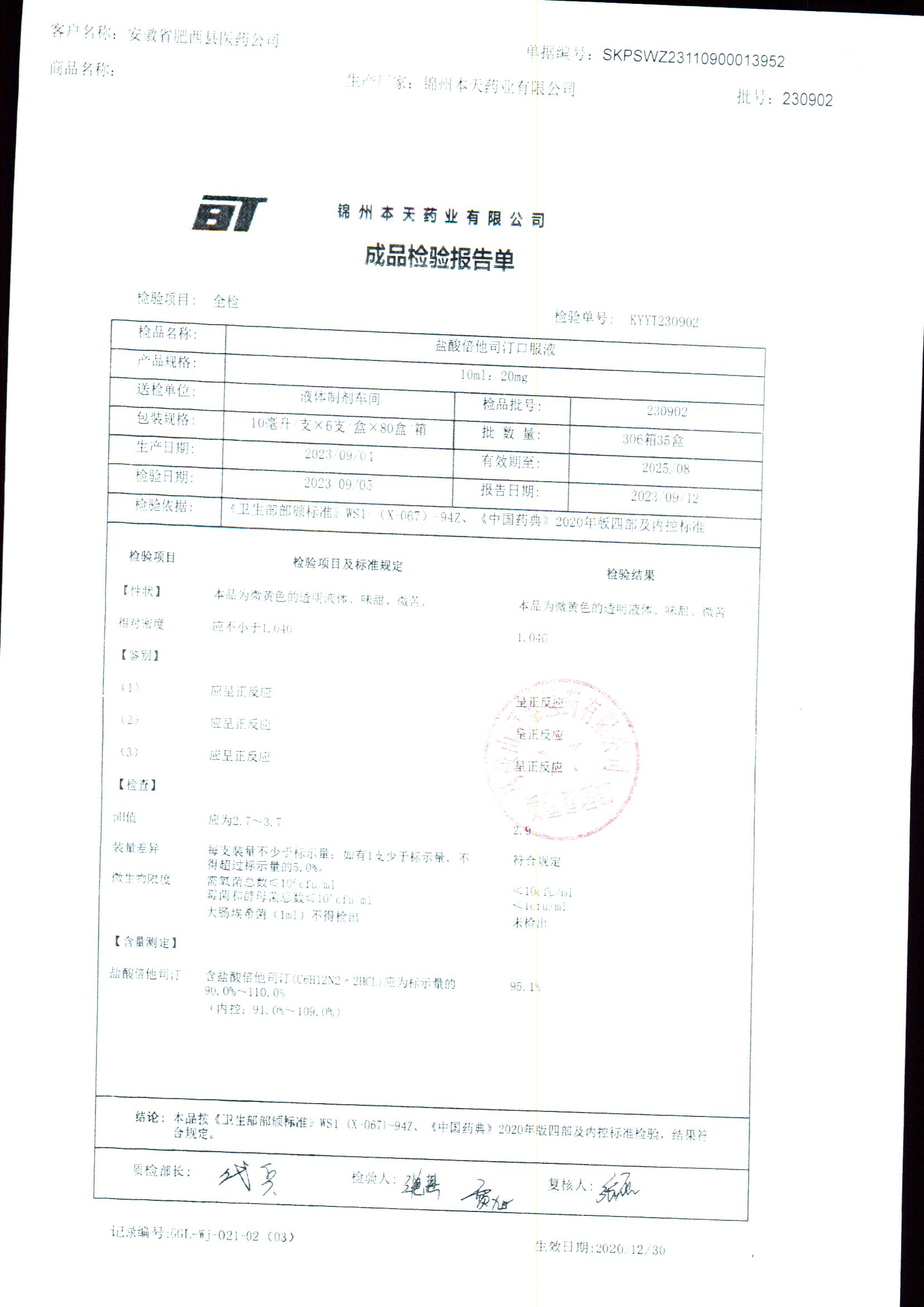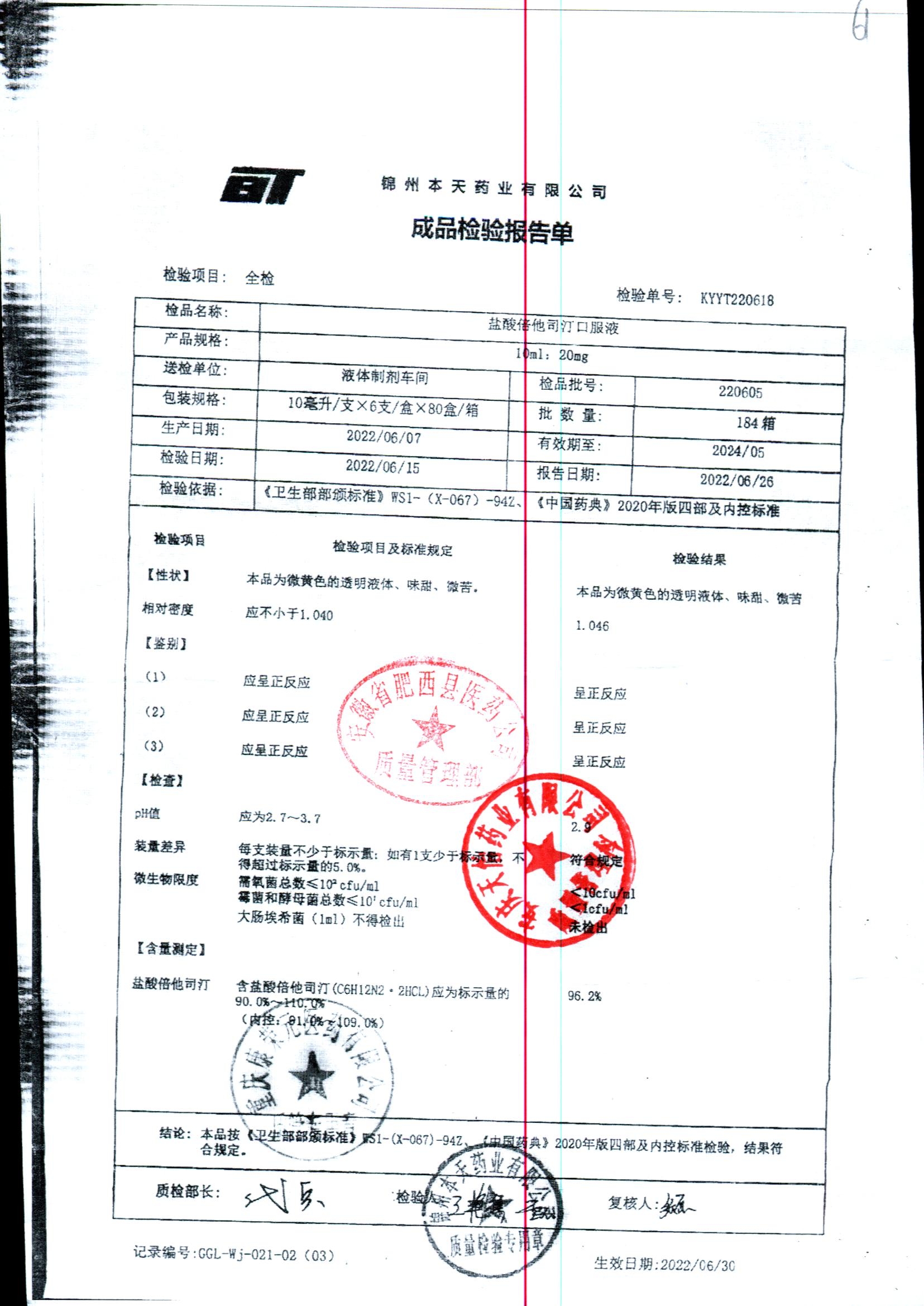 盐酸倍他司汀口服液 | 10ml:20g*6支 | 220703 | 查看详情 |