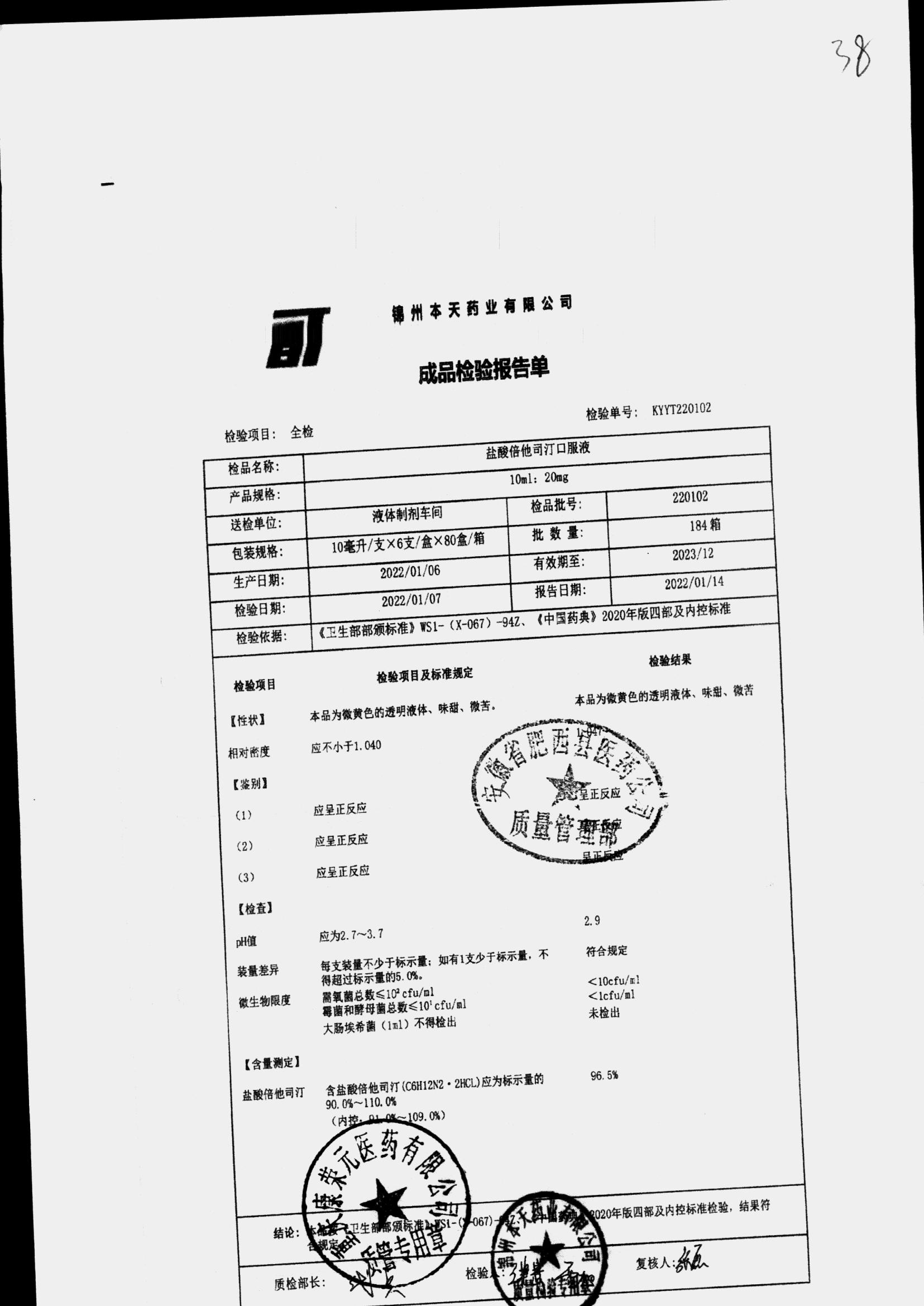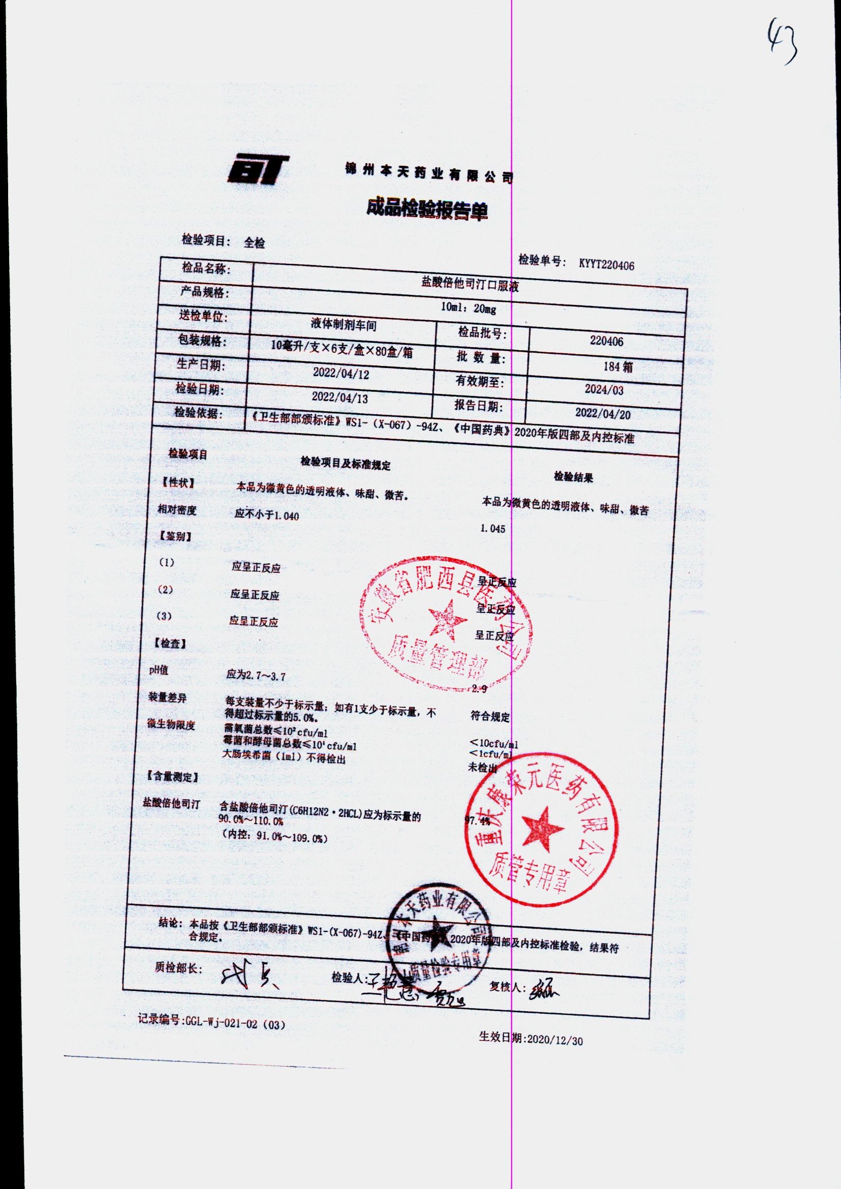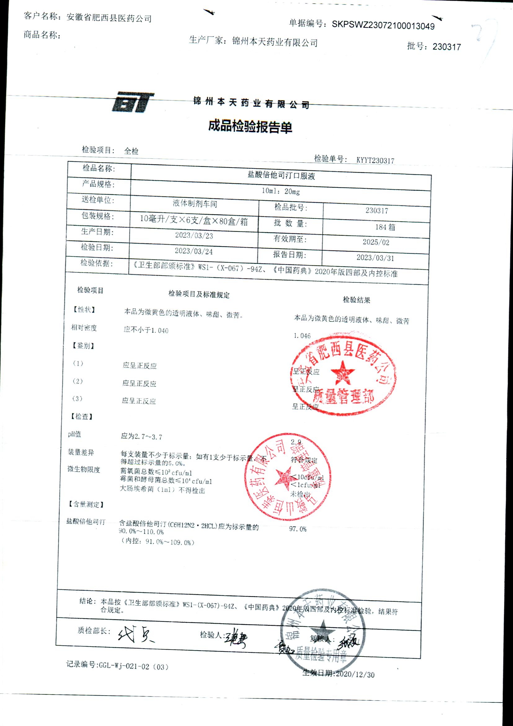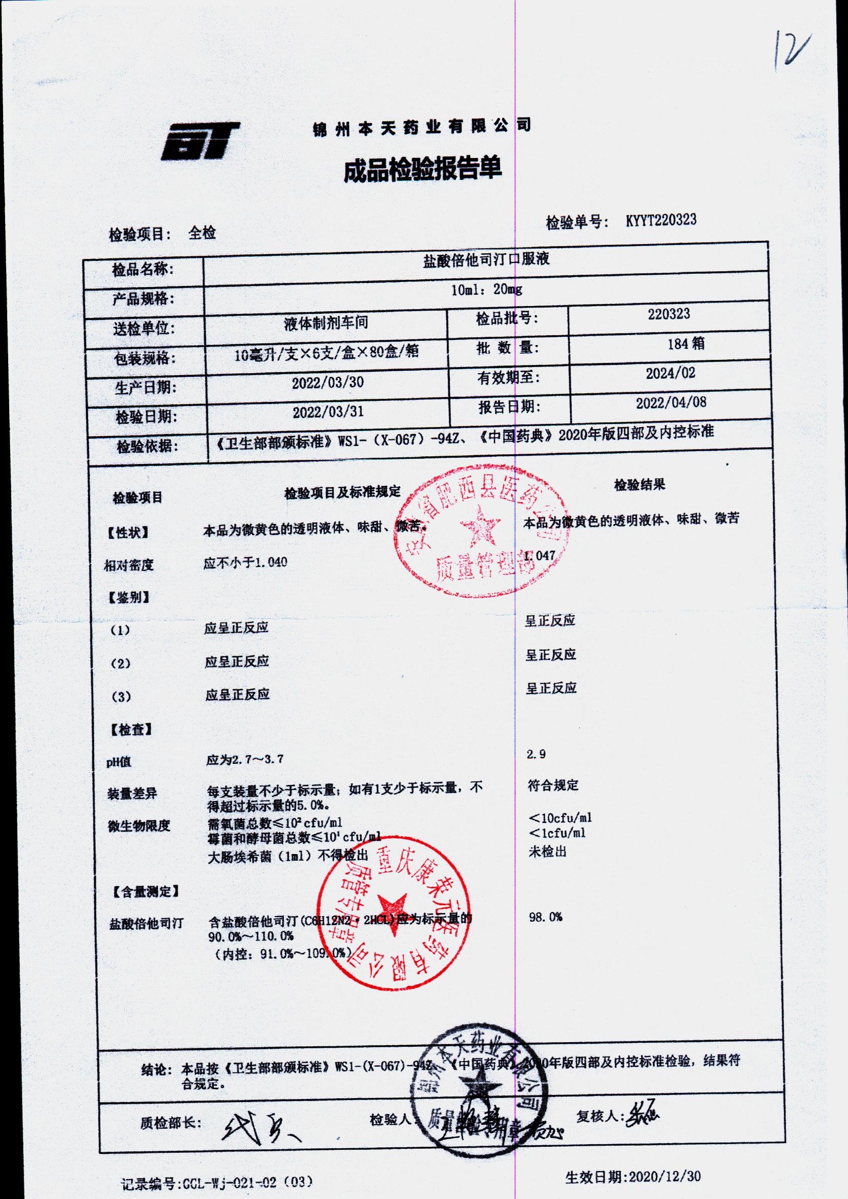 盐酸倍他司汀口服液 | 10ml:20g*6支 | 220703 | 查看详情 |