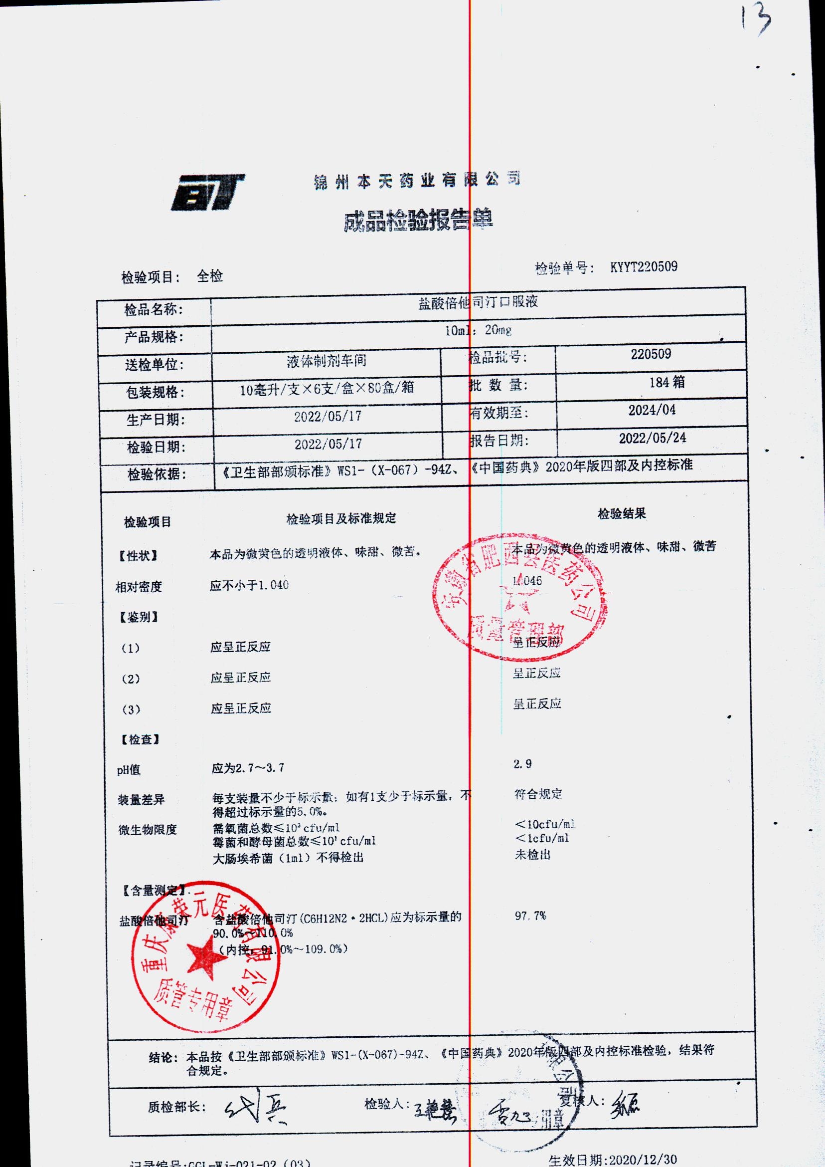 盐酸倍他司汀口服液 | 10ml:20g*6支 | 220509 | 查看详情 |