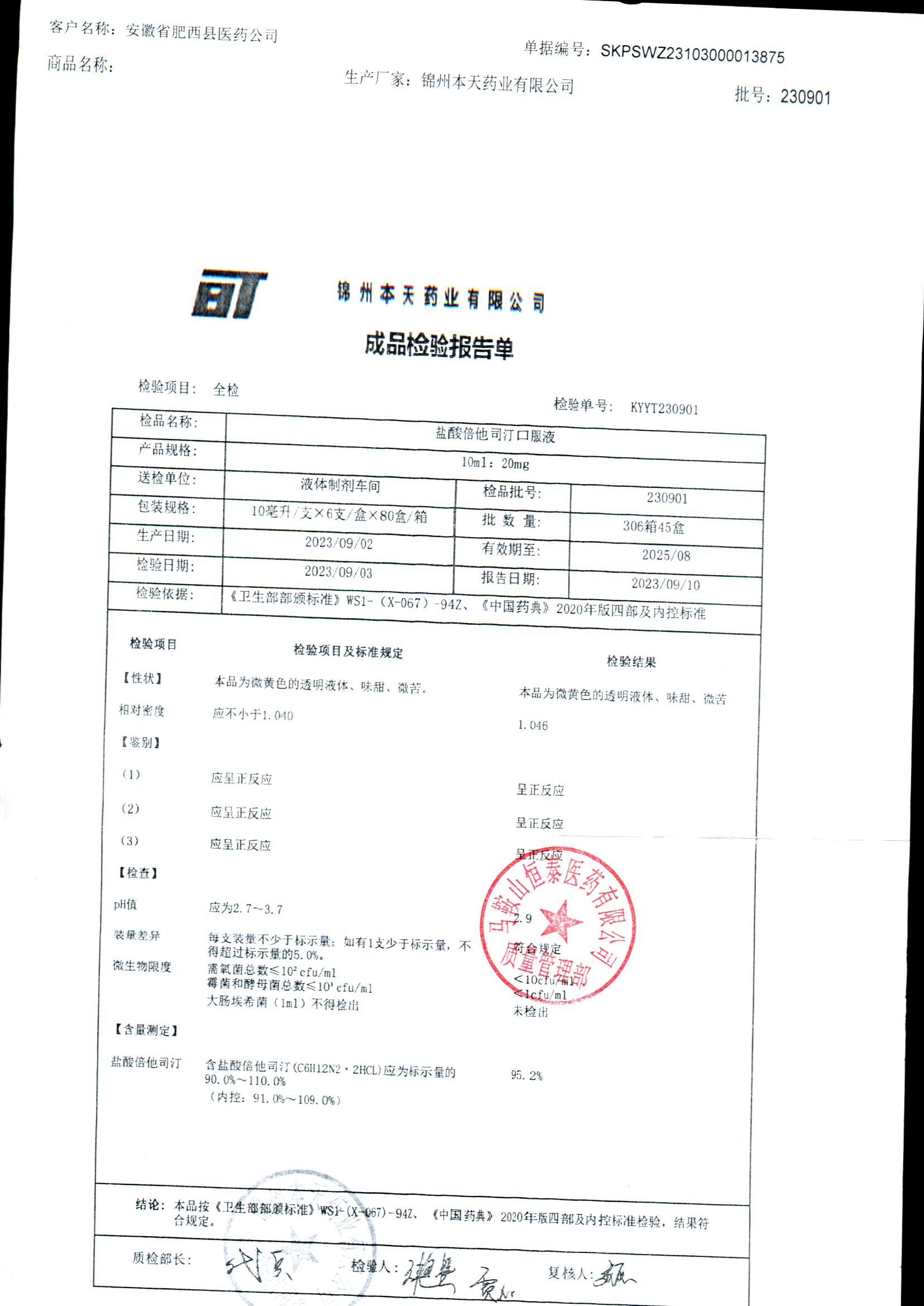 盐酸倍他司汀口服液 | 10ml:20g*6支 | 230901 | 查看详情 |