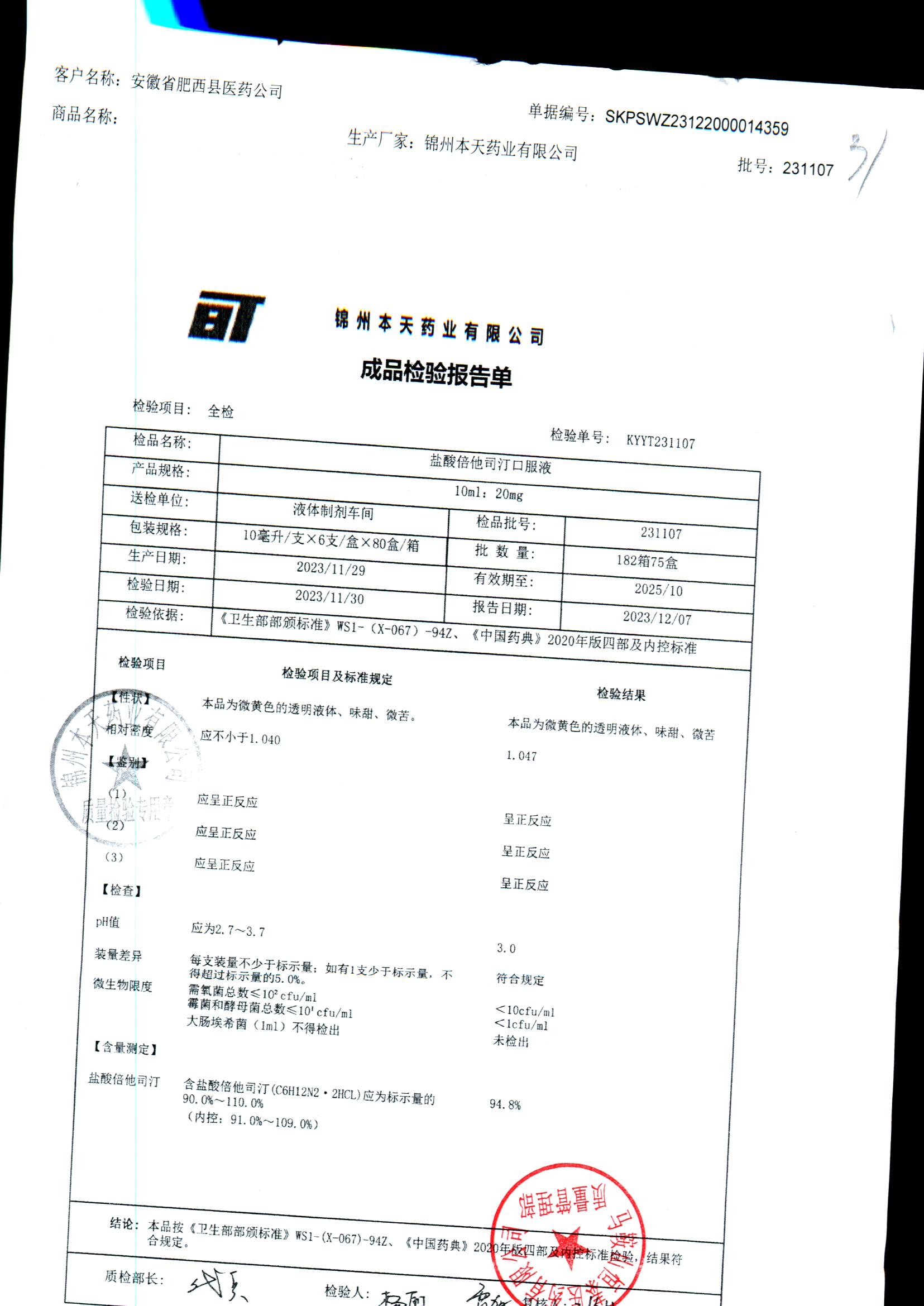 盐酸倍他司汀口服液 | 10ml:20g*6支 | 231107 | 查看详情 |