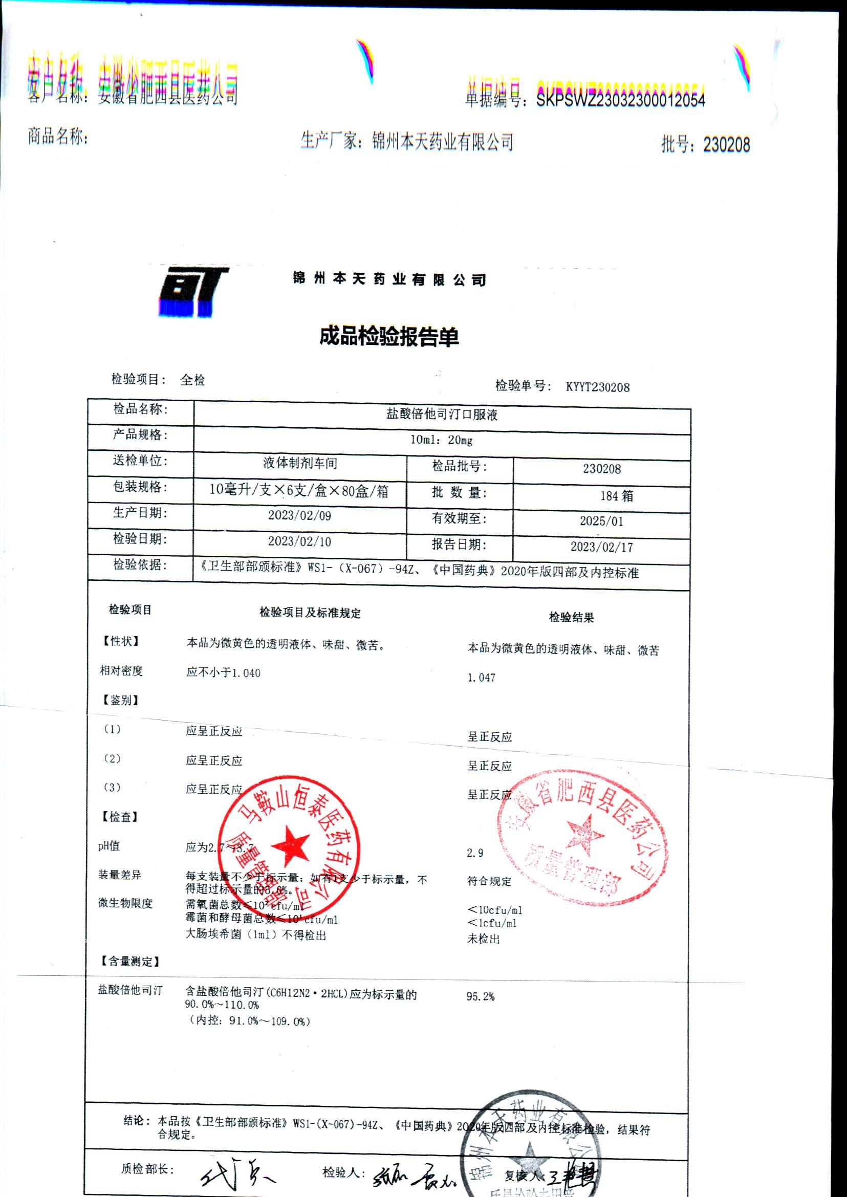盐酸倍他司汀口服液 | 10ml:20g*6支 | 230208 | 查看详情 |