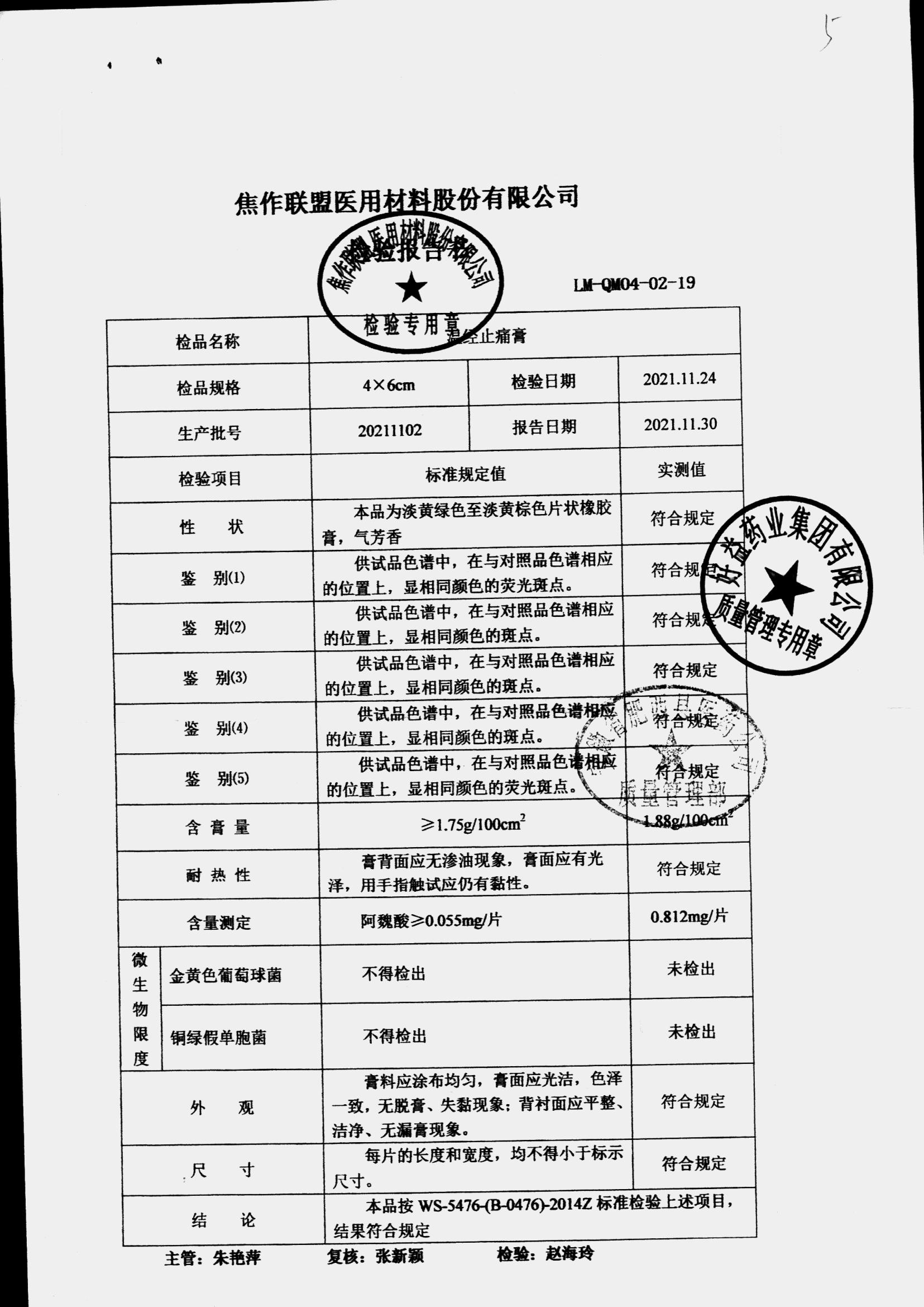 药检报告