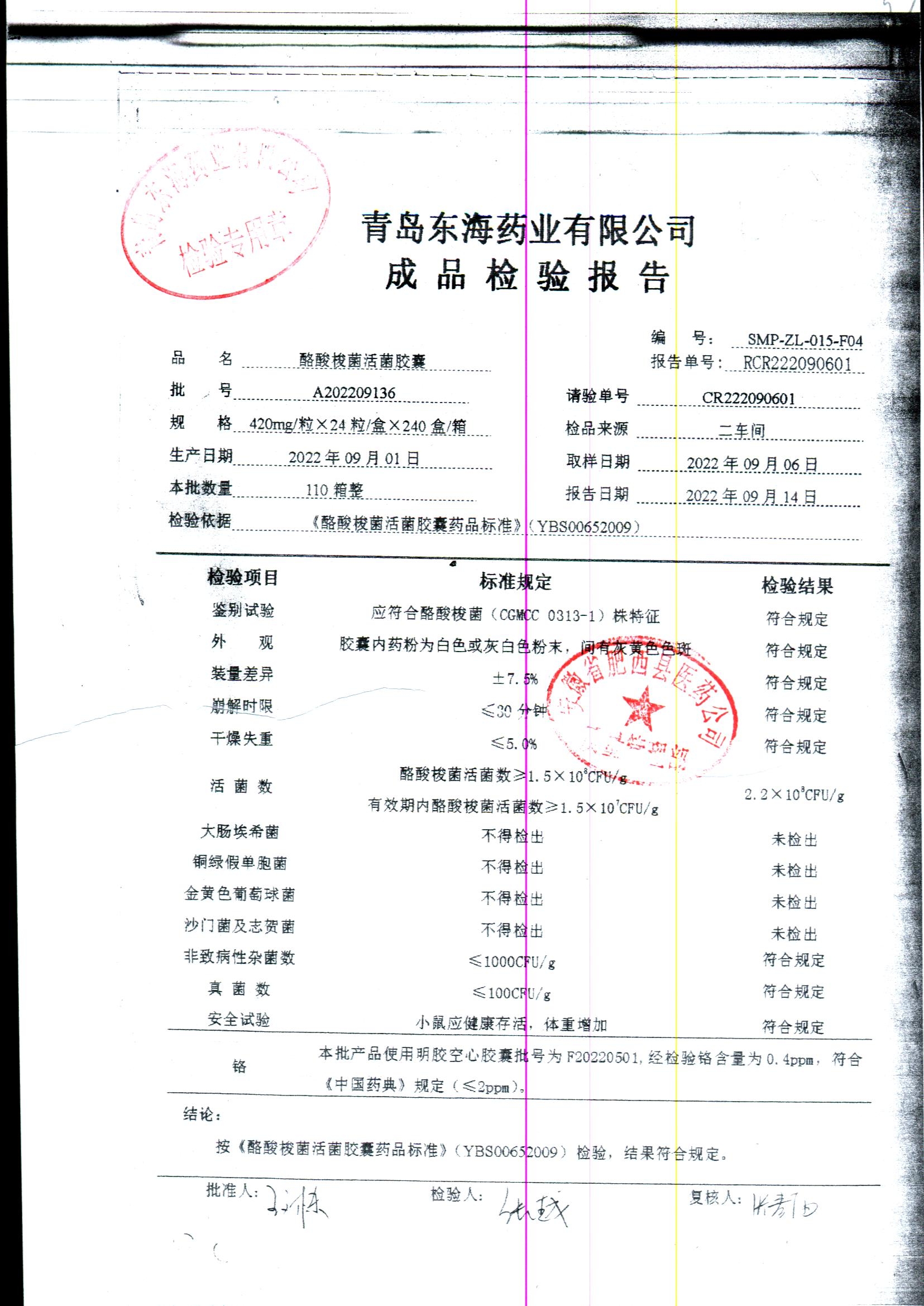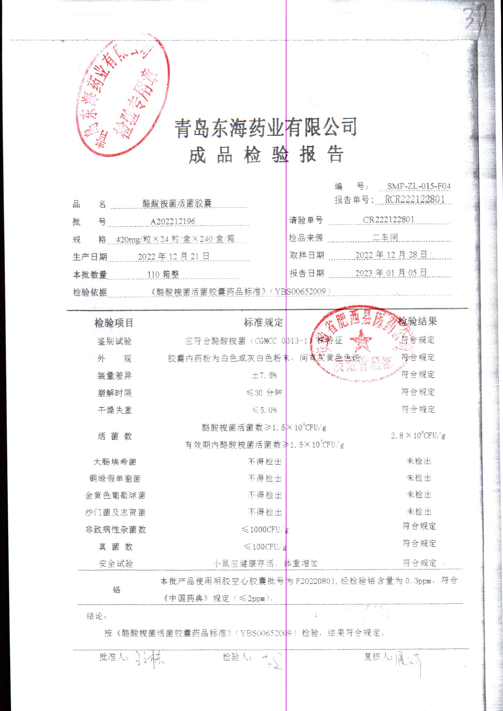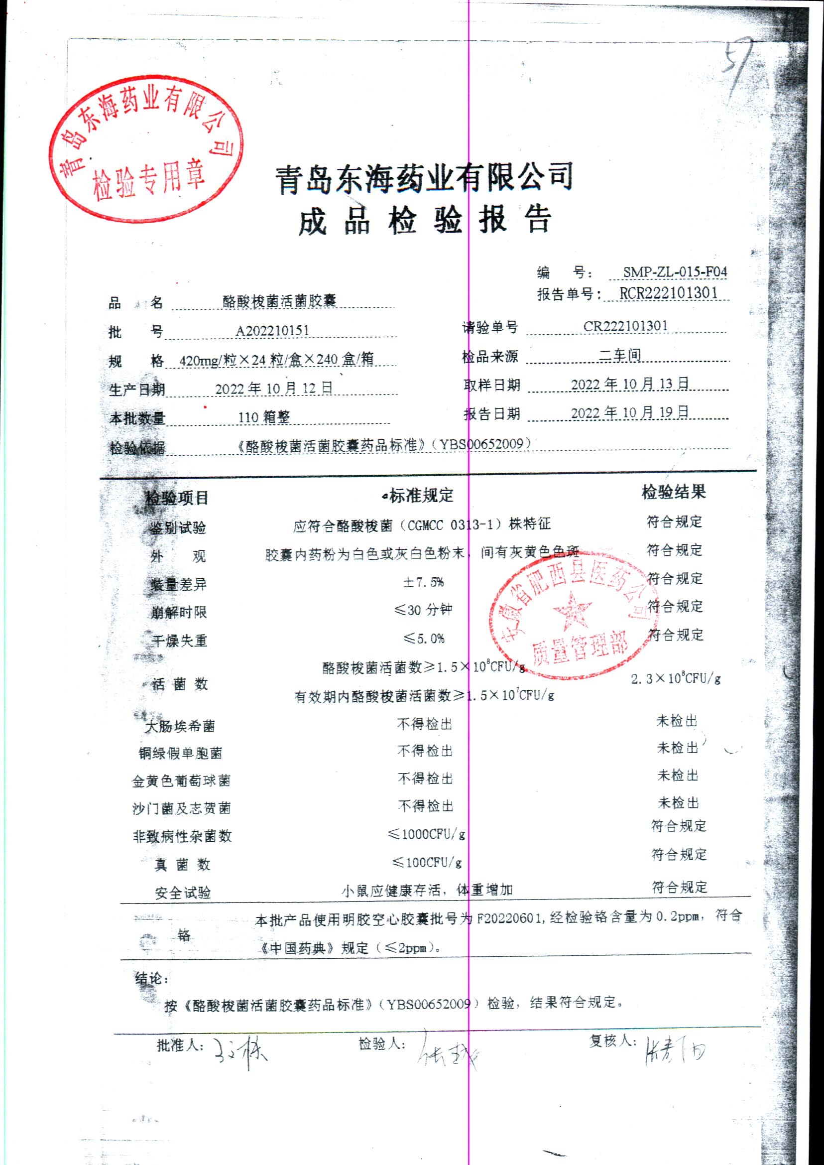 酪酸梭菌活菌胶囊 | 420mg*24粒 | A202210151 | 查看详情 |