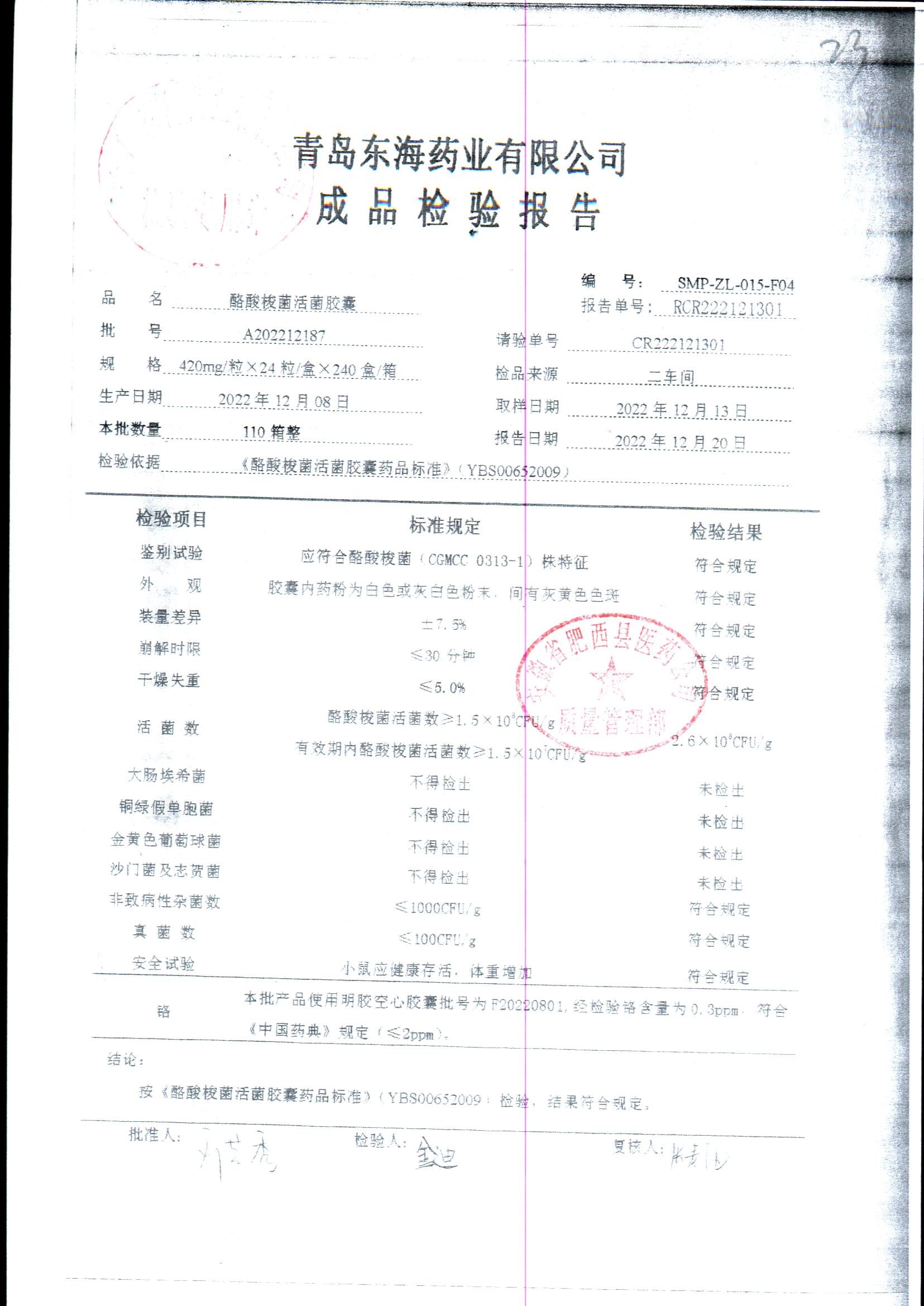 酪酸梭菌活菌胶囊 | 420mg*24粒 | A202212188 | 查看详情 |