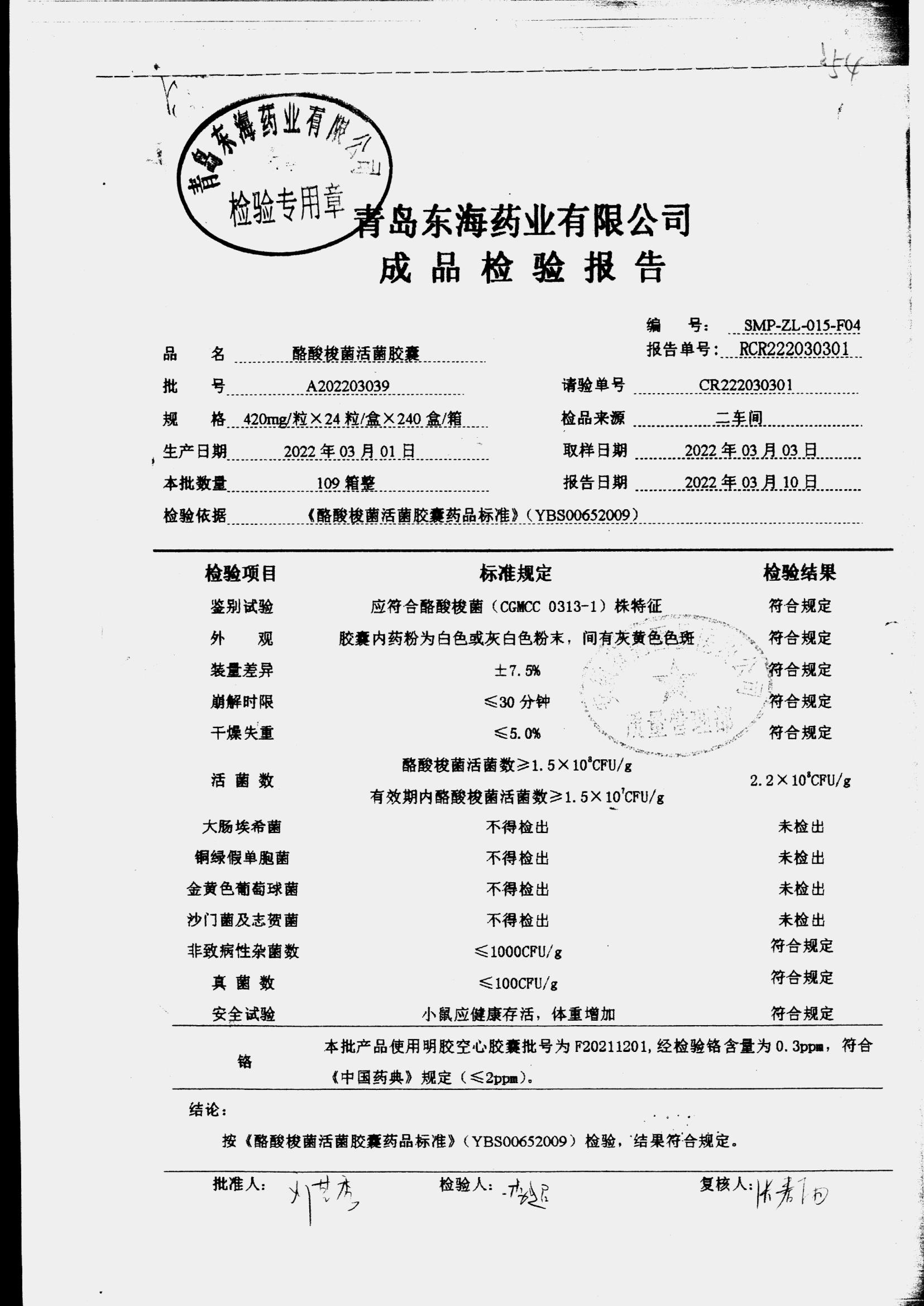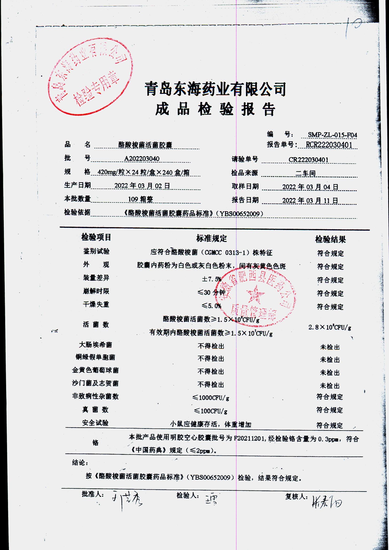 酪酸梭菌活菌胶囊 | 420mg*24粒 | A202203040 | 查看详情 |