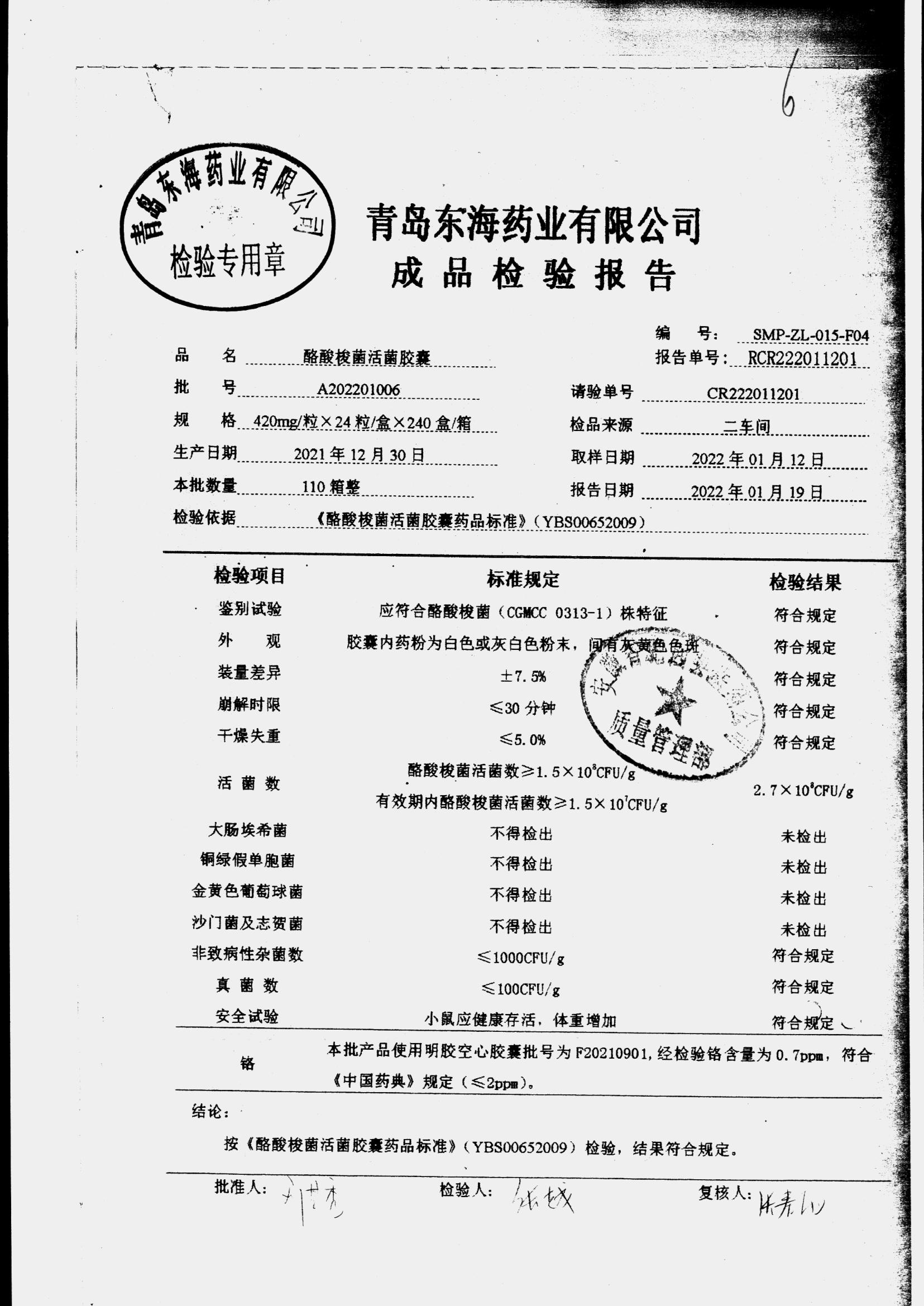 酪酸梭菌活菌胶囊 | 420mg*24粒 | A202201006 | 查看详情 |