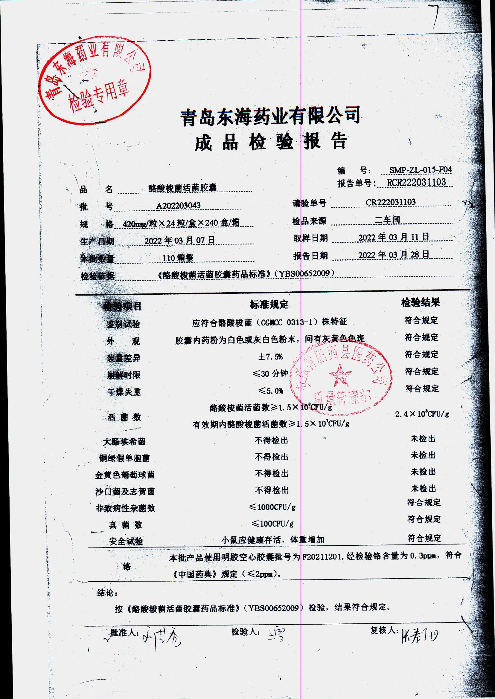 酪酸梭菌活菌胶囊 | 420mg*24粒 | A202203043 | 查看详情 |