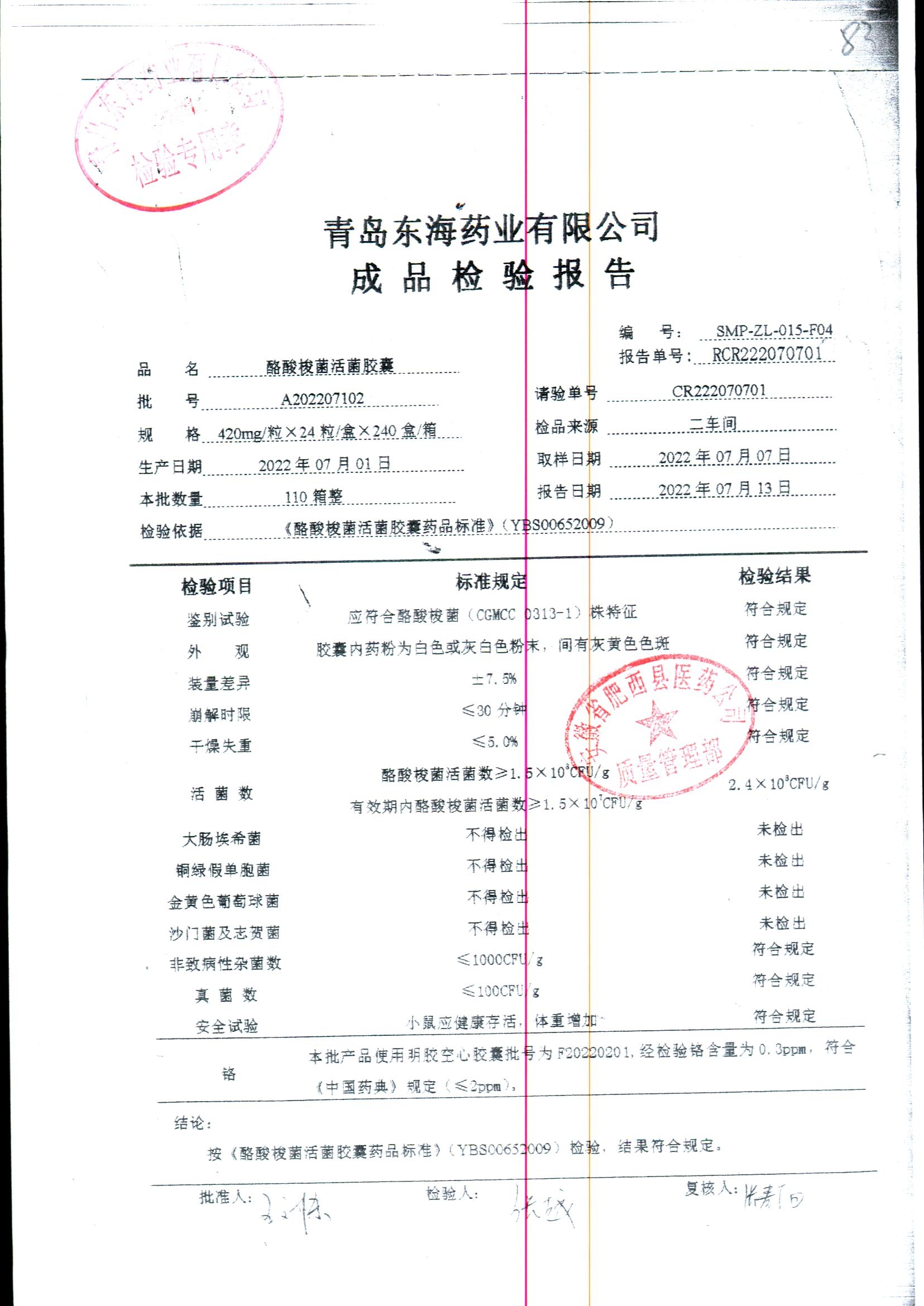 酪酸梭菌活菌胶囊 | 420mg*24粒 | A202207102 | 查看详情 |