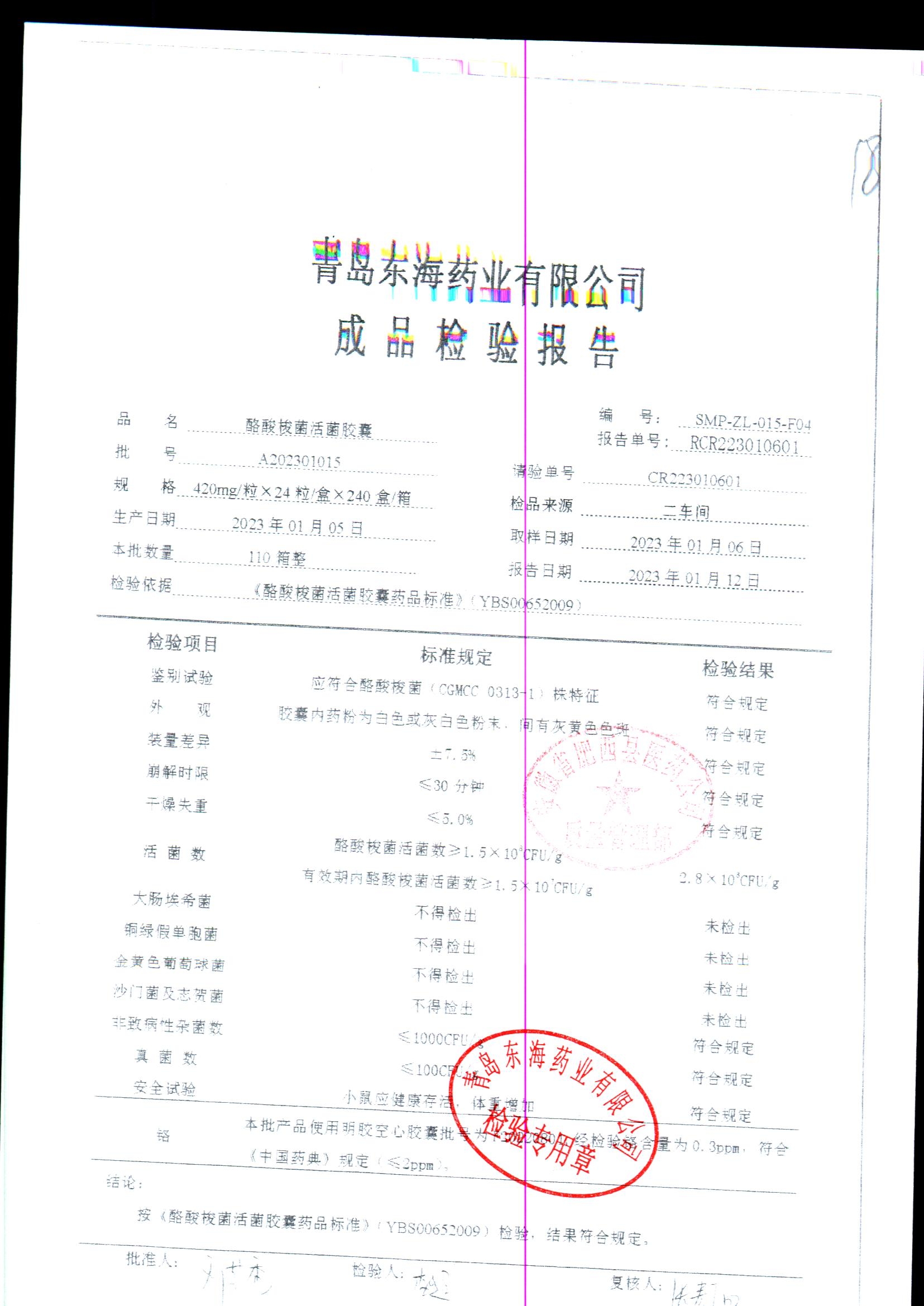 酪酸梭菌活菌胶囊 | 420mg*24粒 | A202301015 | 查看详情 |