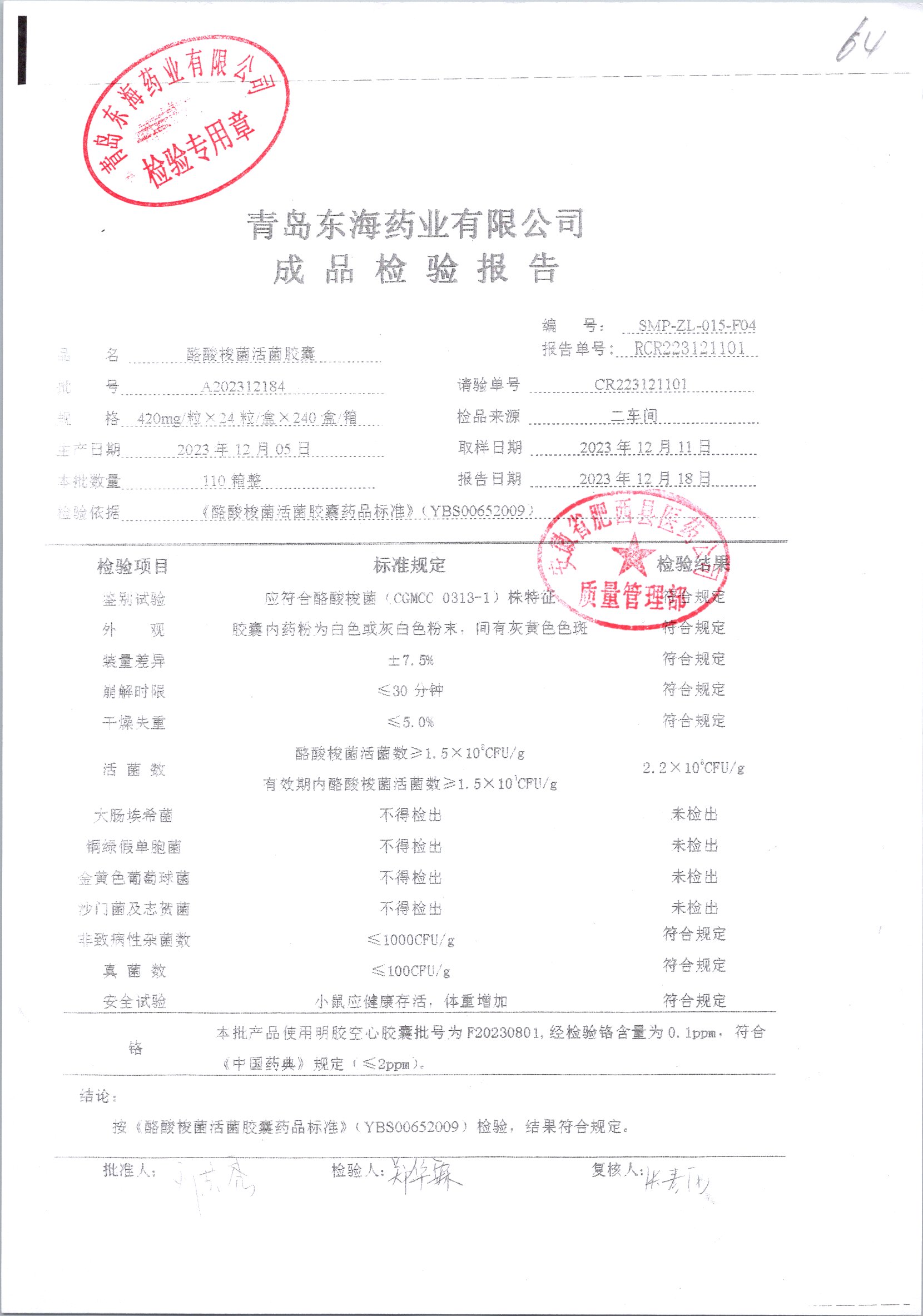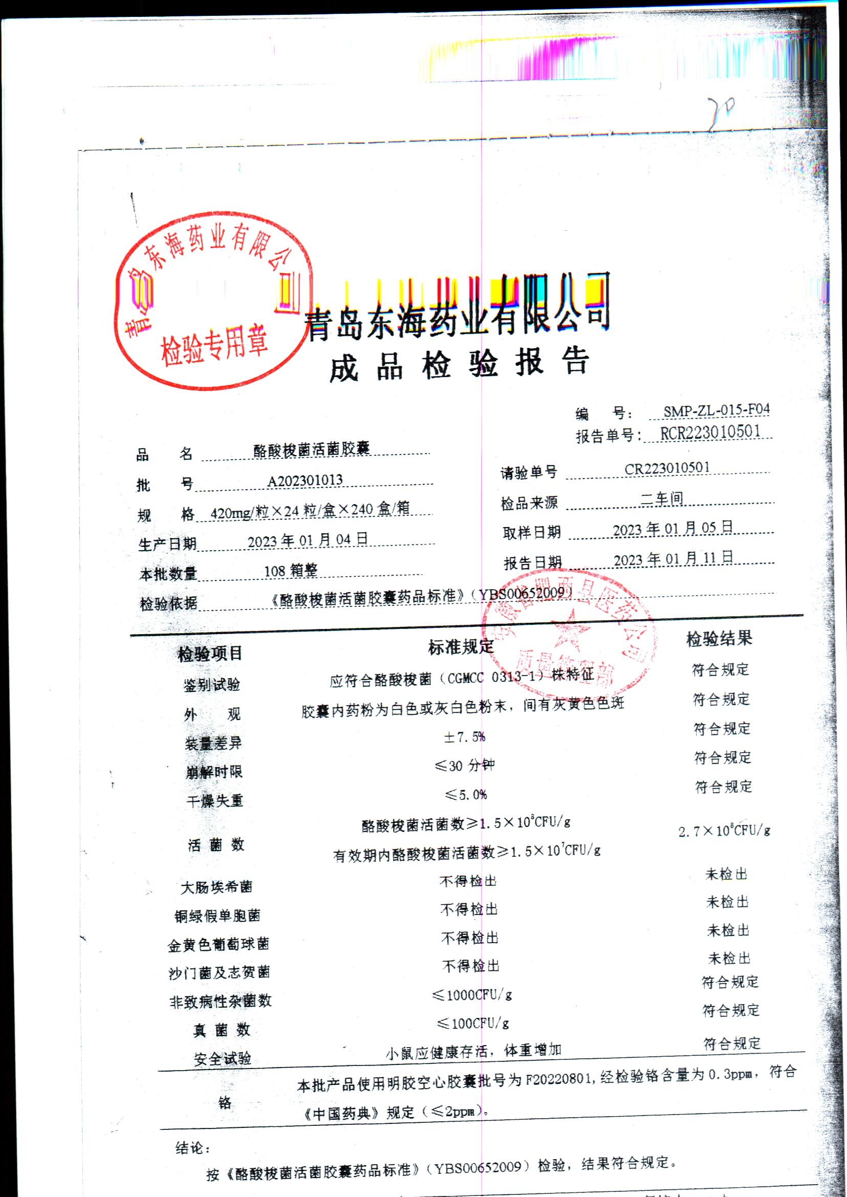 酪酸梭菌活菌胶囊 | 420mg*24粒 | A202301013 | 查看详情 |
