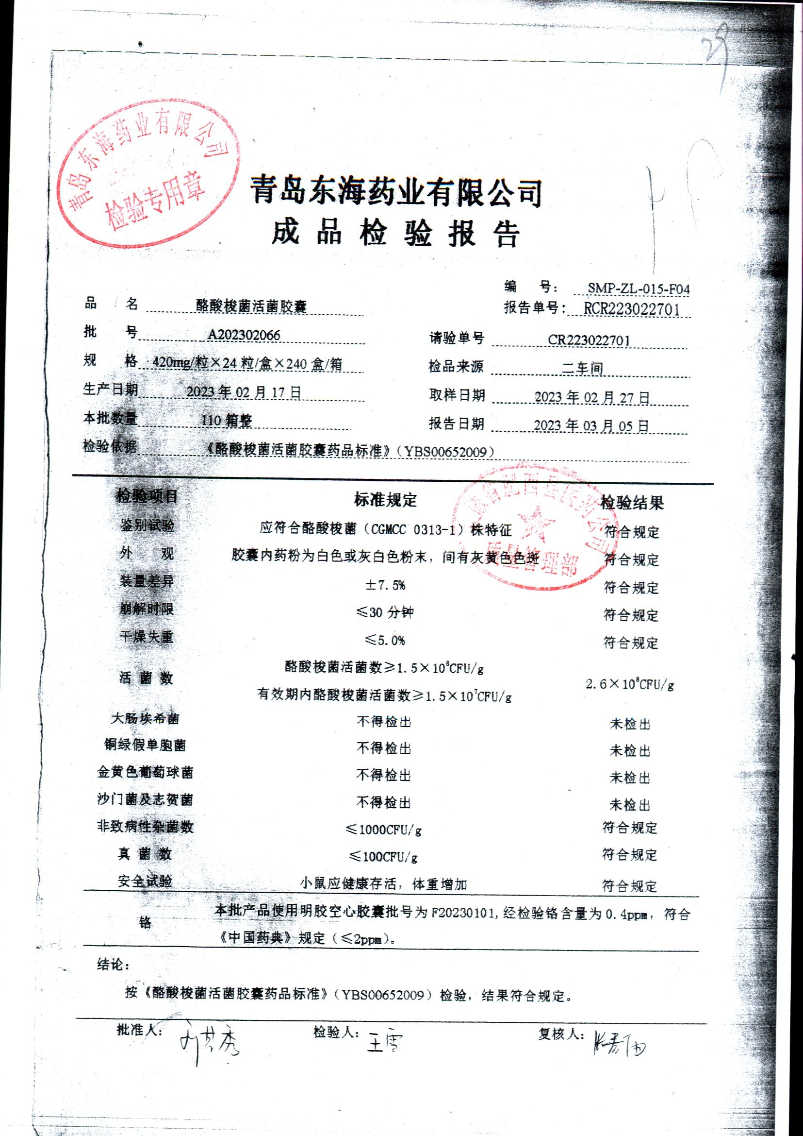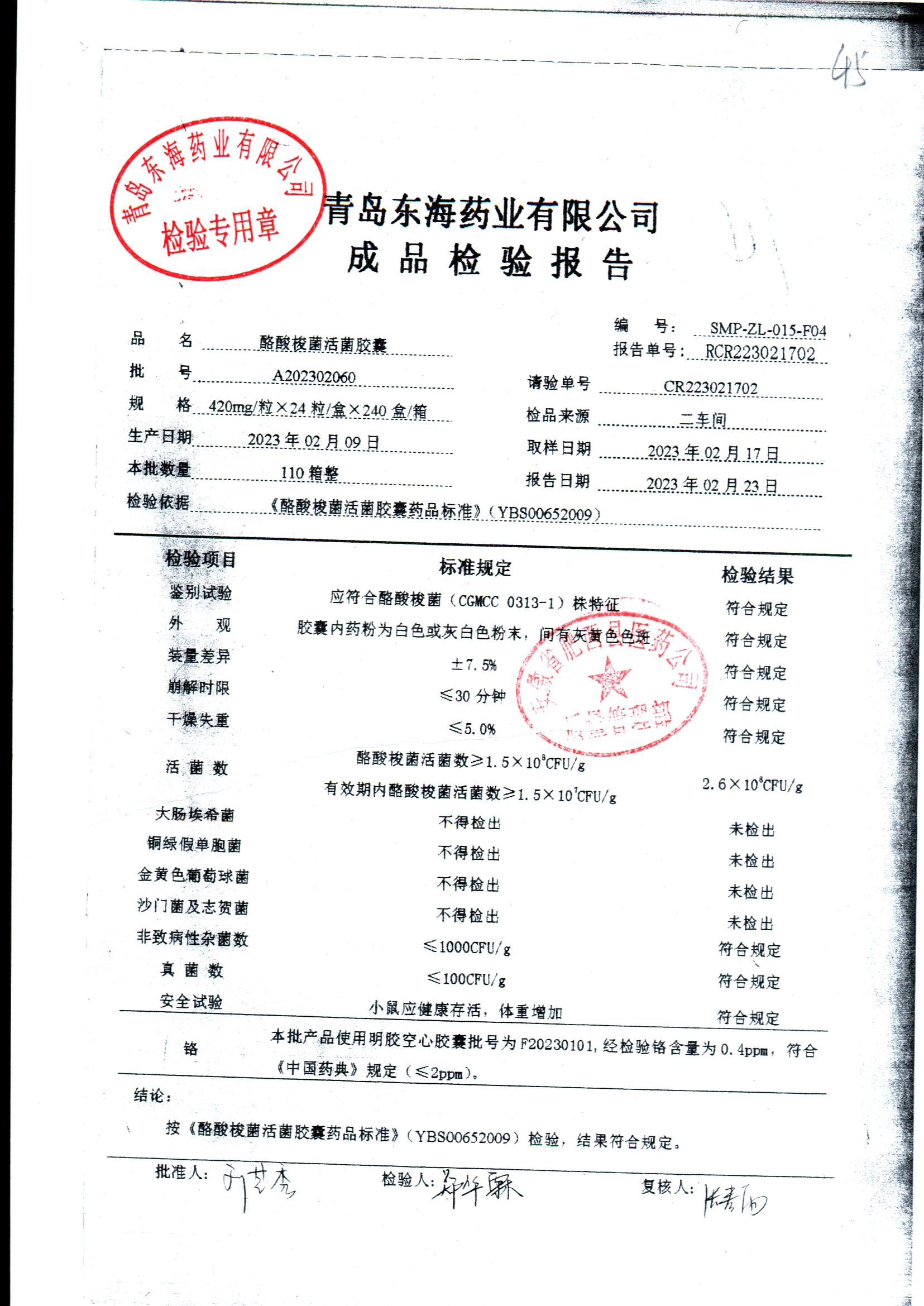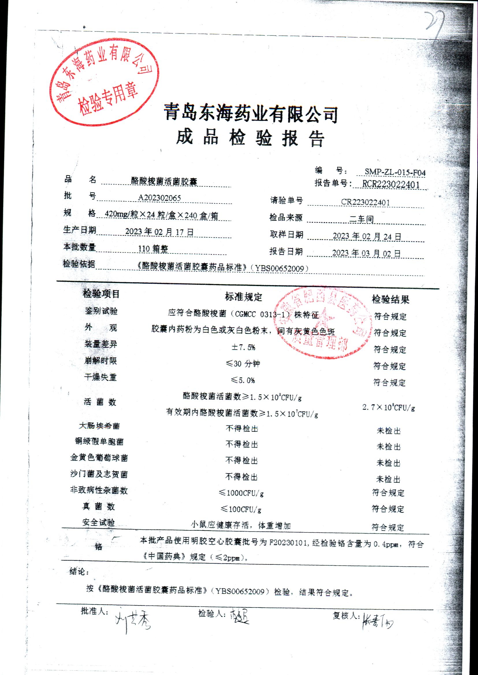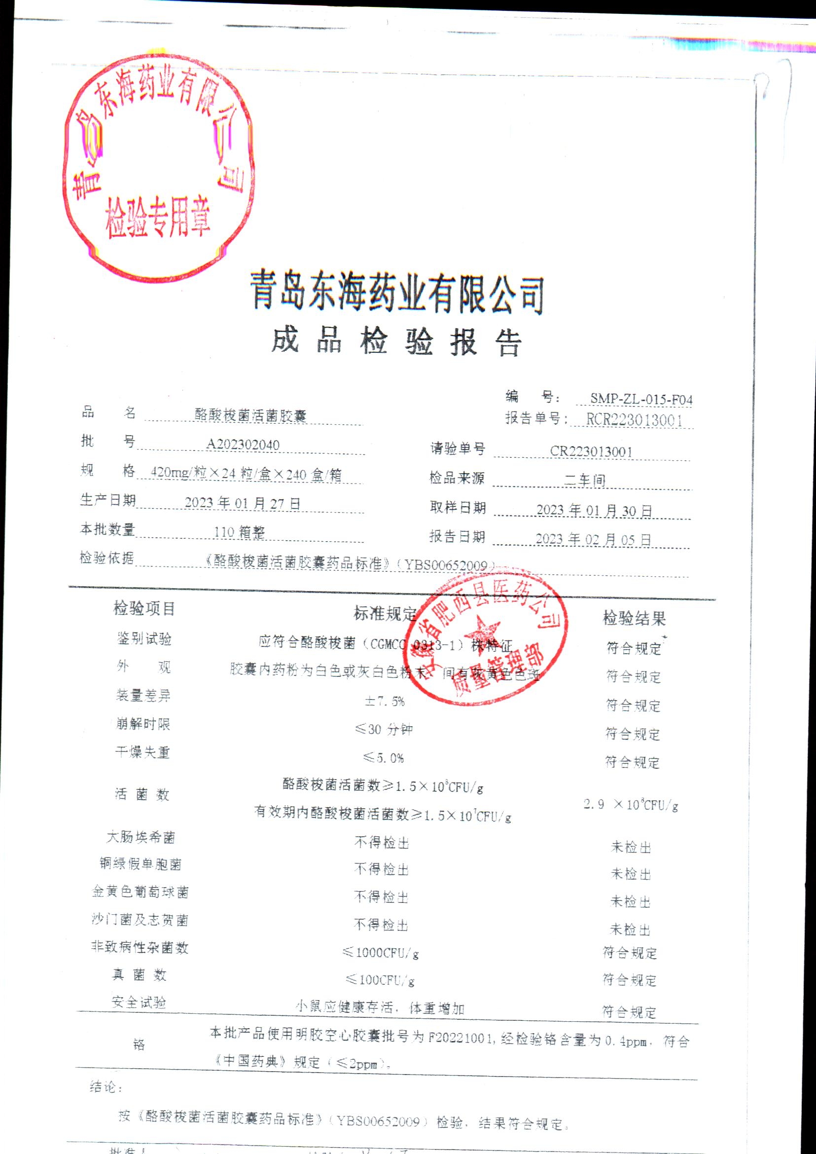 酪酸梭菌活菌胶囊 | 420mg*24粒 | A202302052 | 查看详情 |