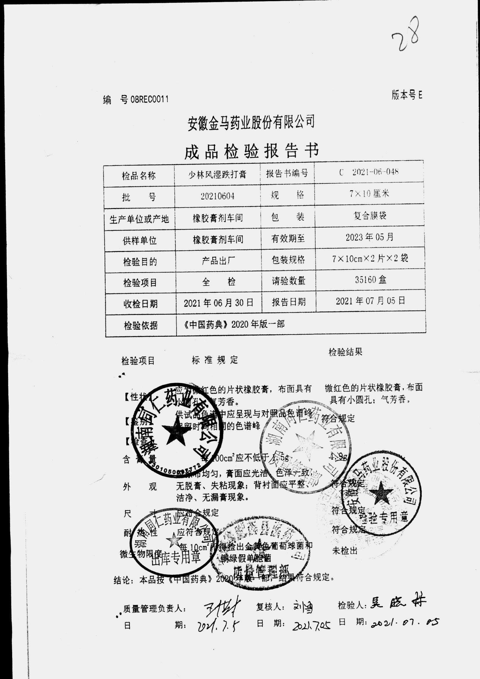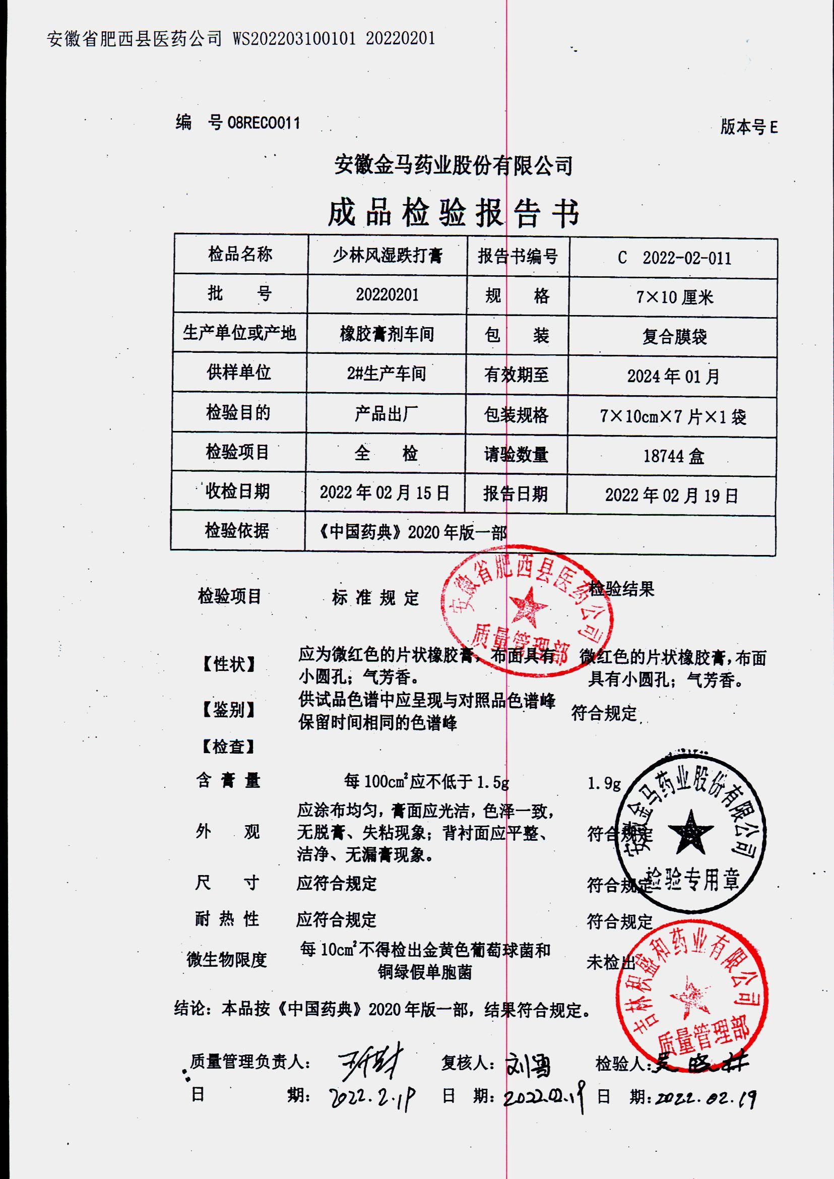 药检报告
