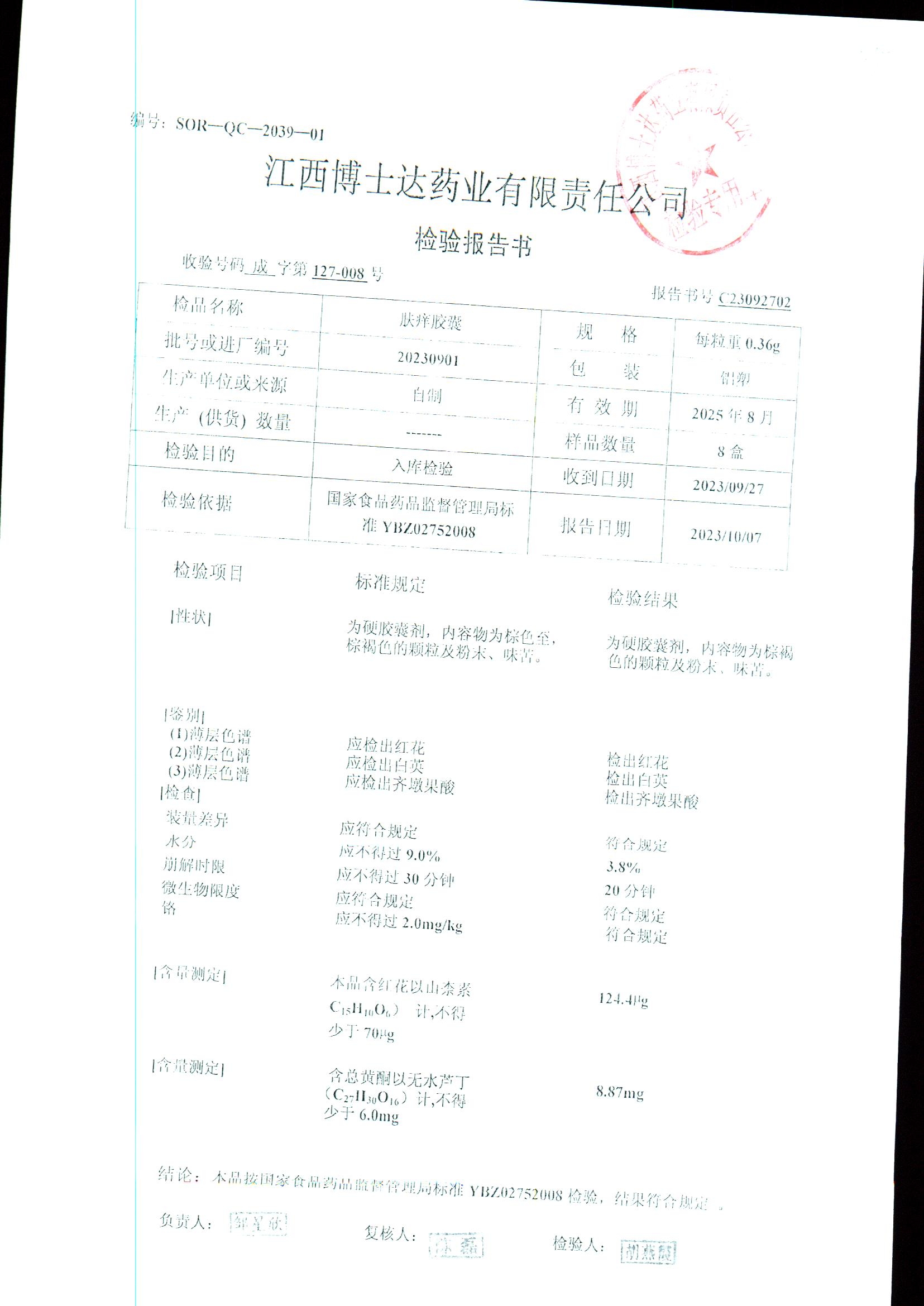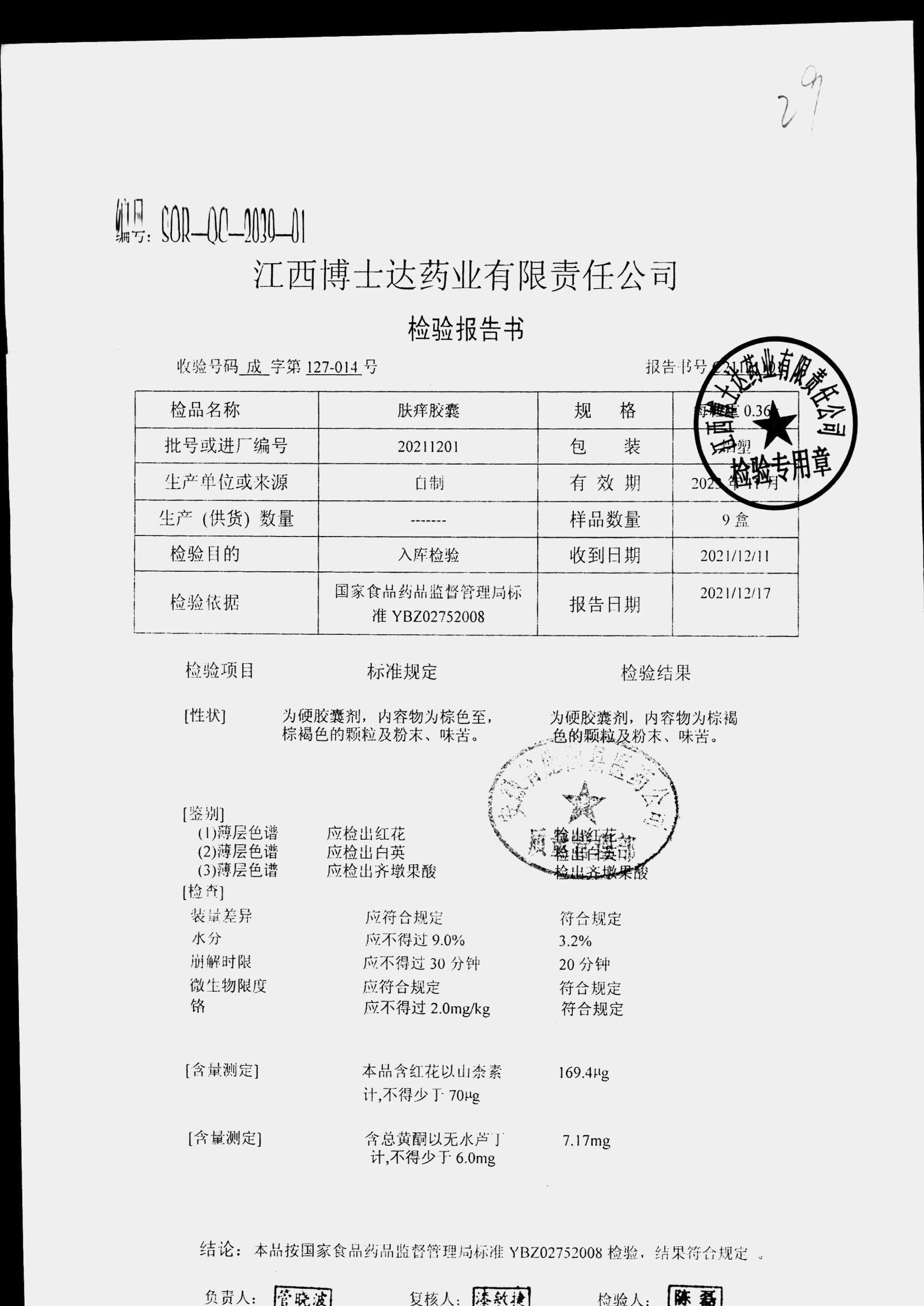 肤痒颗粒 | 0.36g | 20211201 | 查看详情 |
