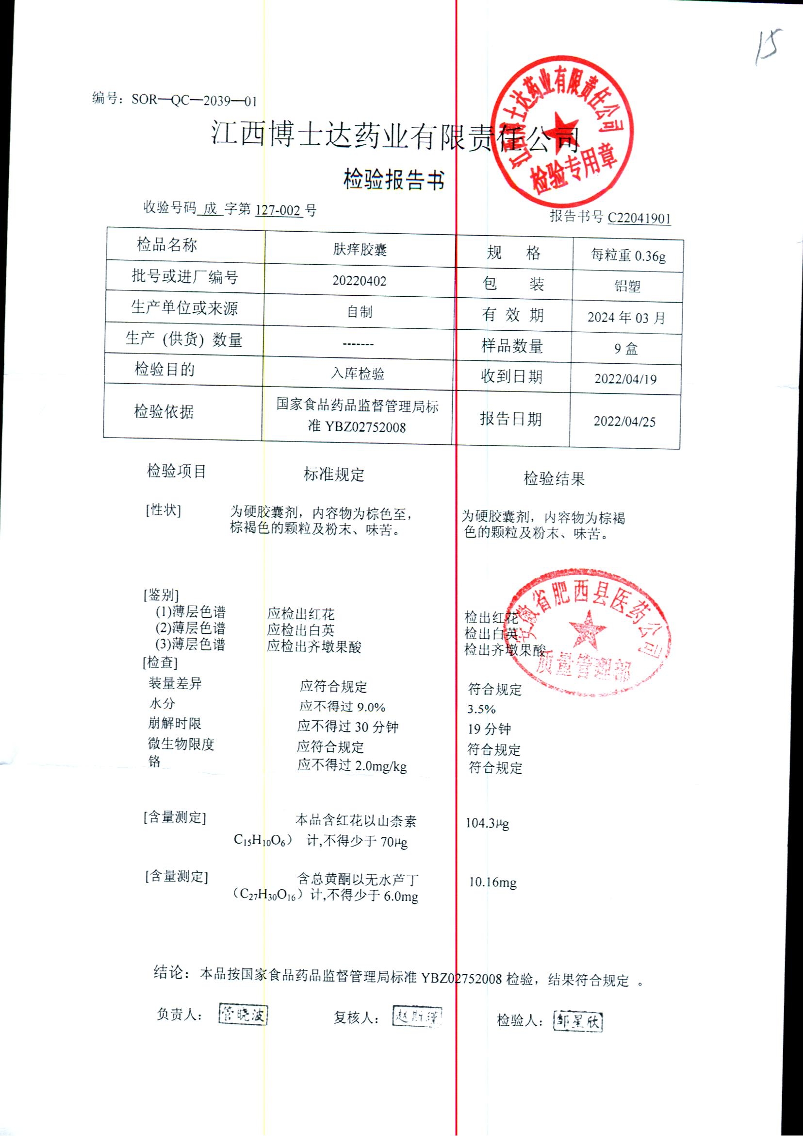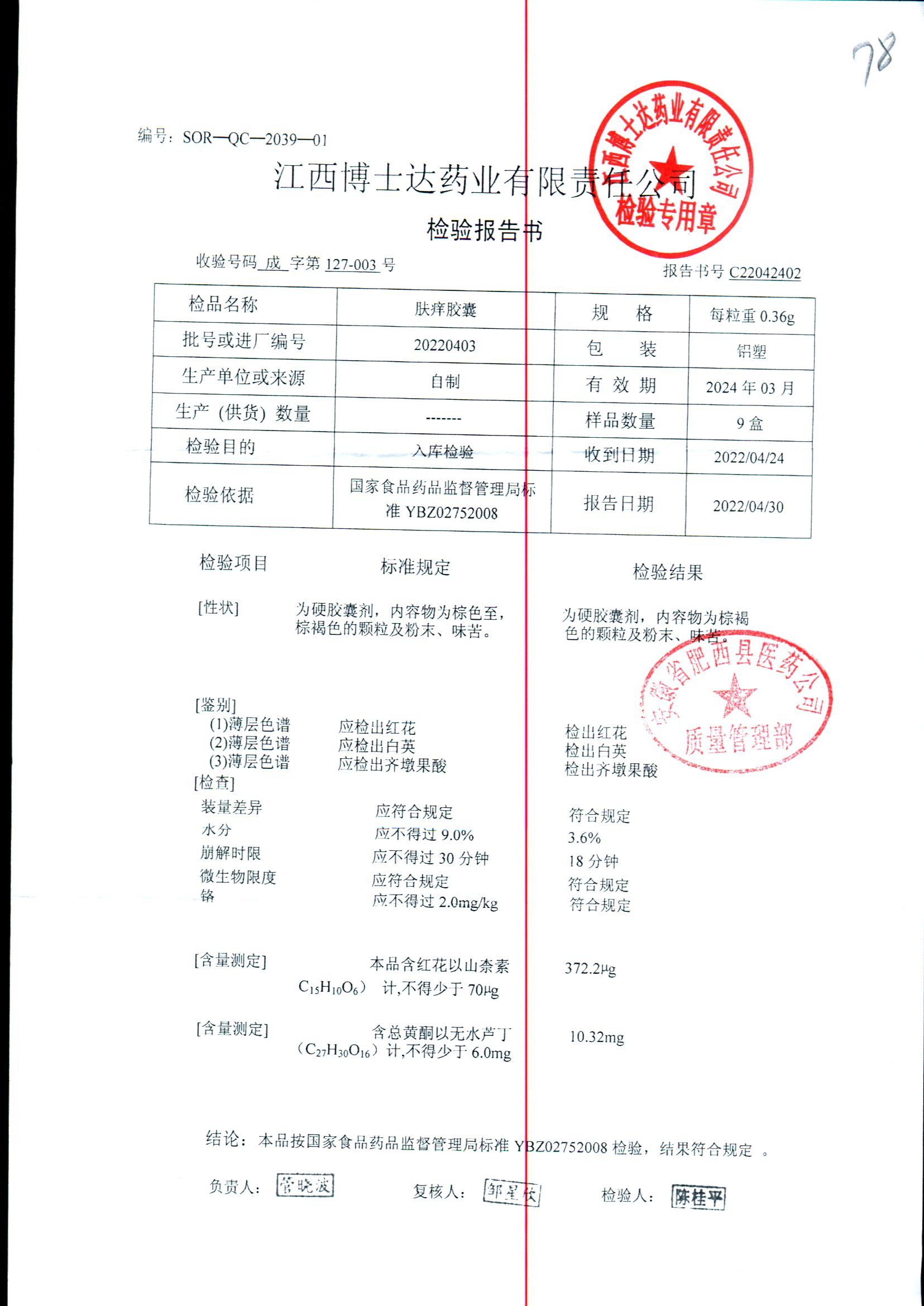 肤痒颗粒 | 0.36g | 20220403 | 查看详情 |