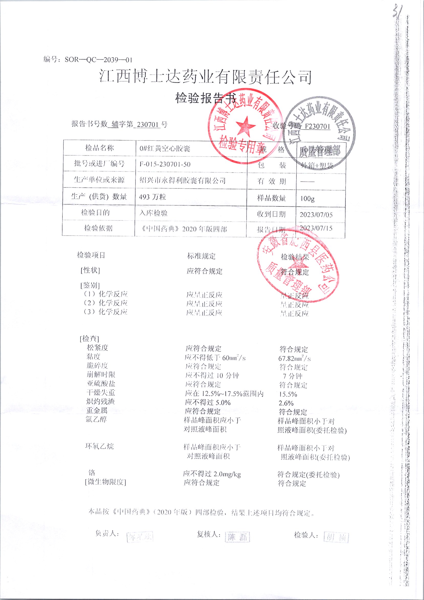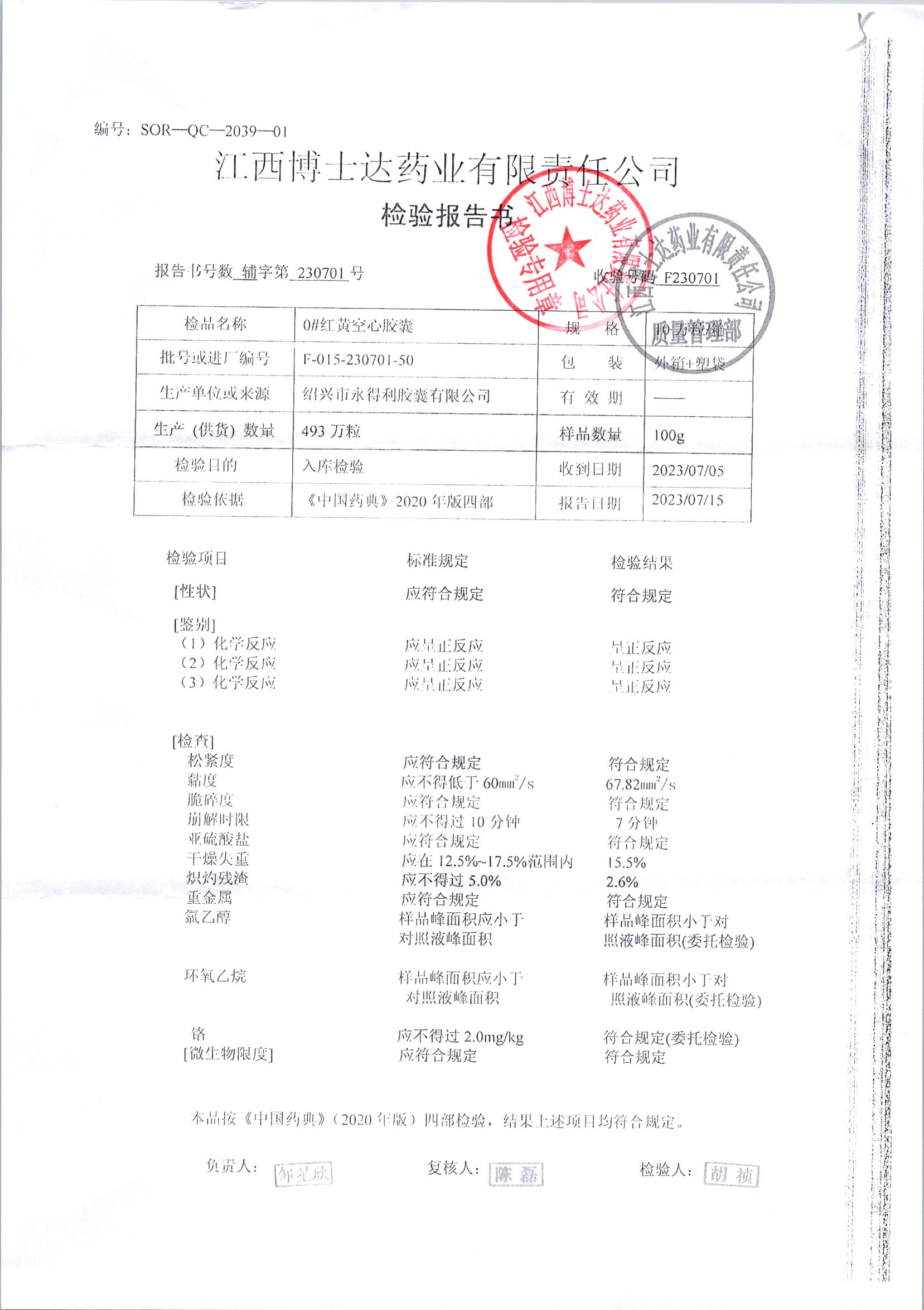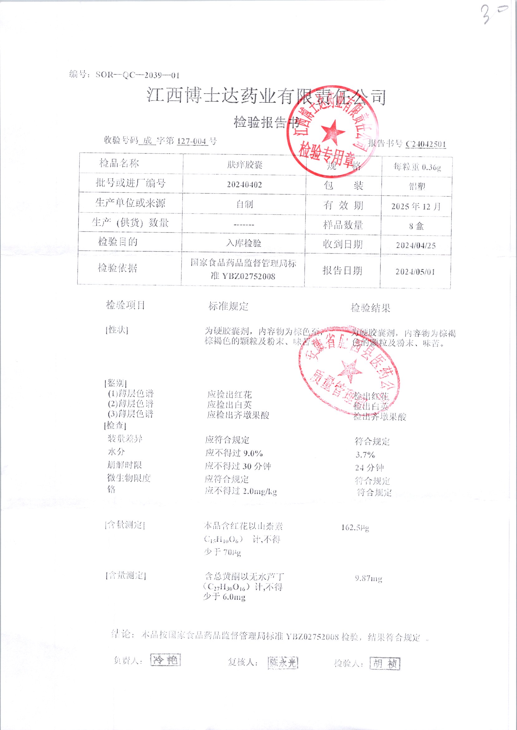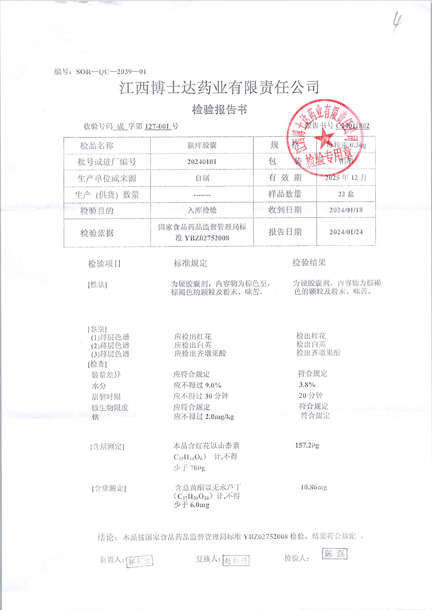 名称 | 规格 | 批号 | 药检报告 |