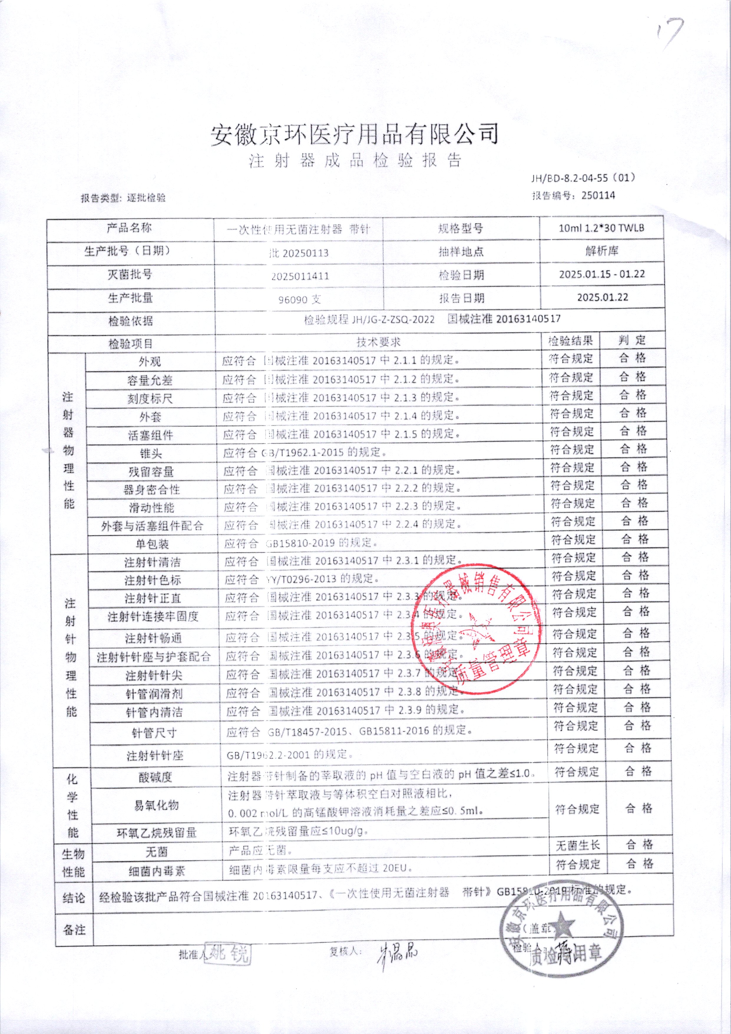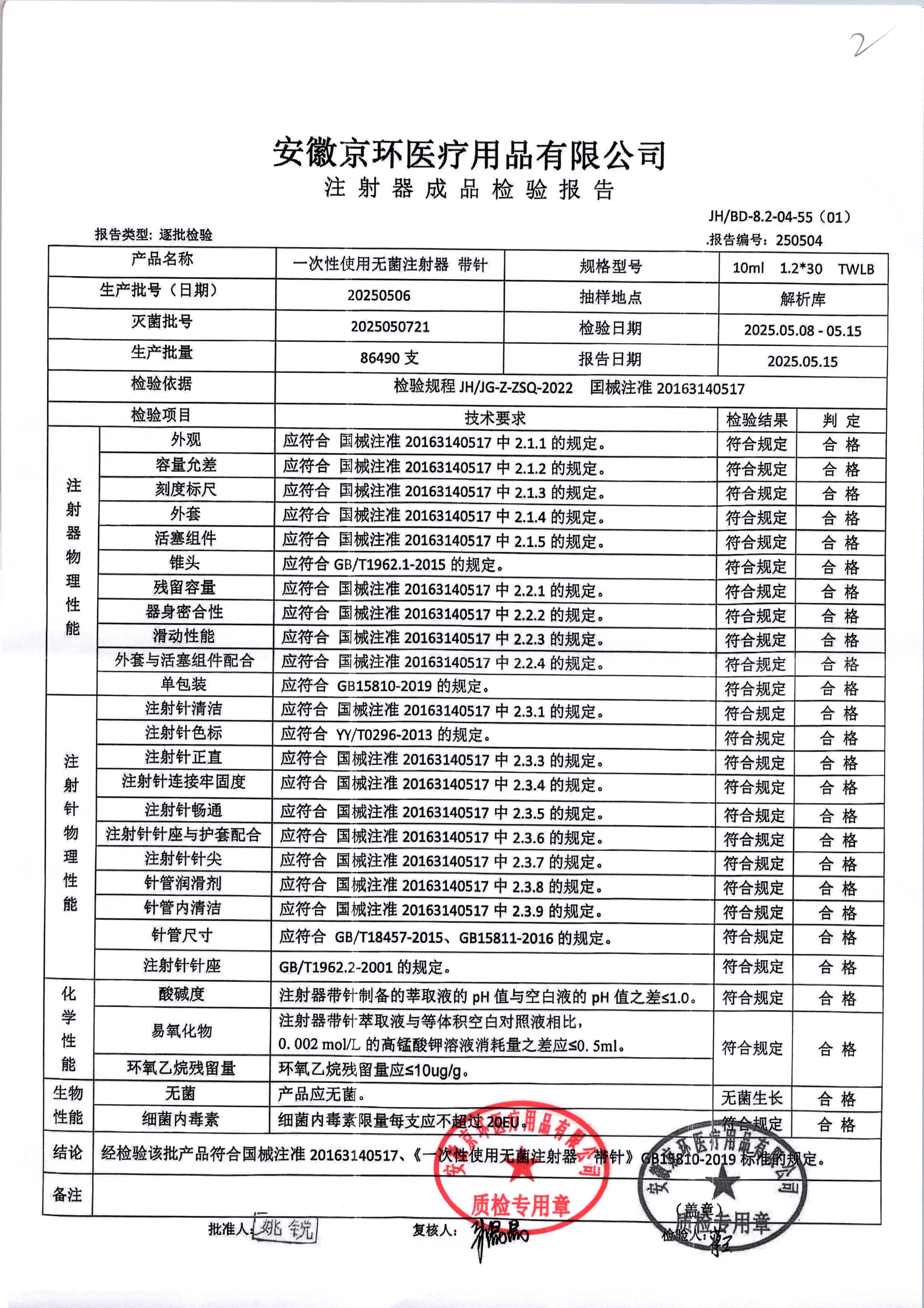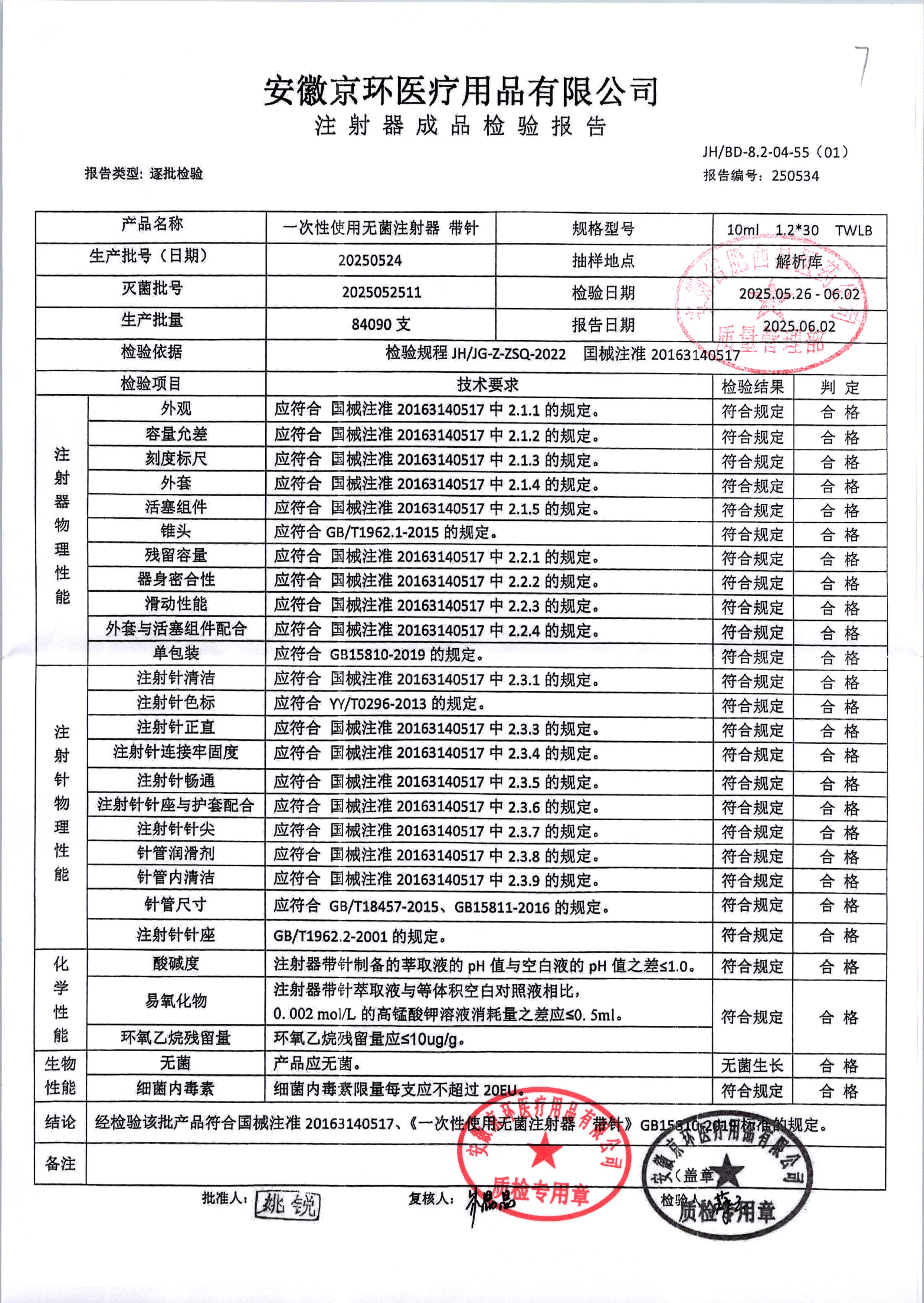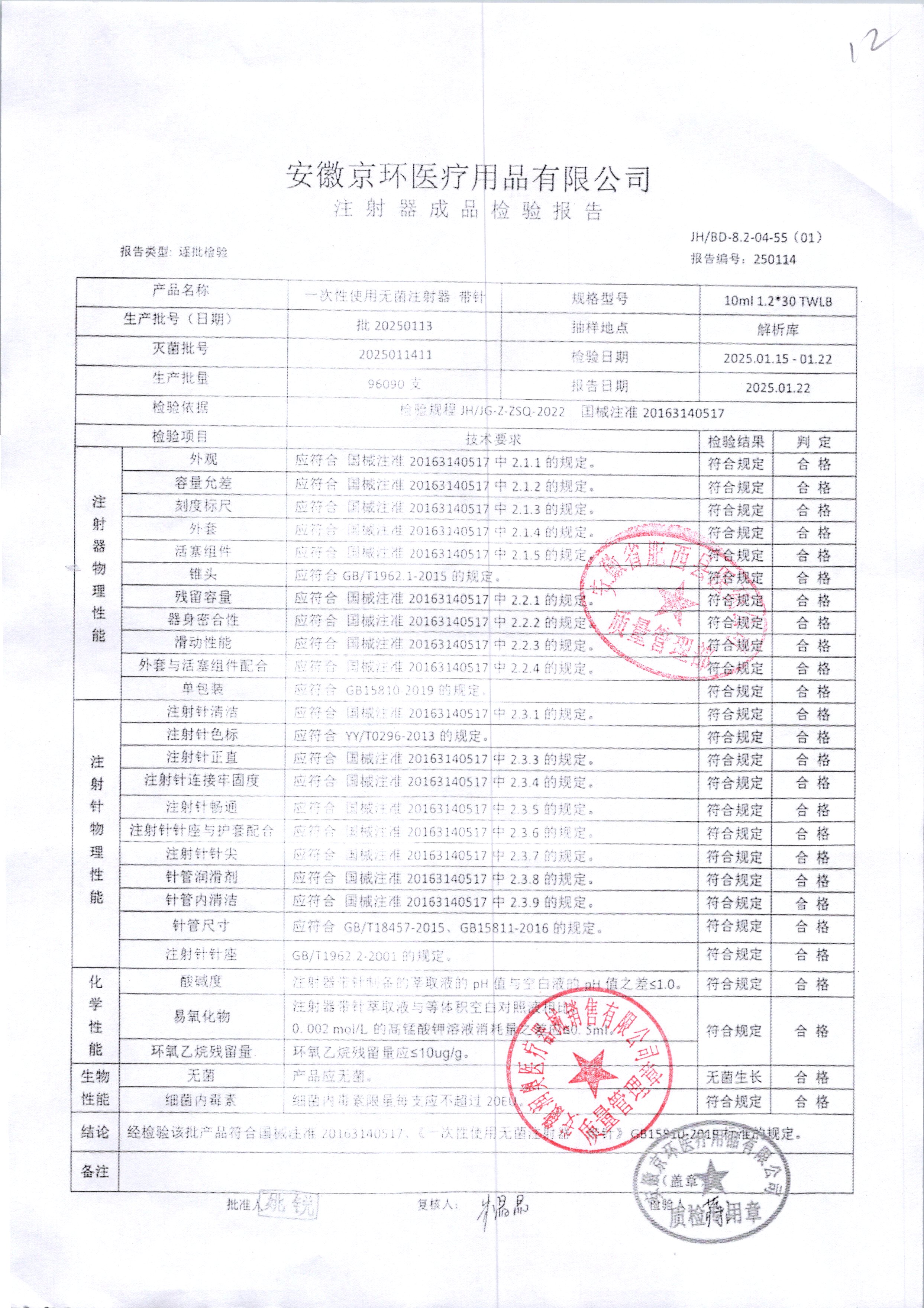 一次性使用无菌注射器带针 | 10ml*1.2*30 | 20250524 | 查看详情 |