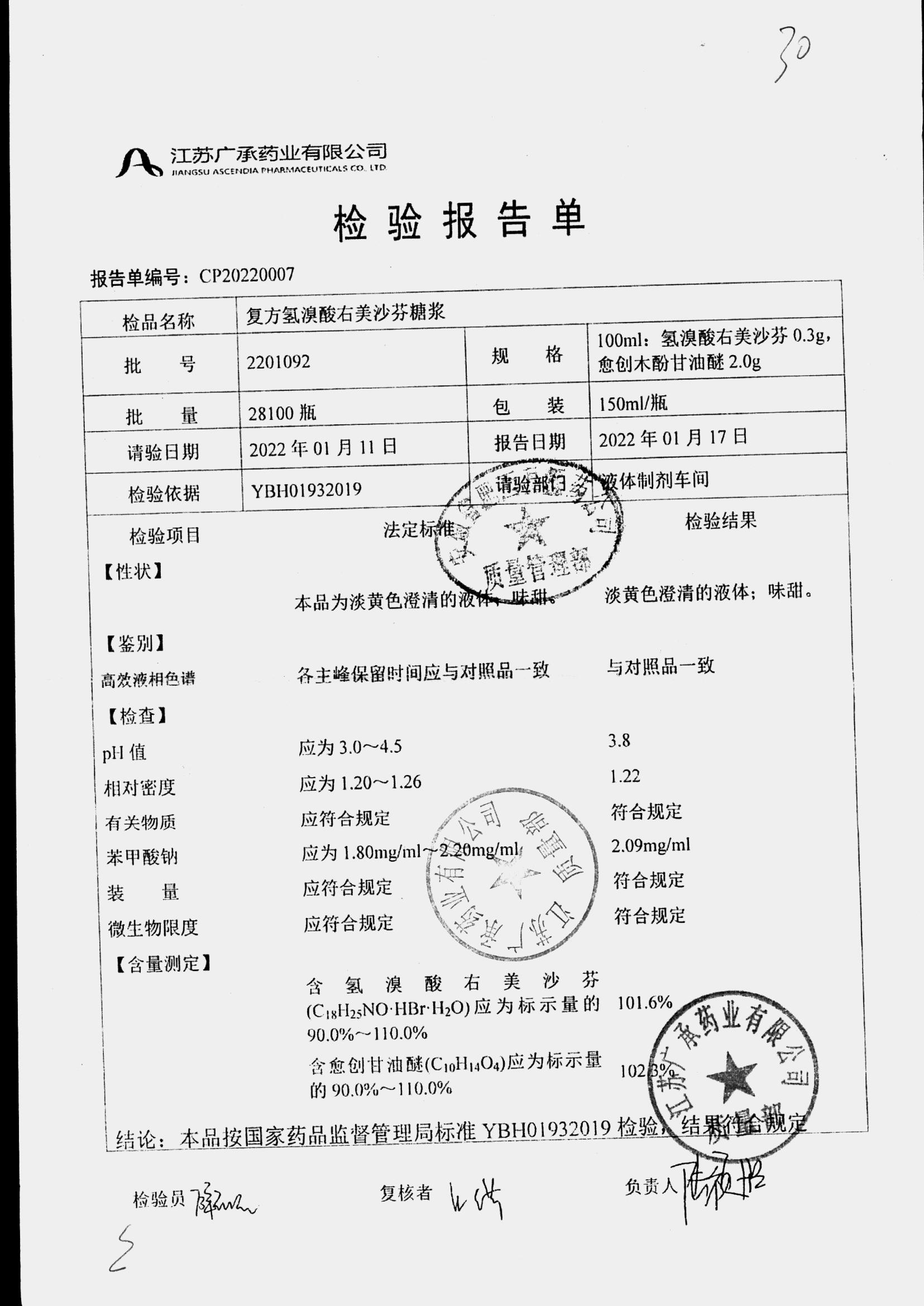 复方氢溴酸右美沙芬糖浆 | 100ml*150ml/瓶 | 2201092 | 查看详情 |