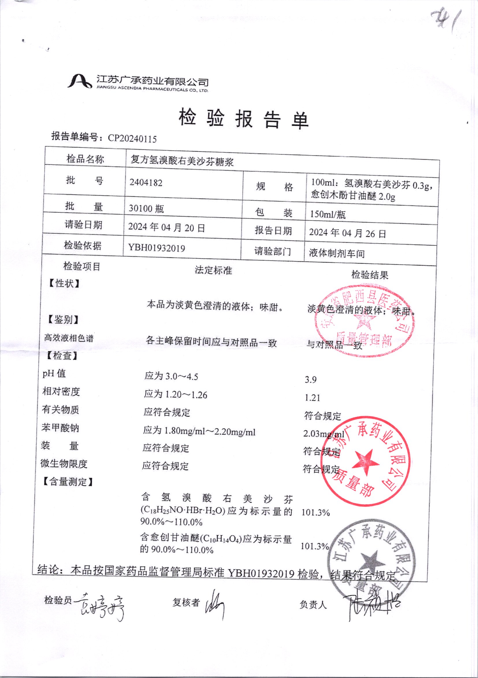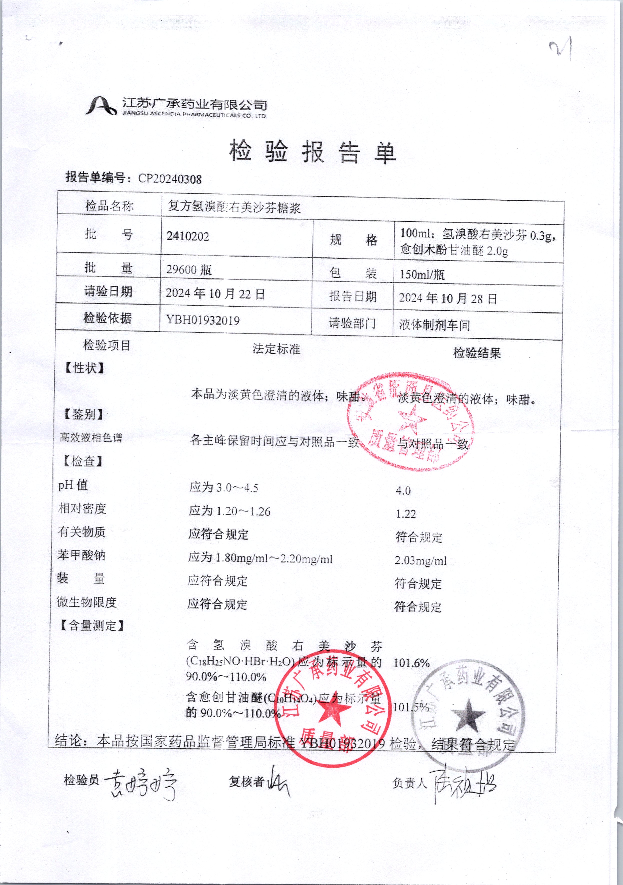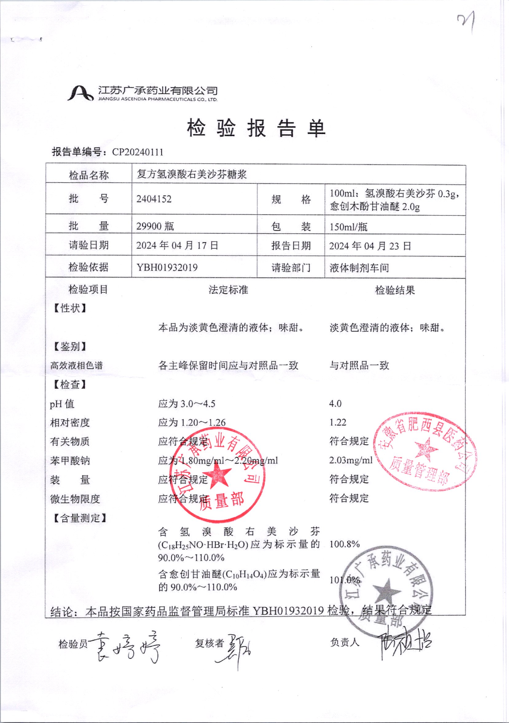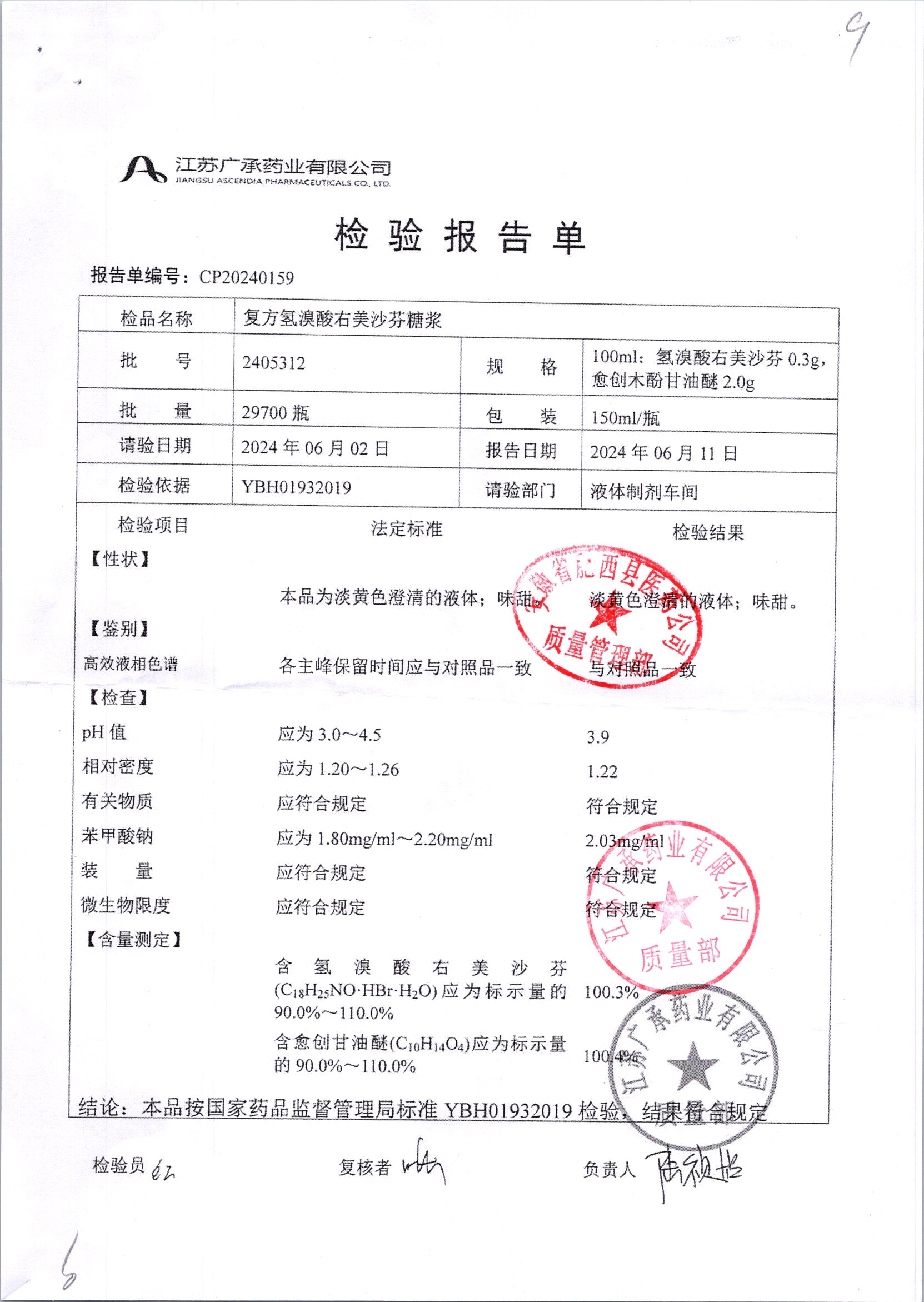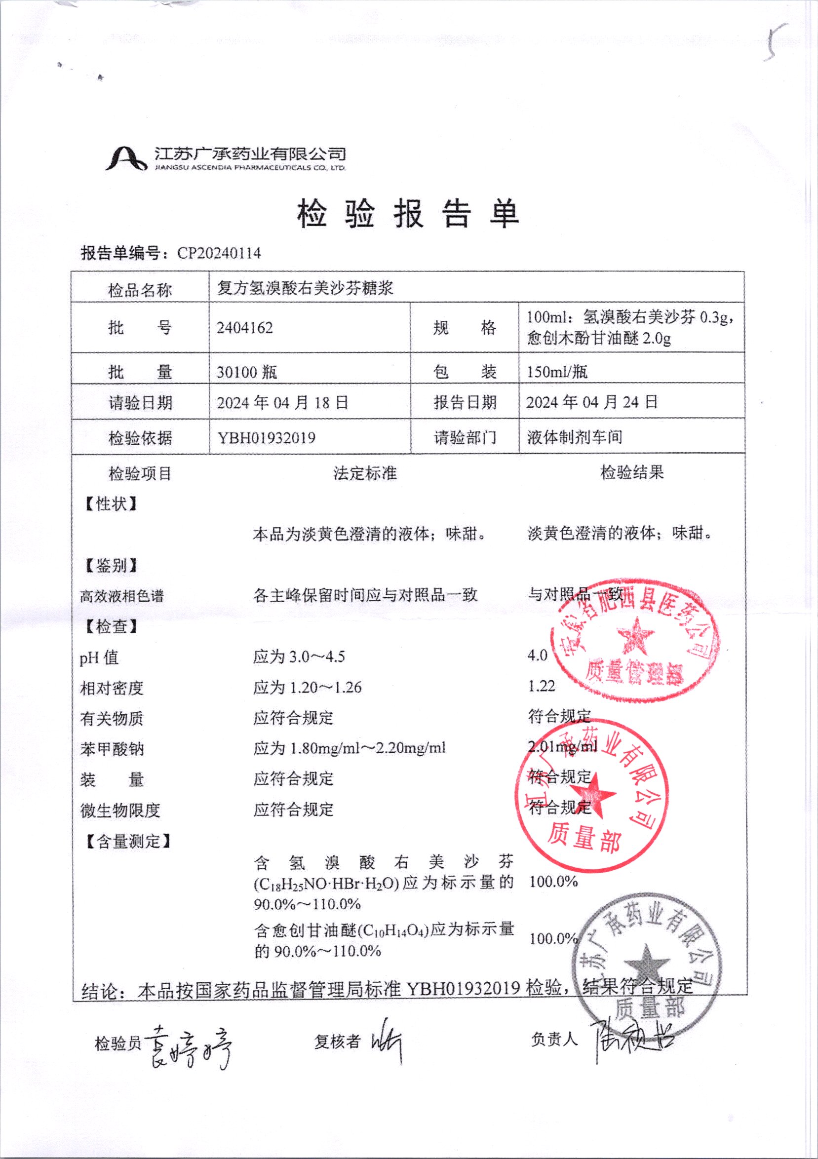 复方氢溴酸右美沙芬糖浆 | 100ml*150ml/瓶 | 2404162 | 查看详情 |