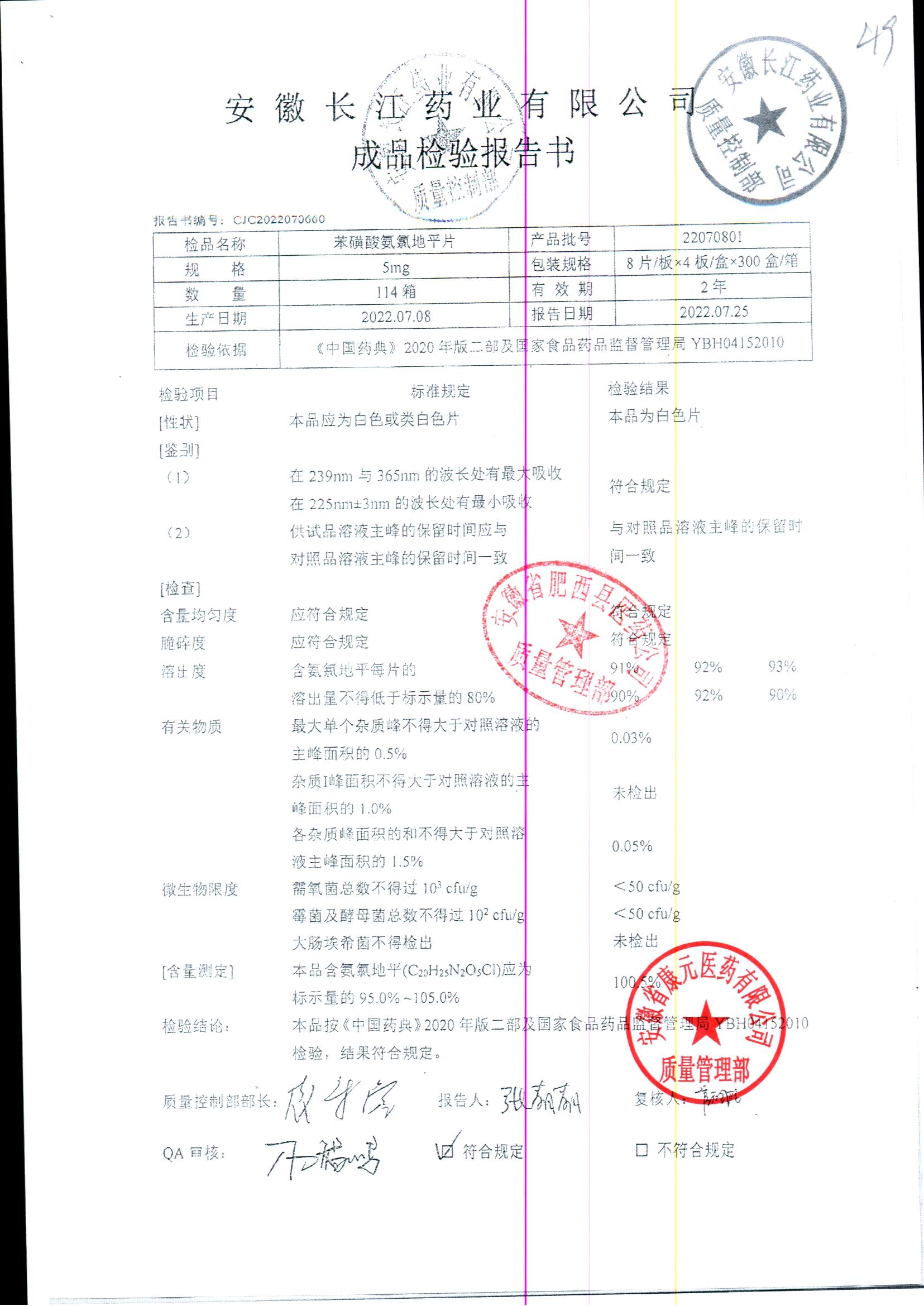 苯磺酸氨氯地平片 | 5mg*32片 | 22070801 | 查看详情 |