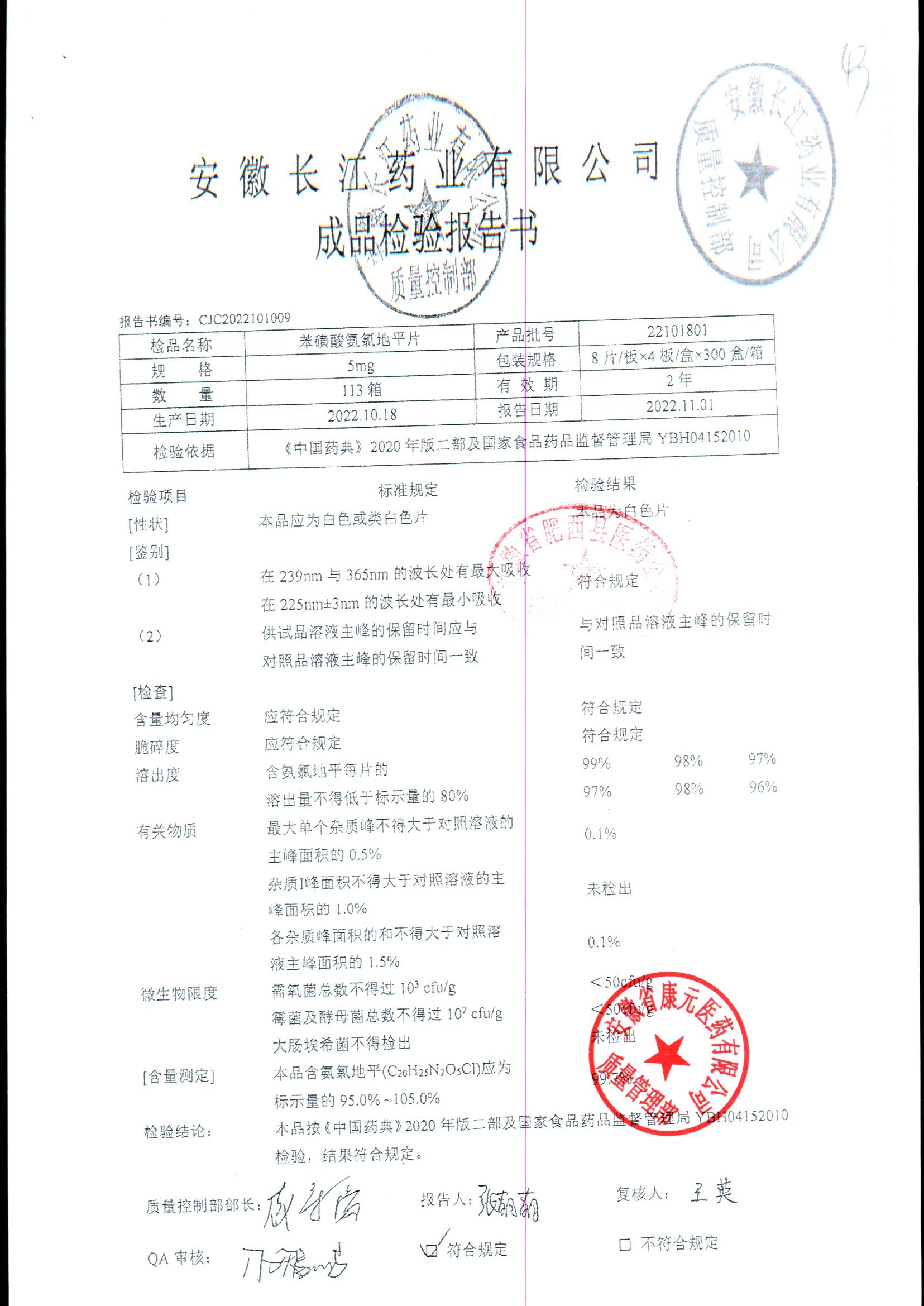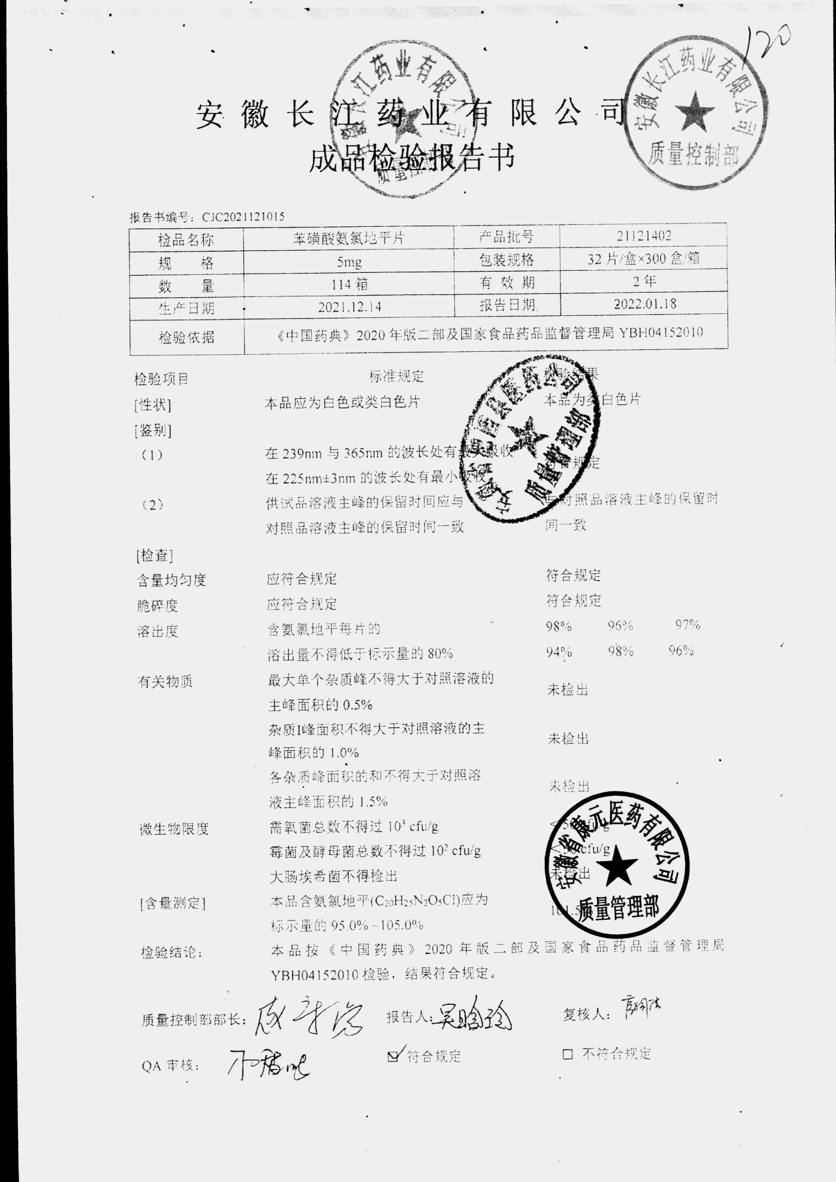 苯磺酸氨氯地平片 | 5mg*32片 | 22051401 | 查看详情 |