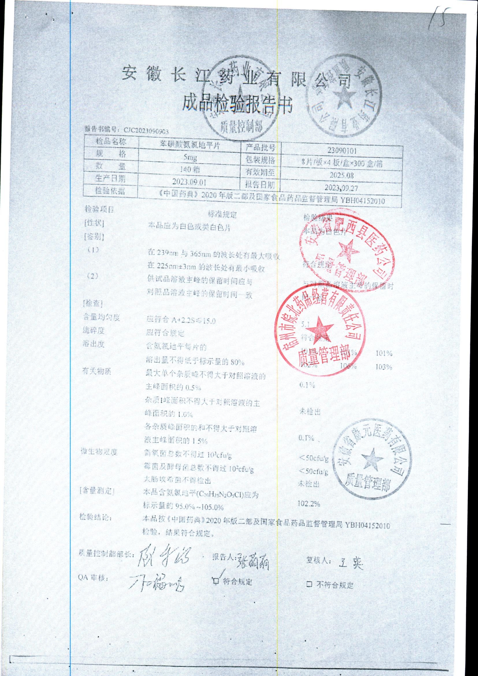 苯磺酸氨氯地平片 | 5mg*32片 | 23090101 | 查看详情 |