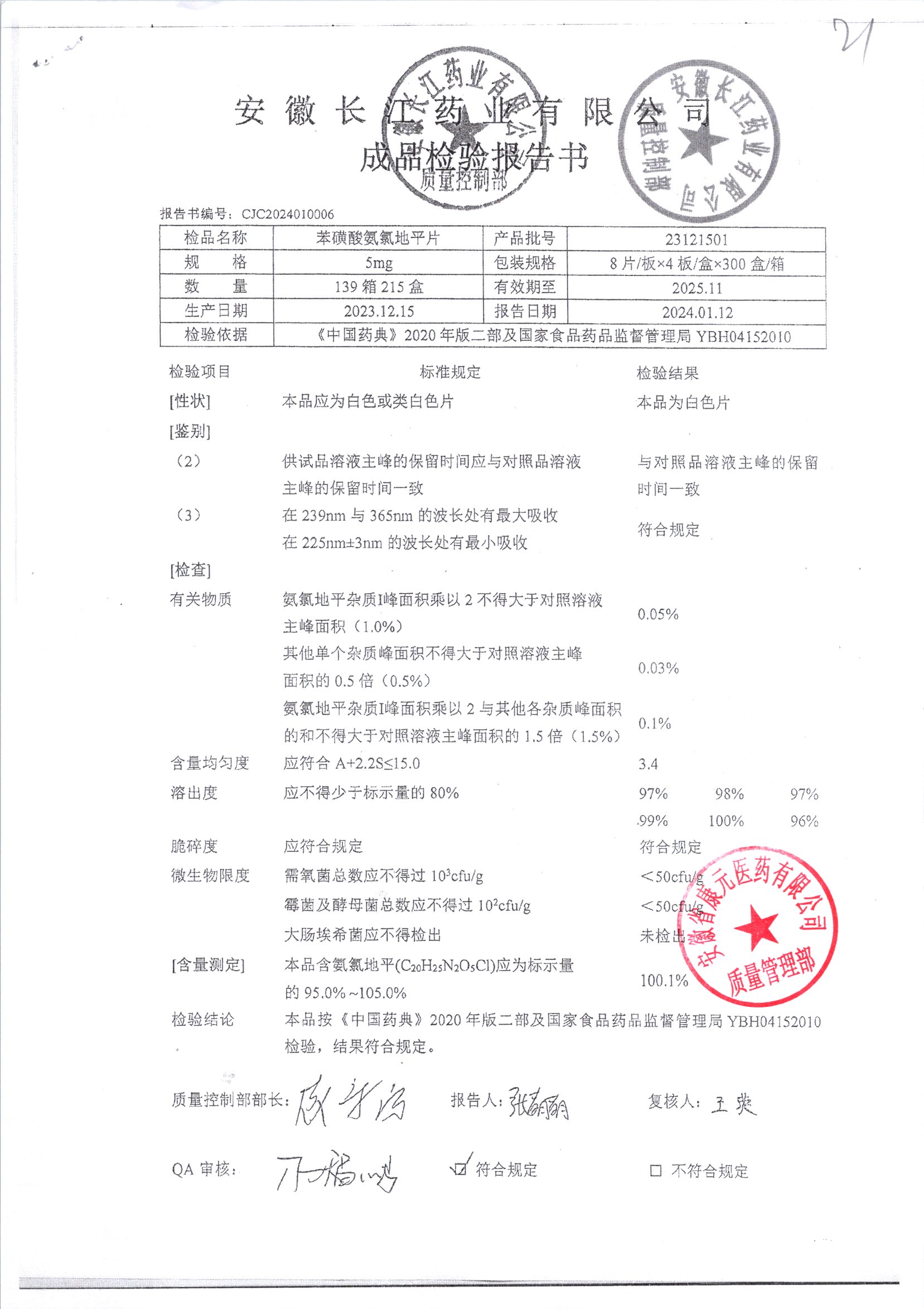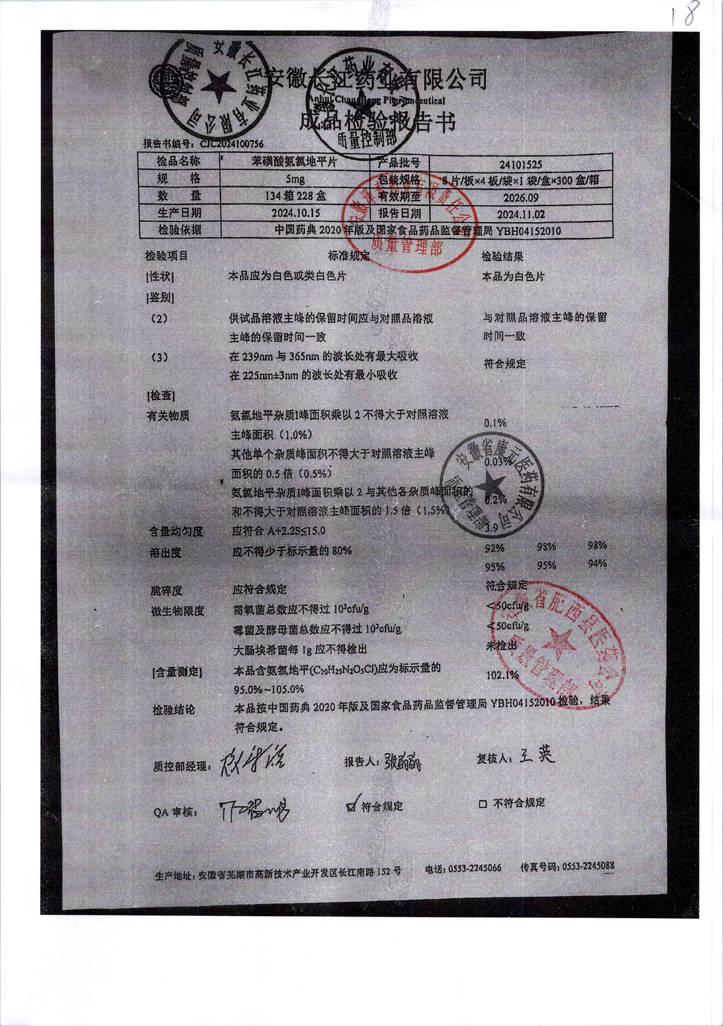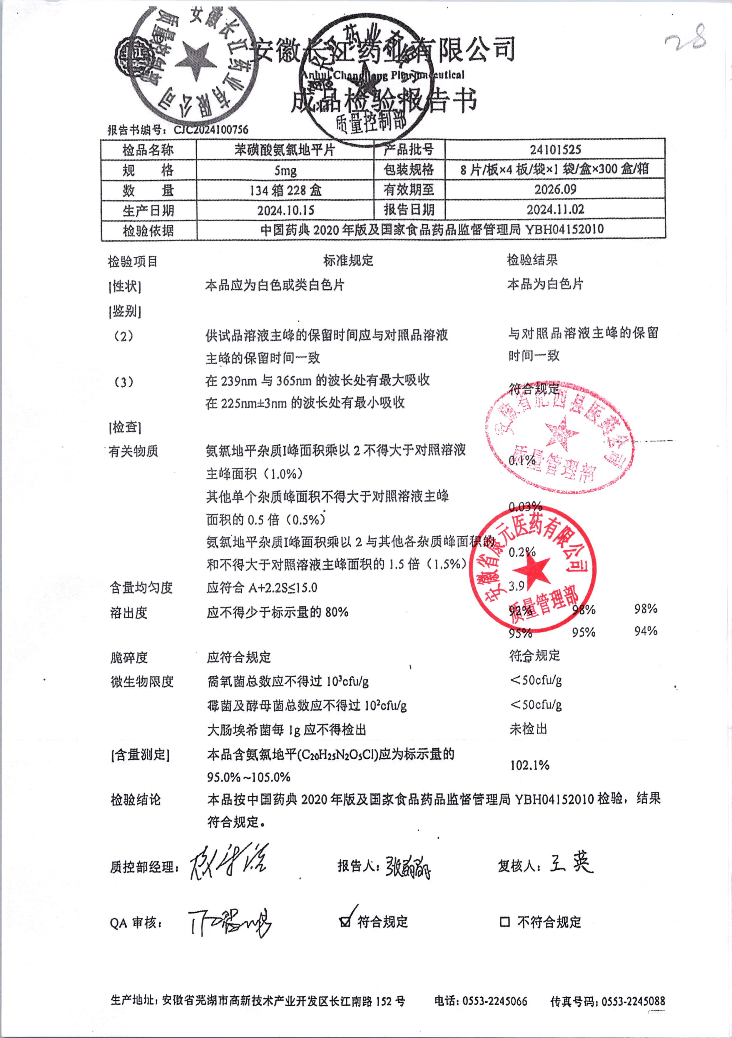 苯磺酸氨氯地平片 | 5mg*32片 | 24052001 | 查看详情 |