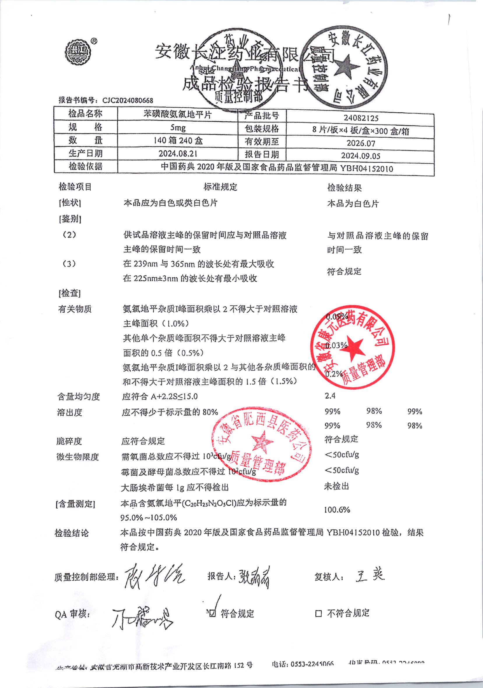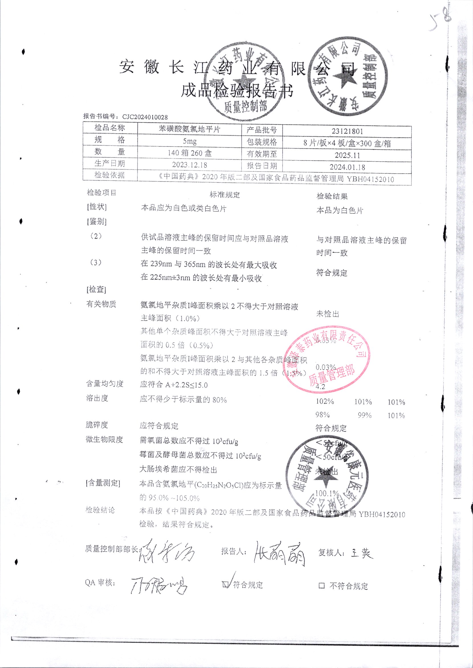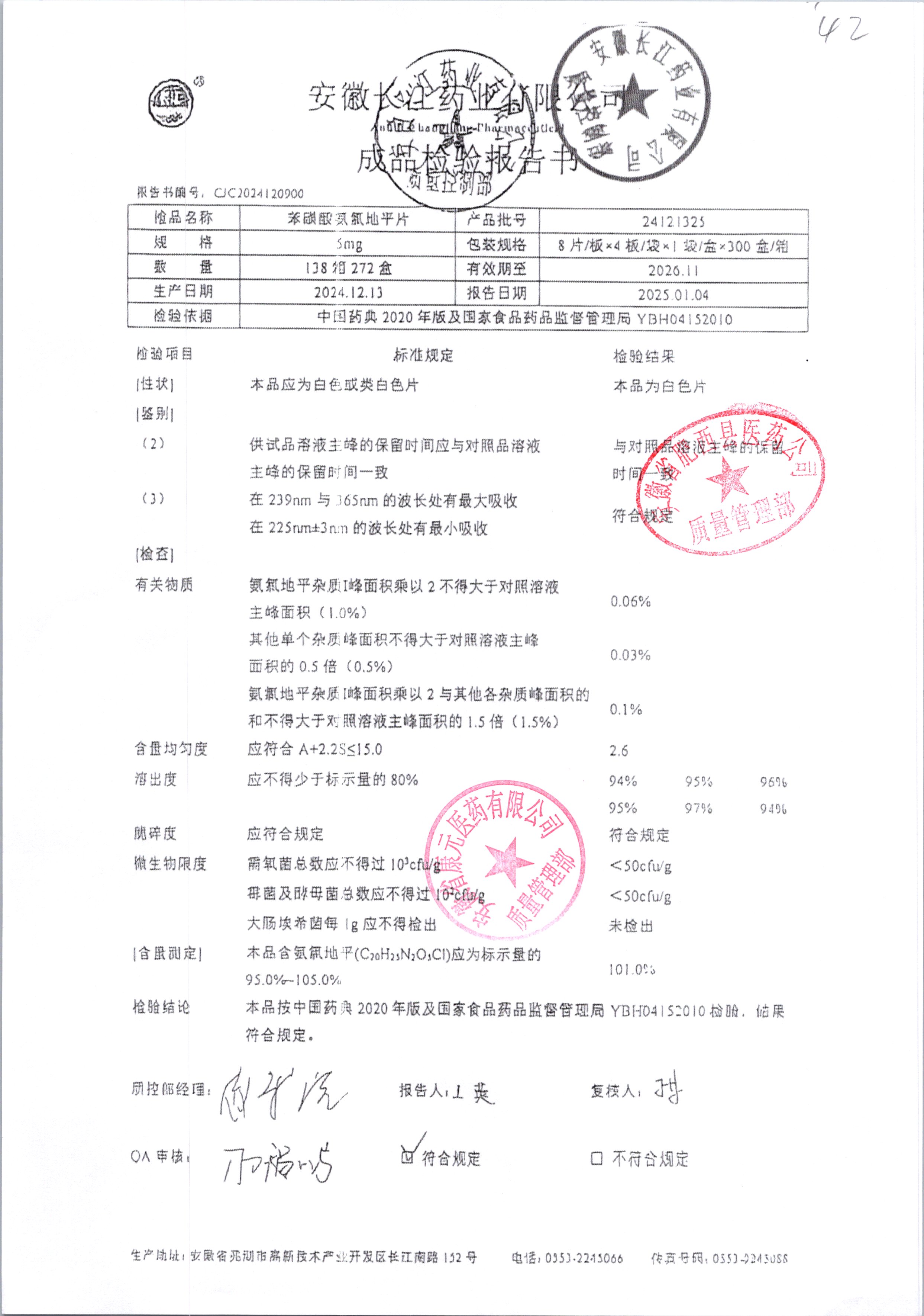 苯磺酸氨氯地平片 | 5mg*32片 | 24052001 | 查看详情 |