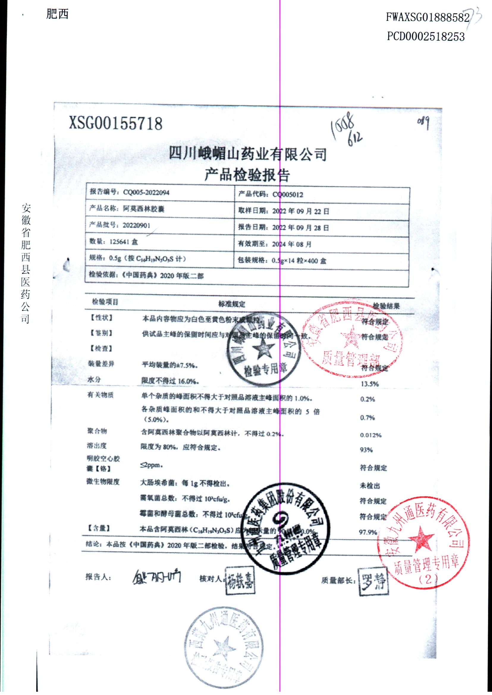 阿莫西林胶囊 | 0.5g *14粒 | 20220901 | 查看详情 |