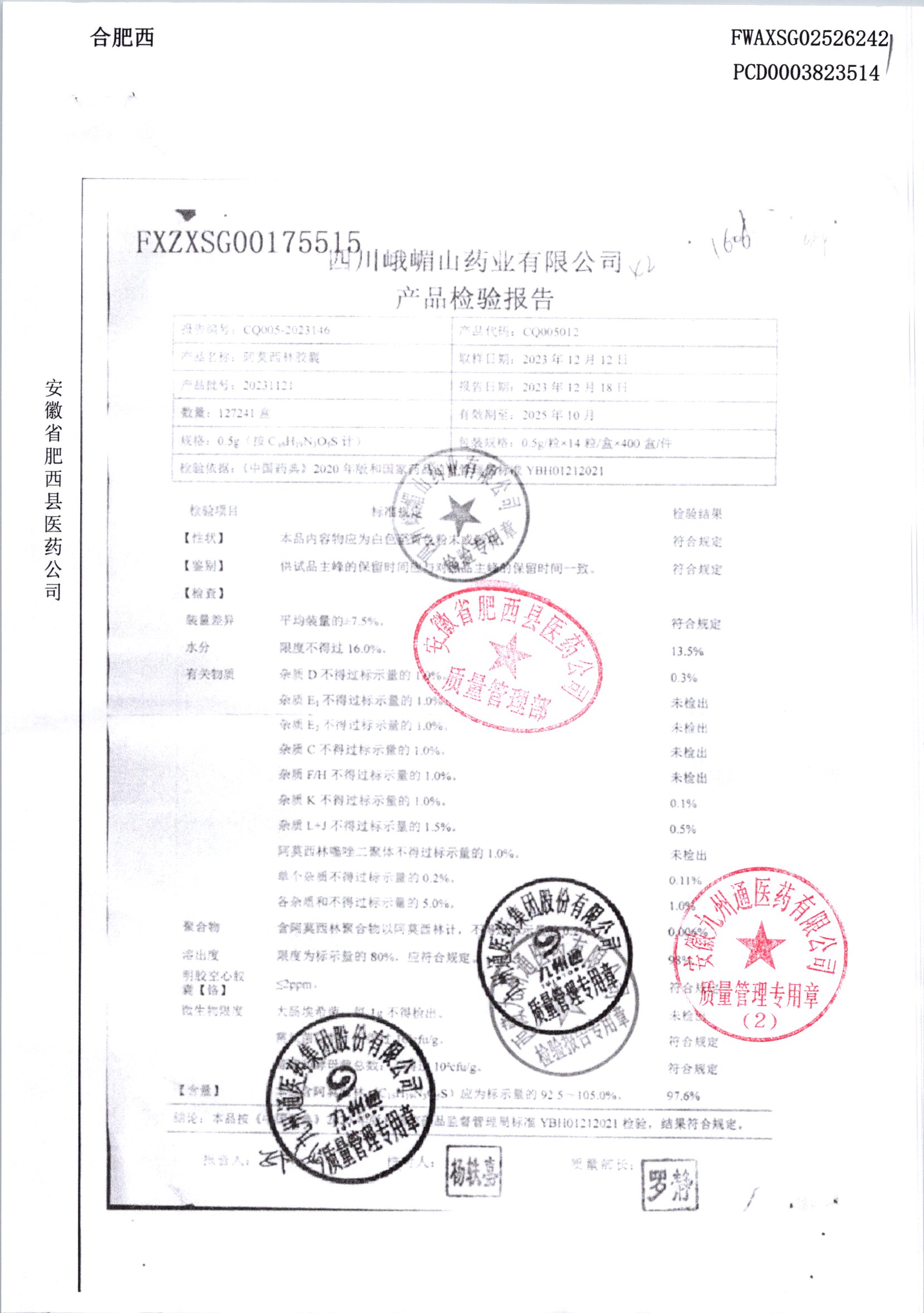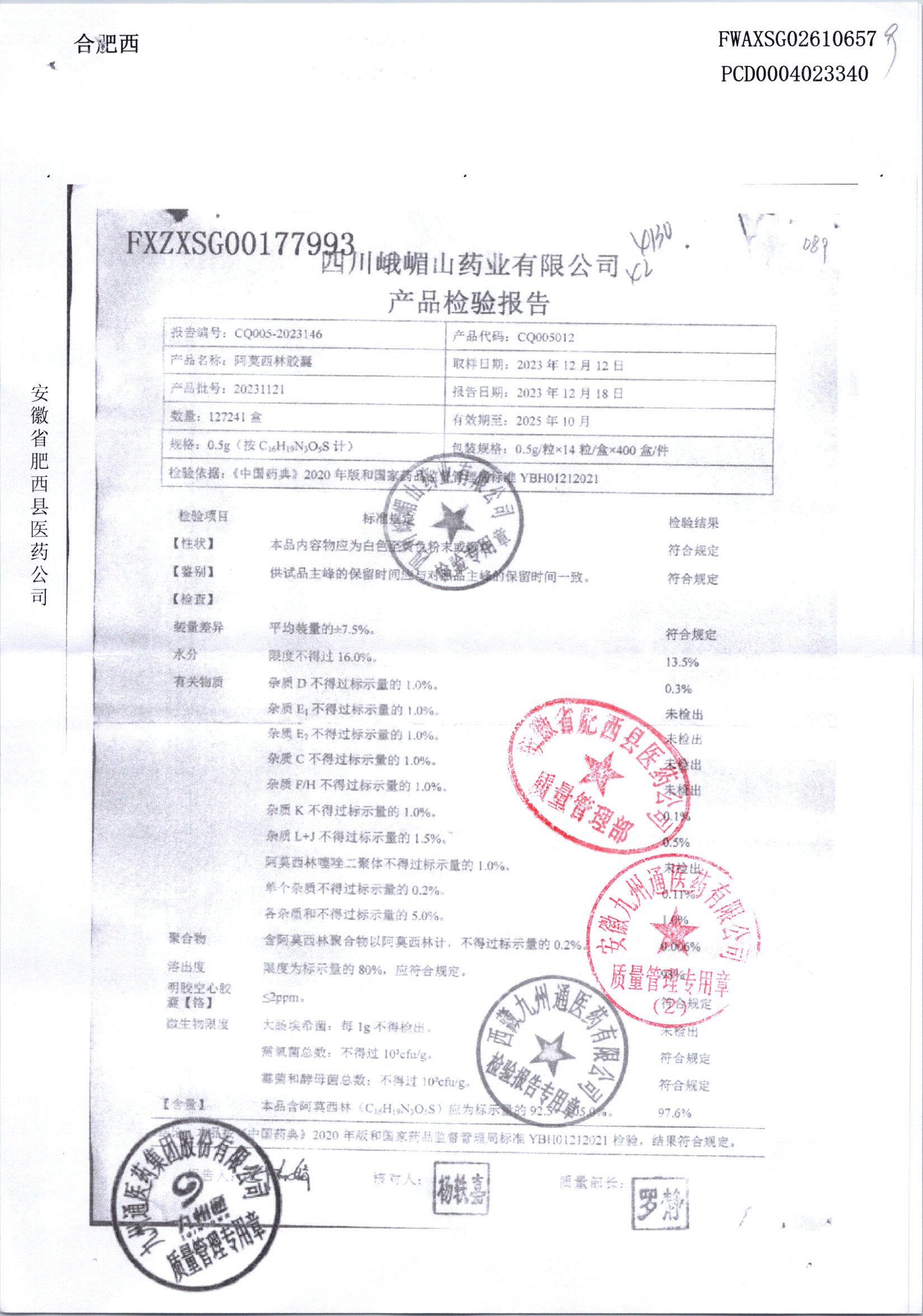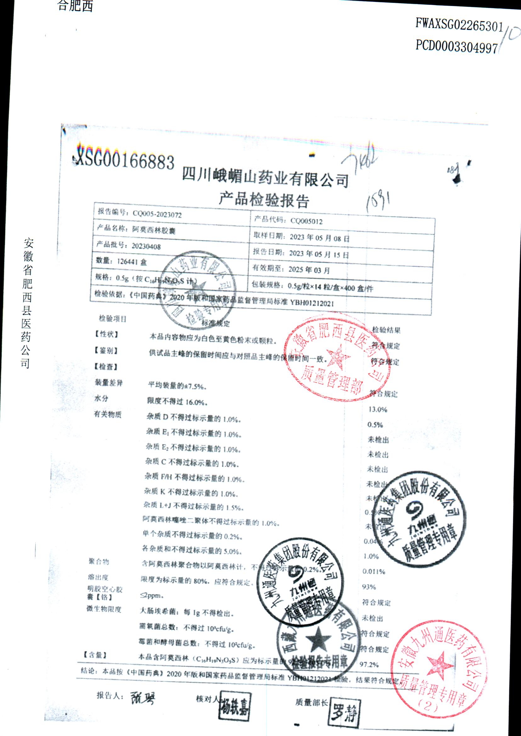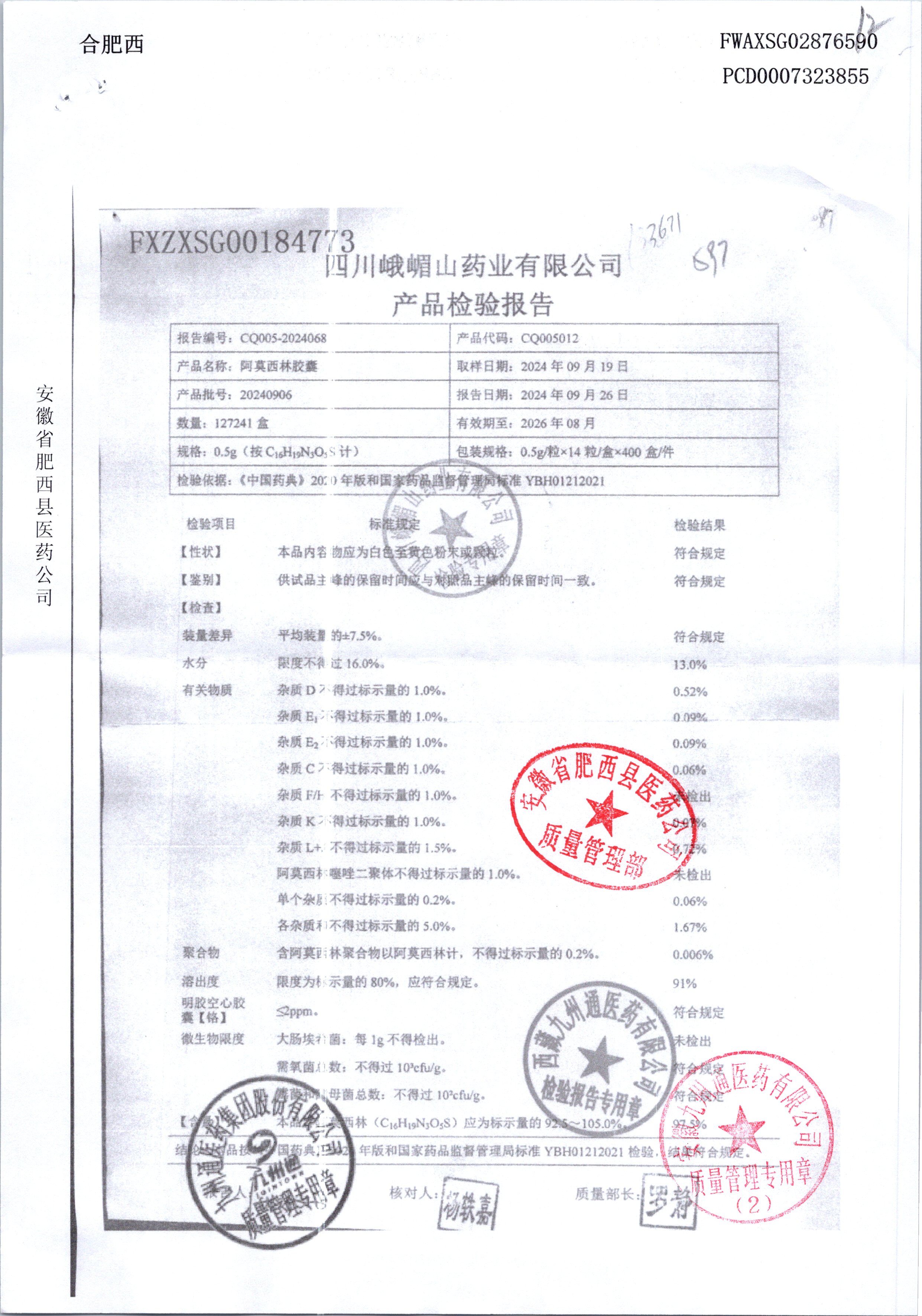 阿莫西林胶囊 | 0.5g *14粒 | 20240906 | 查看详情 |