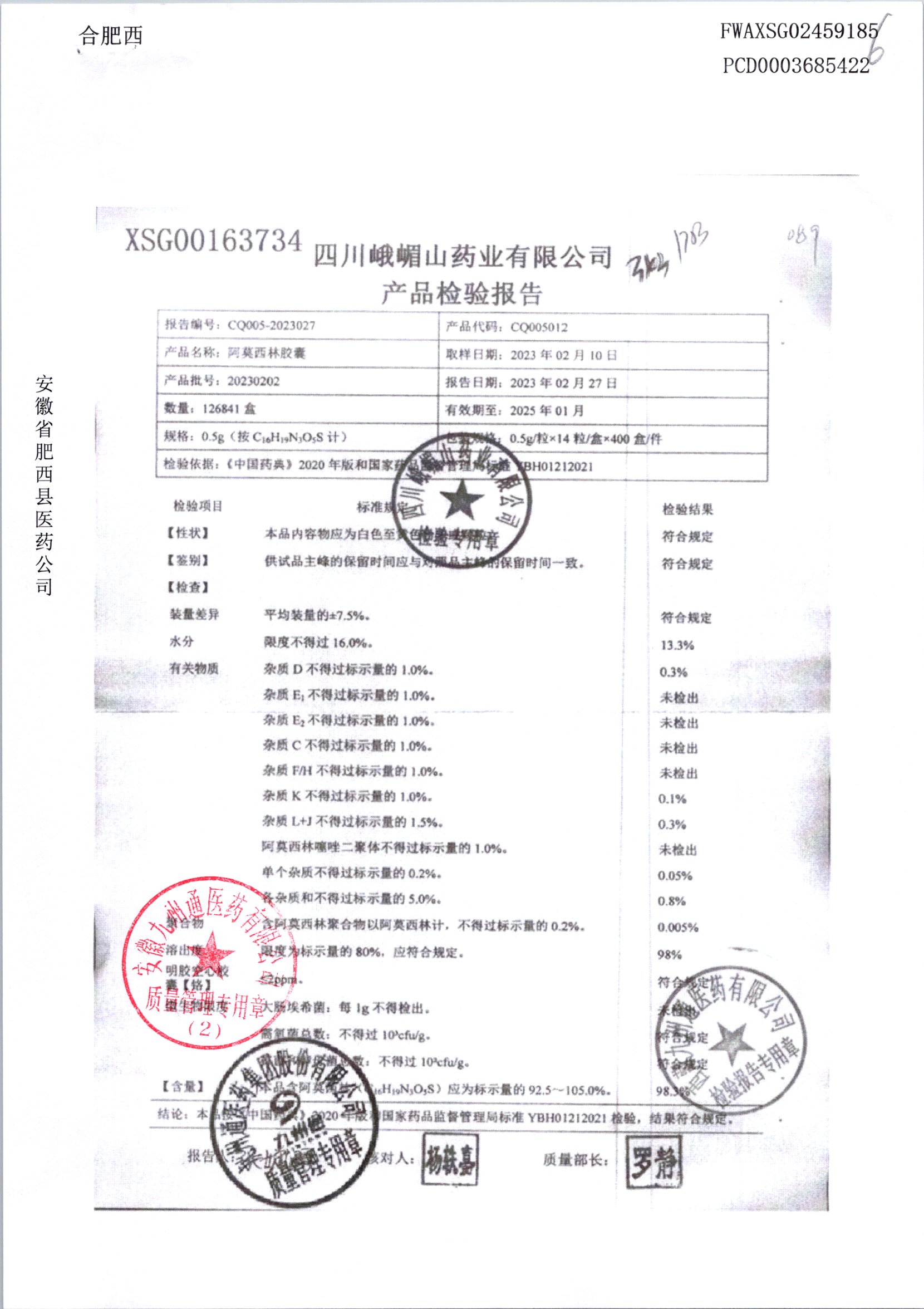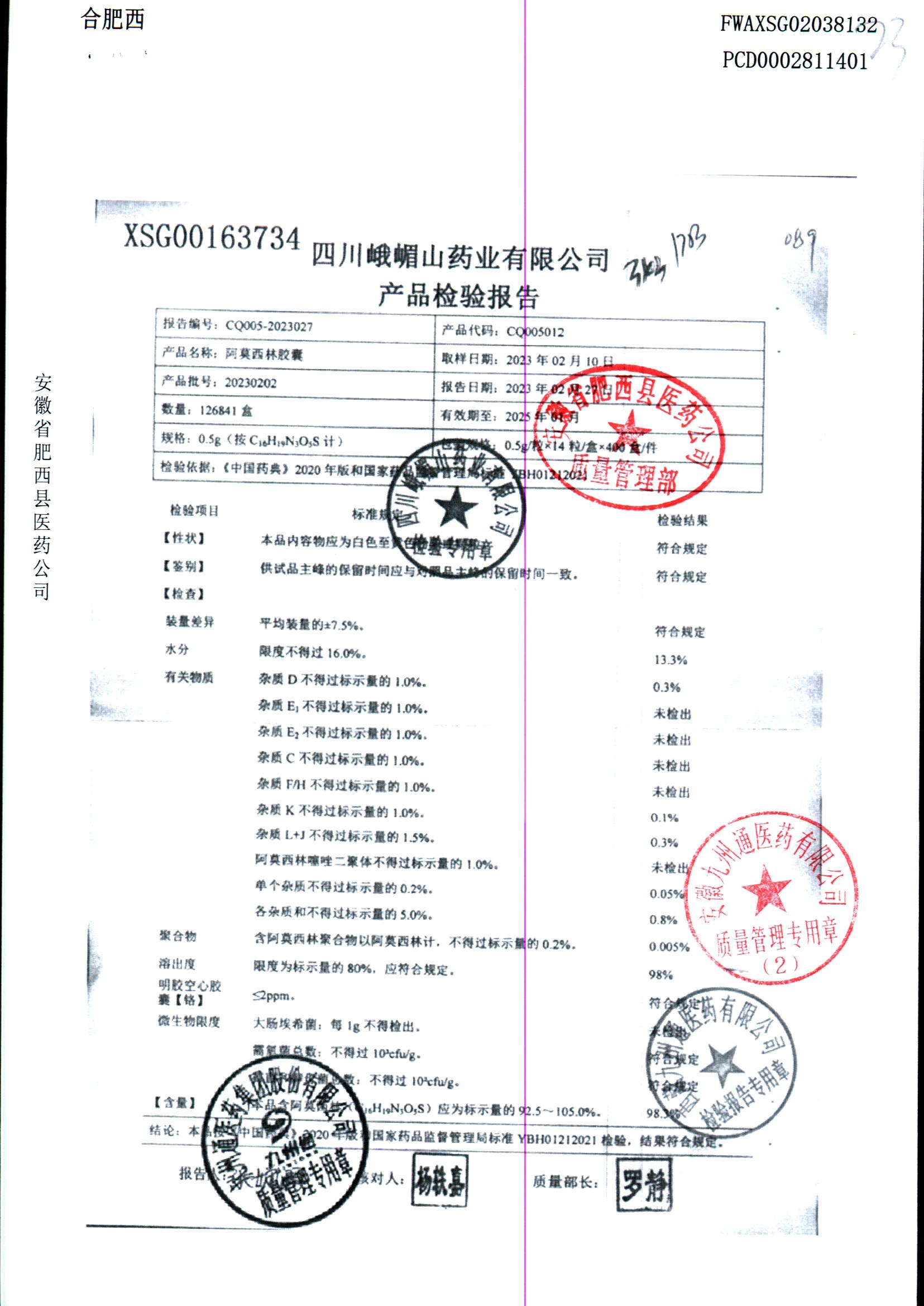 阿莫西林胶囊 | 0.5g *14粒 | 20230202 | 查看详情 |