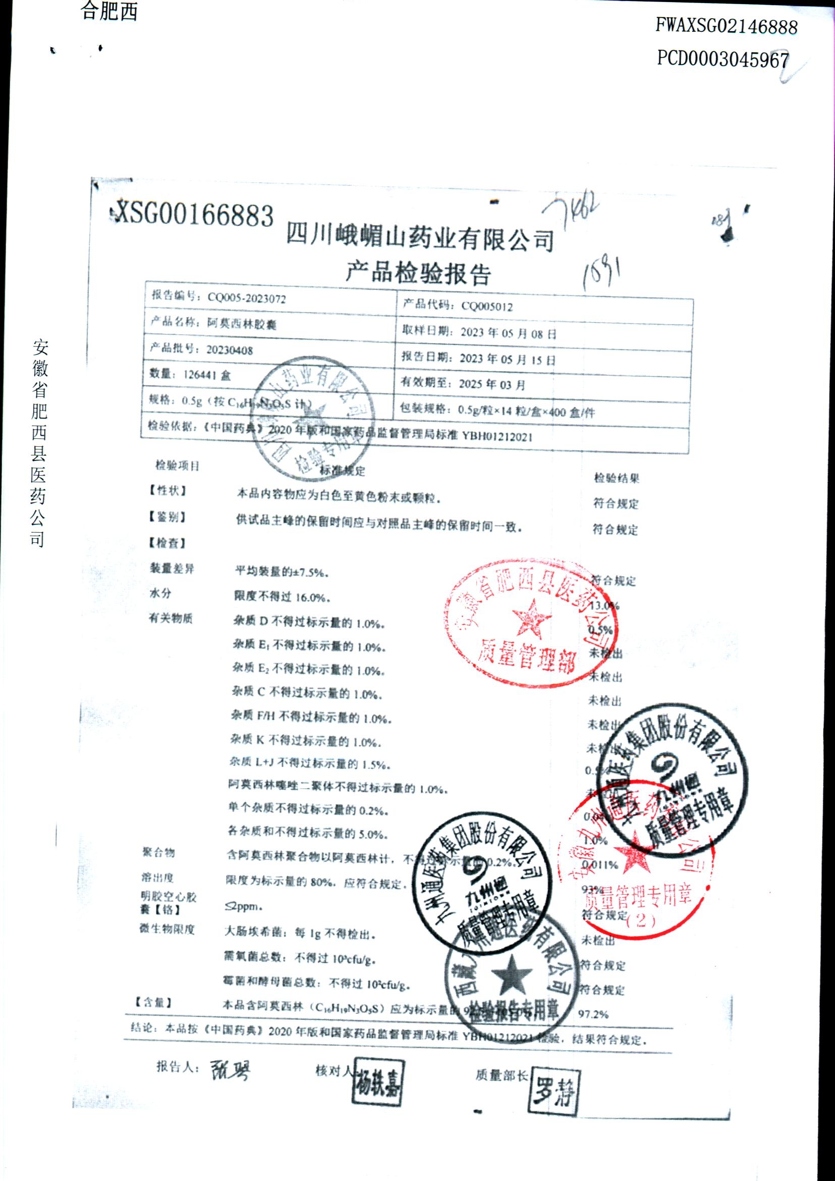 阿莫西林胶囊 | 0.5g *14粒 | 20230408 | 查看详情 |