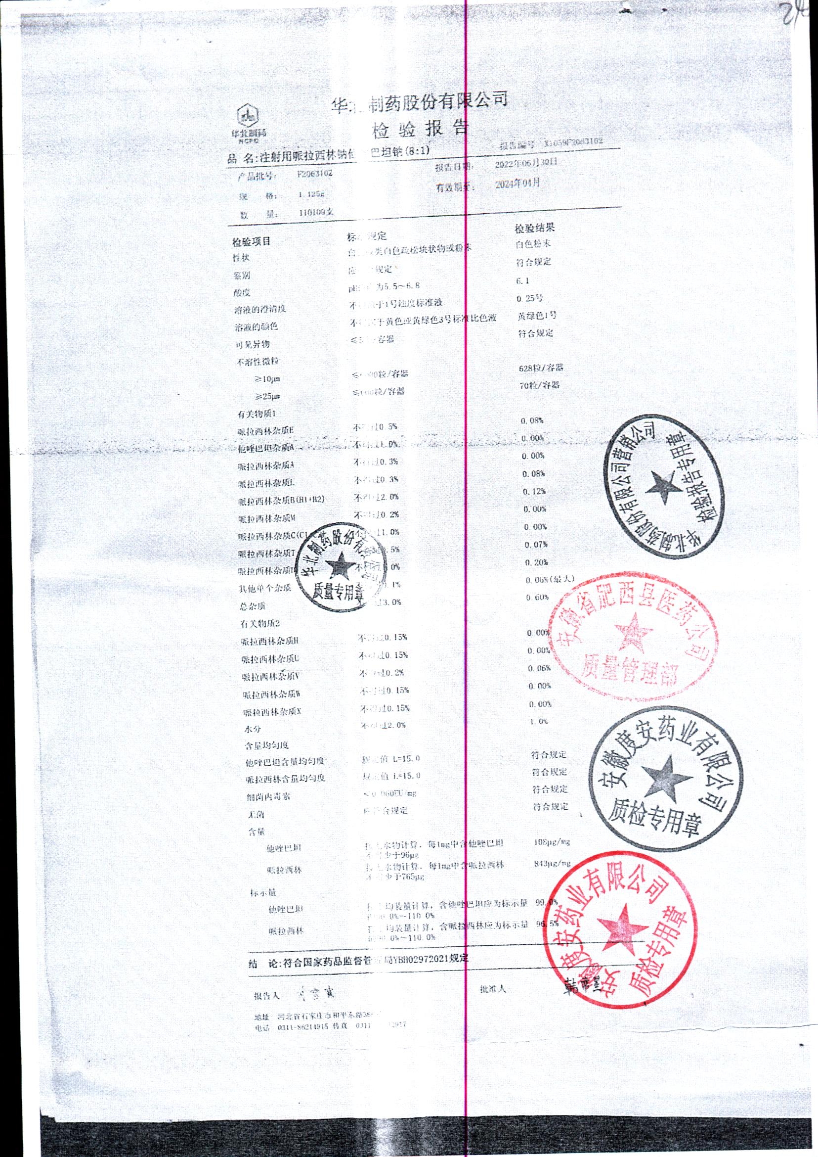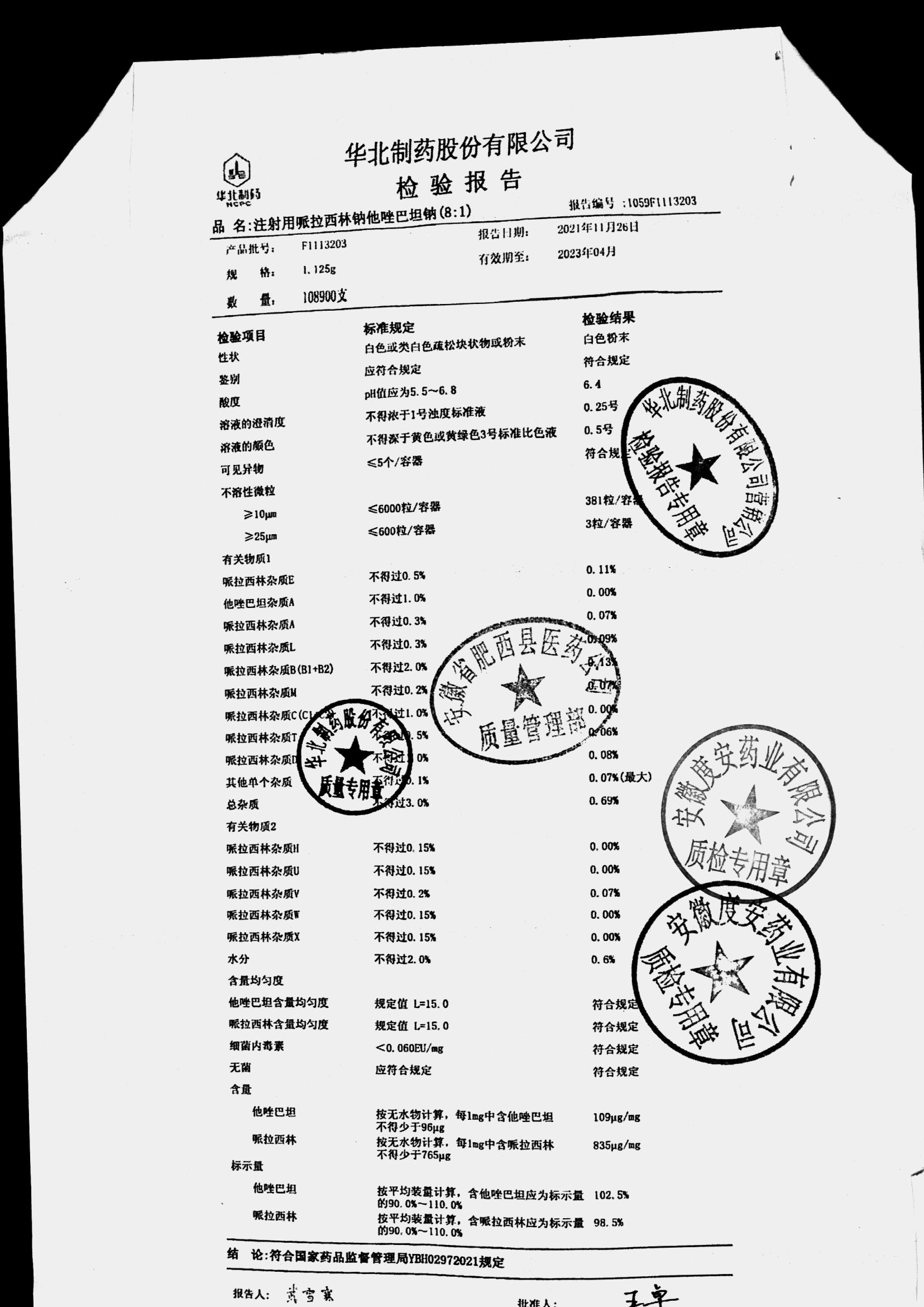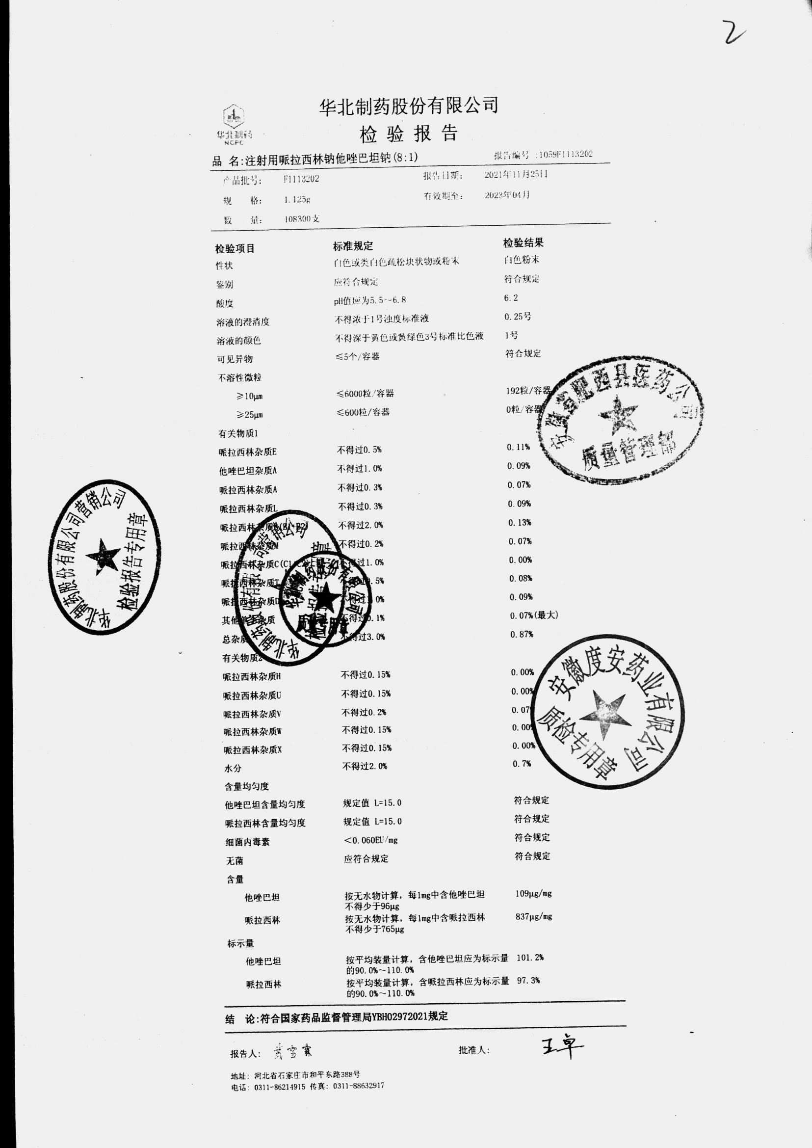 注射用哌拉西林钠他唑巴坦钠 | 1.125g | F1113202/2 | 查看详情 |
