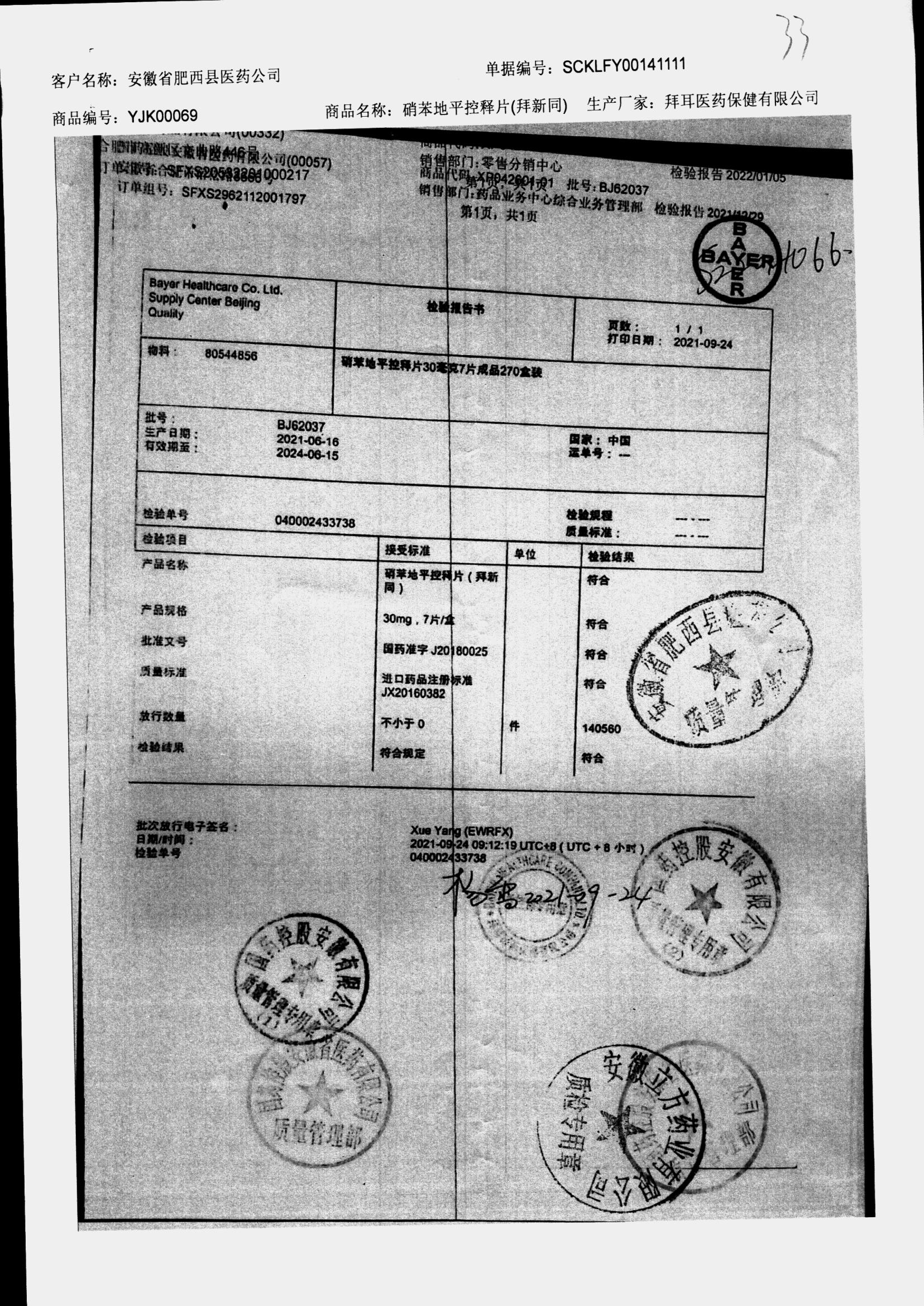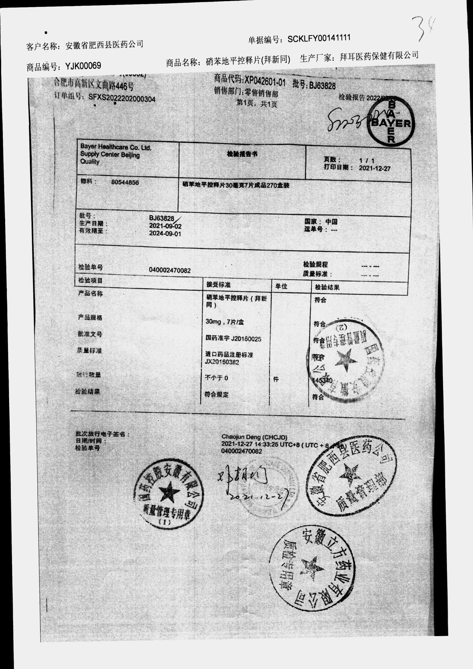 药检报告