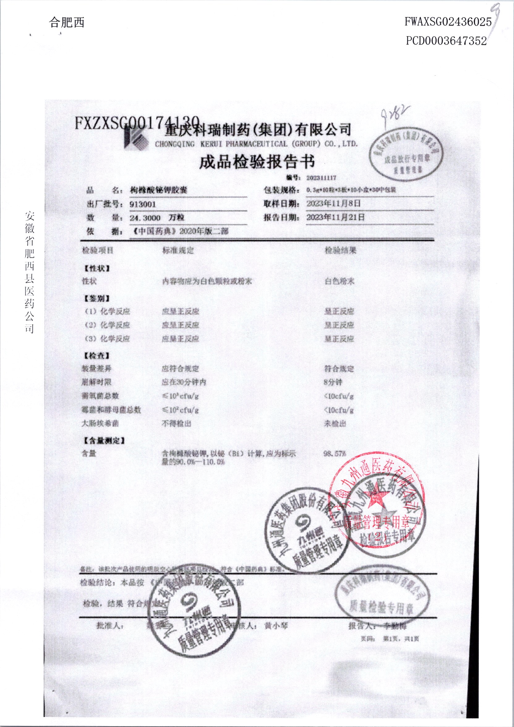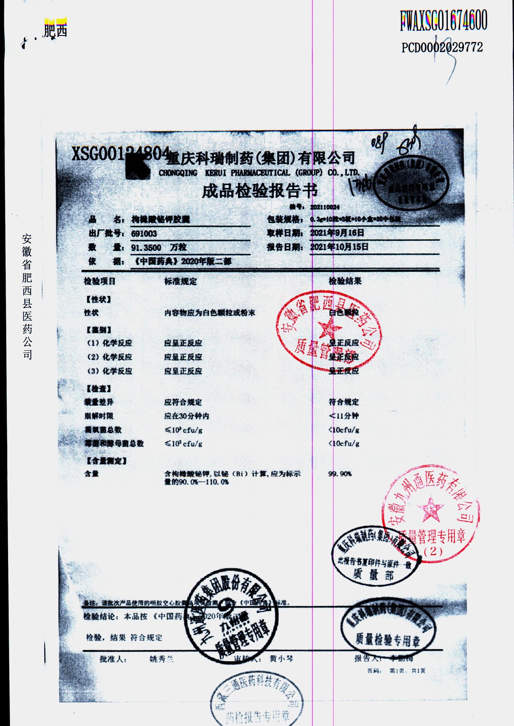 枸橼酸铋钾胶囊 | 0.3g*30粒 | 913001 | 查看详情 |