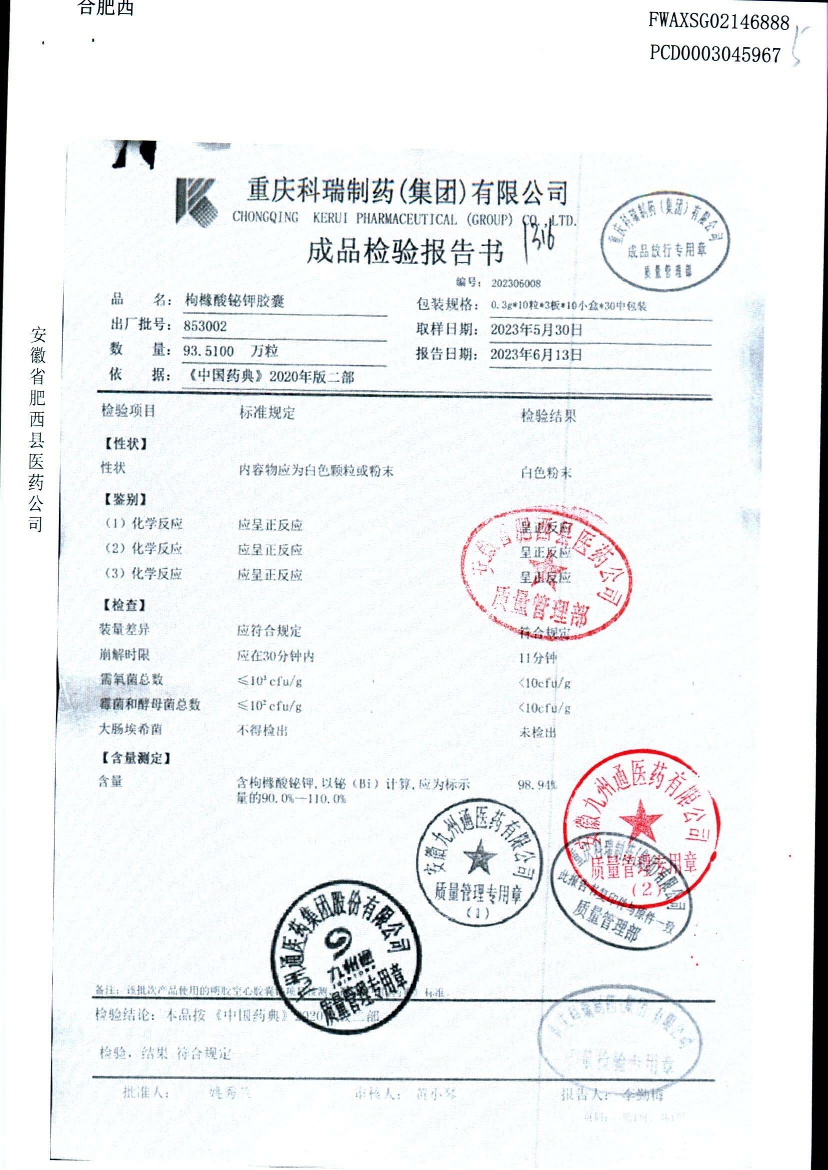 枸橼酸铋钾胶囊 | 0.3g*30粒 | 853003 | 查看详情 |