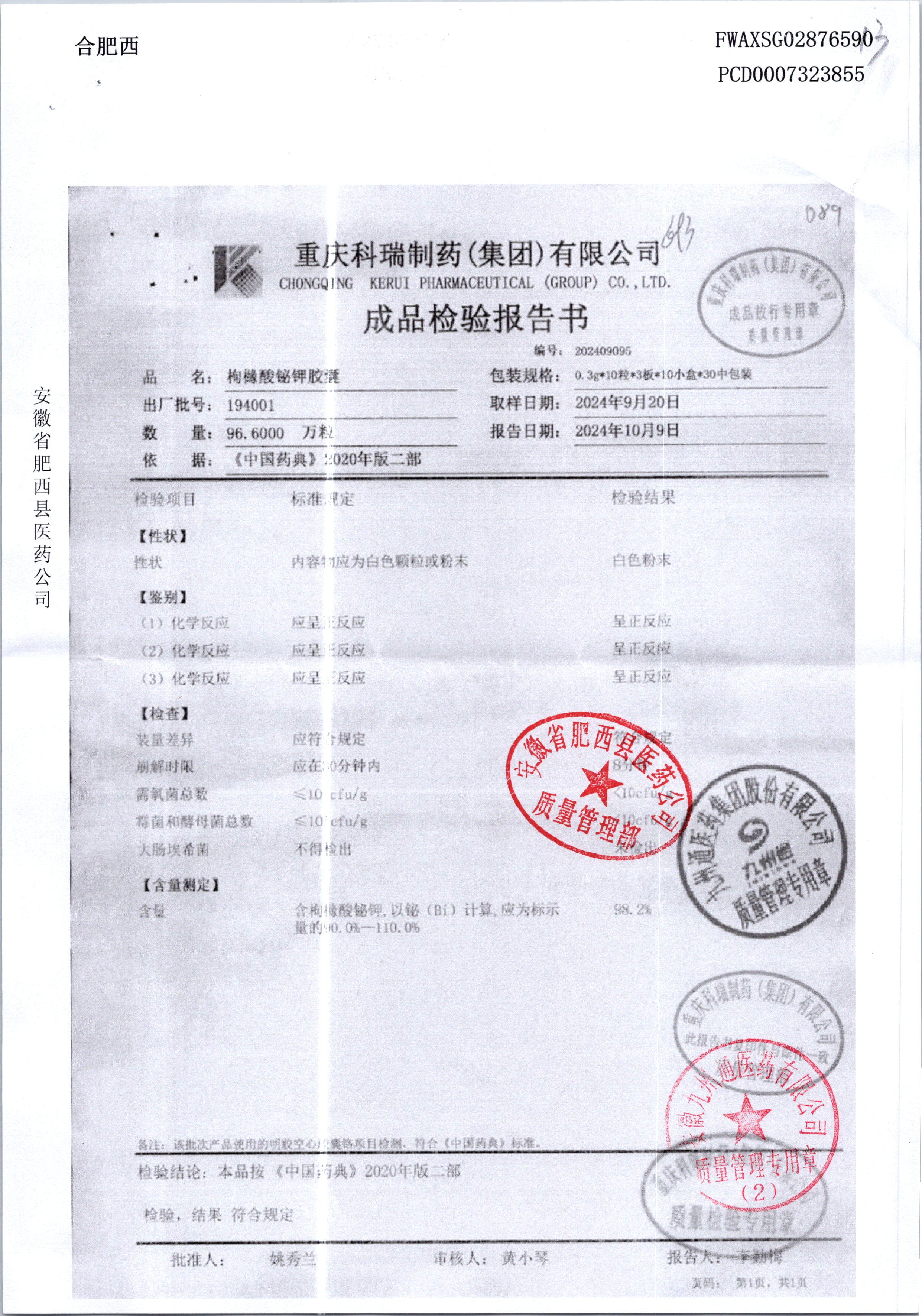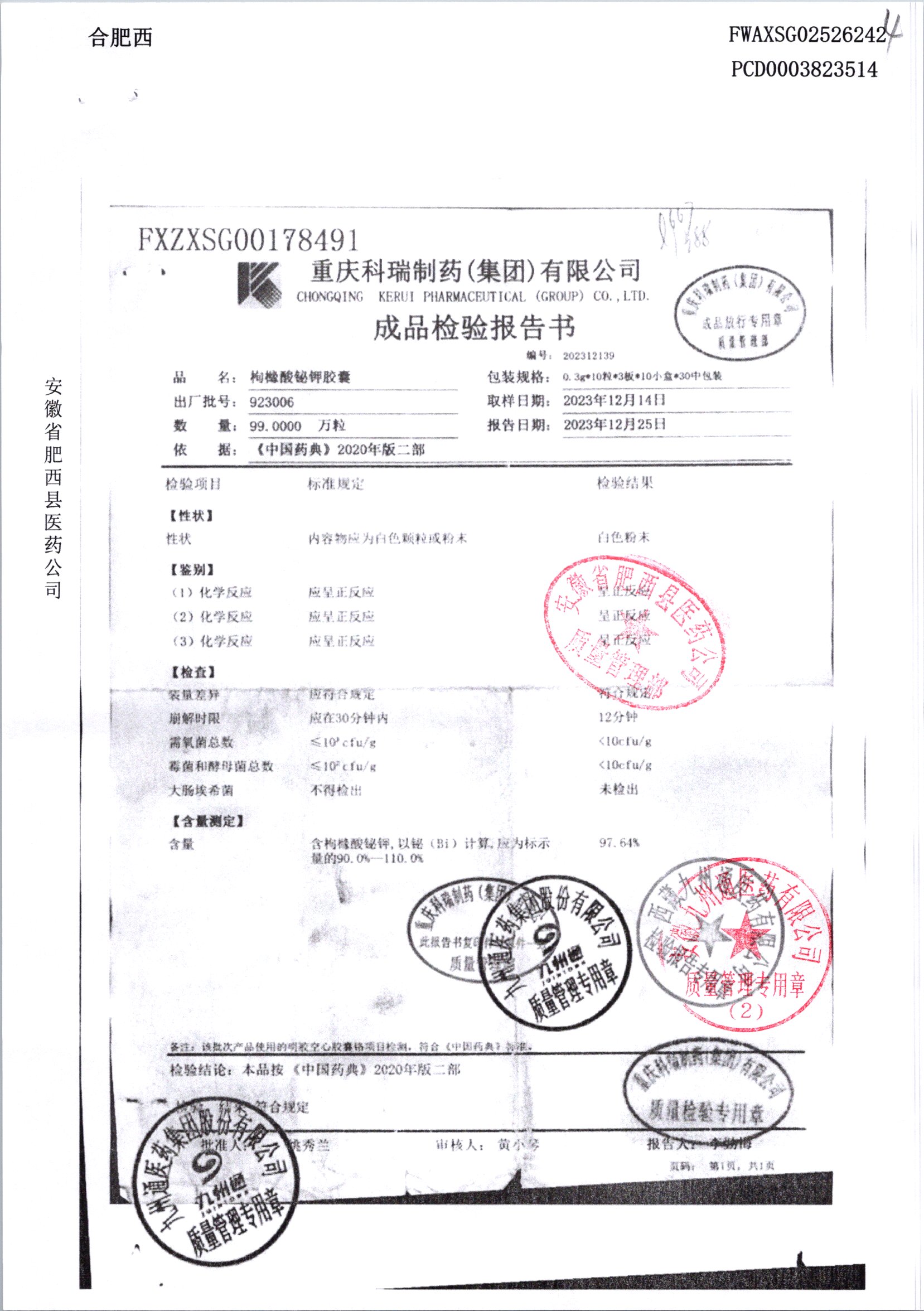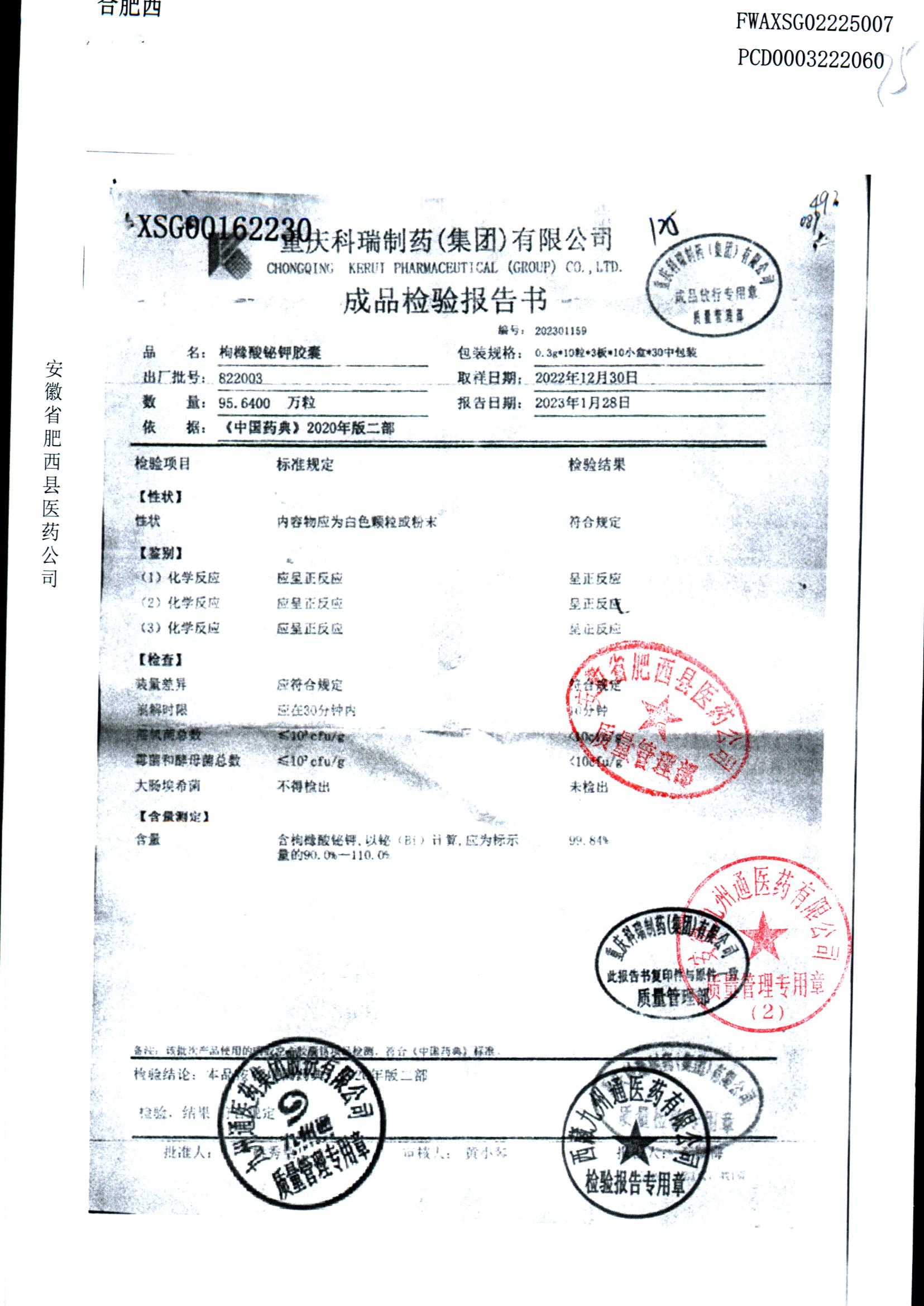 名称 | 规格 | 批号 | 药检报告 |