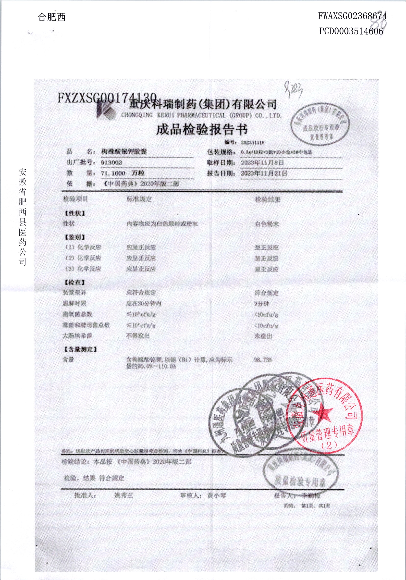 枸橼酸铋钾胶囊 | 0.3g*30粒 | 913002 | 查看详情 |