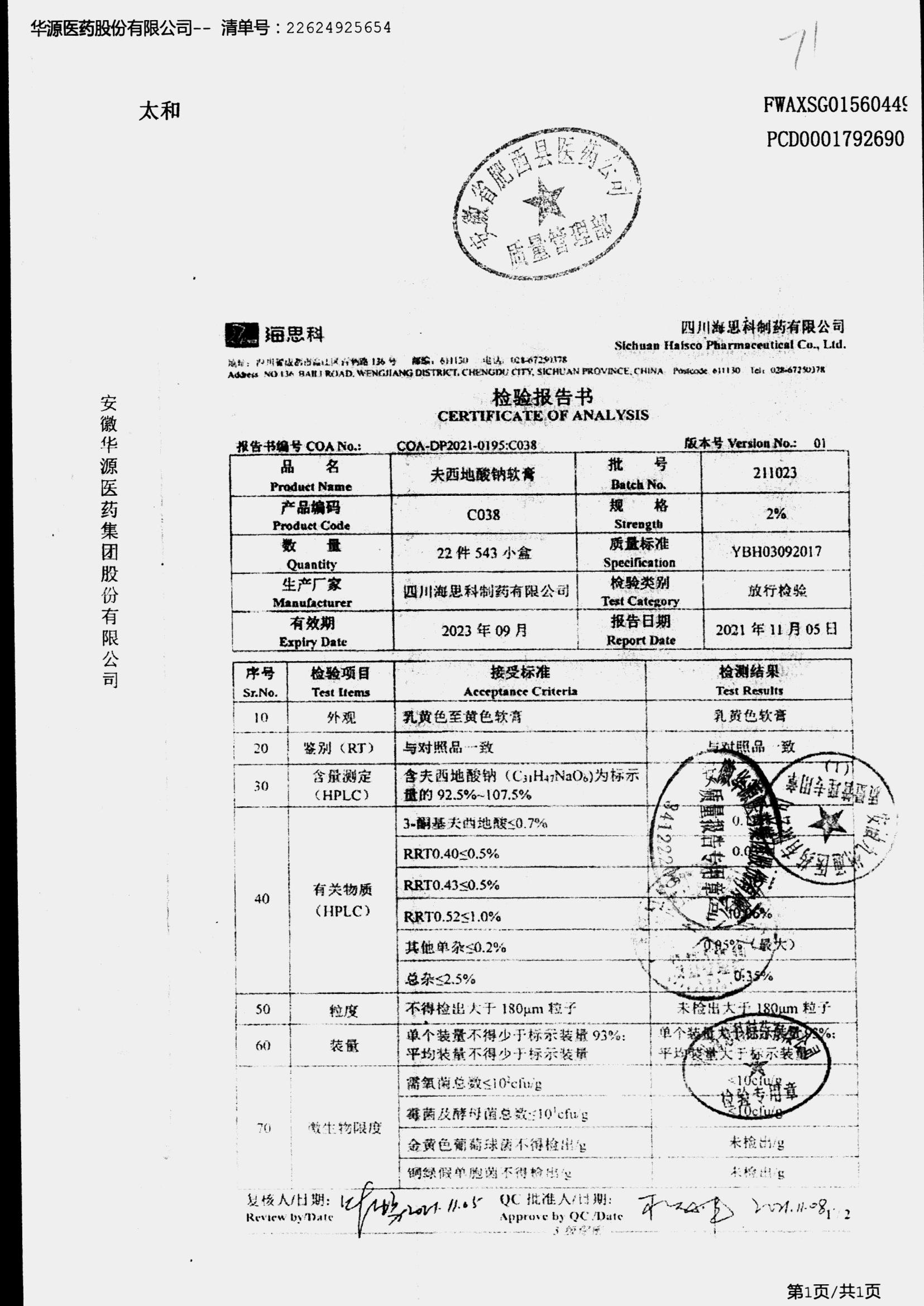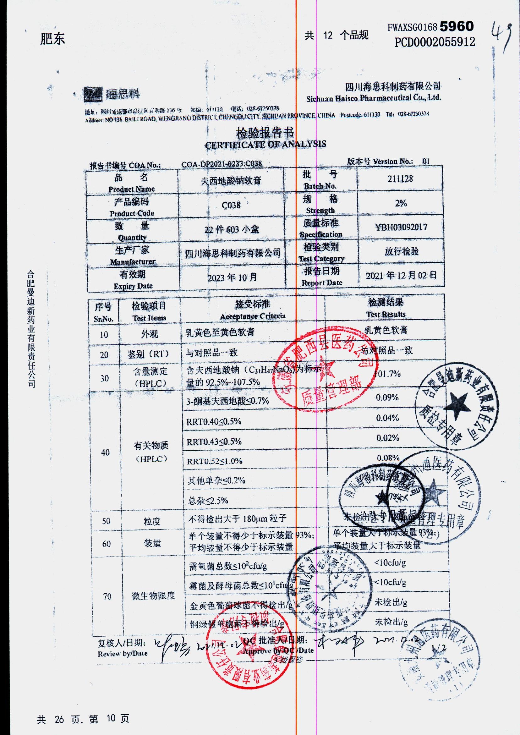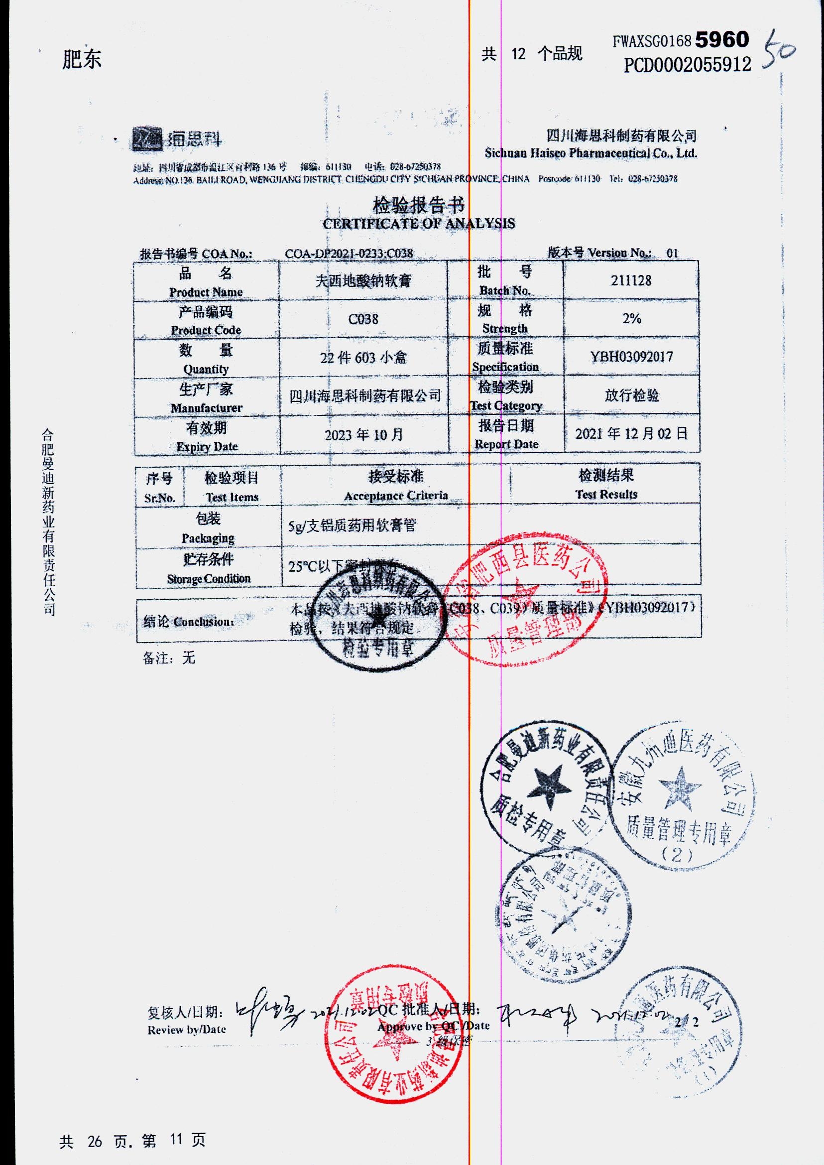 夫西地酸钠软膏 | 2% | 211128/2 | 查看详情 |