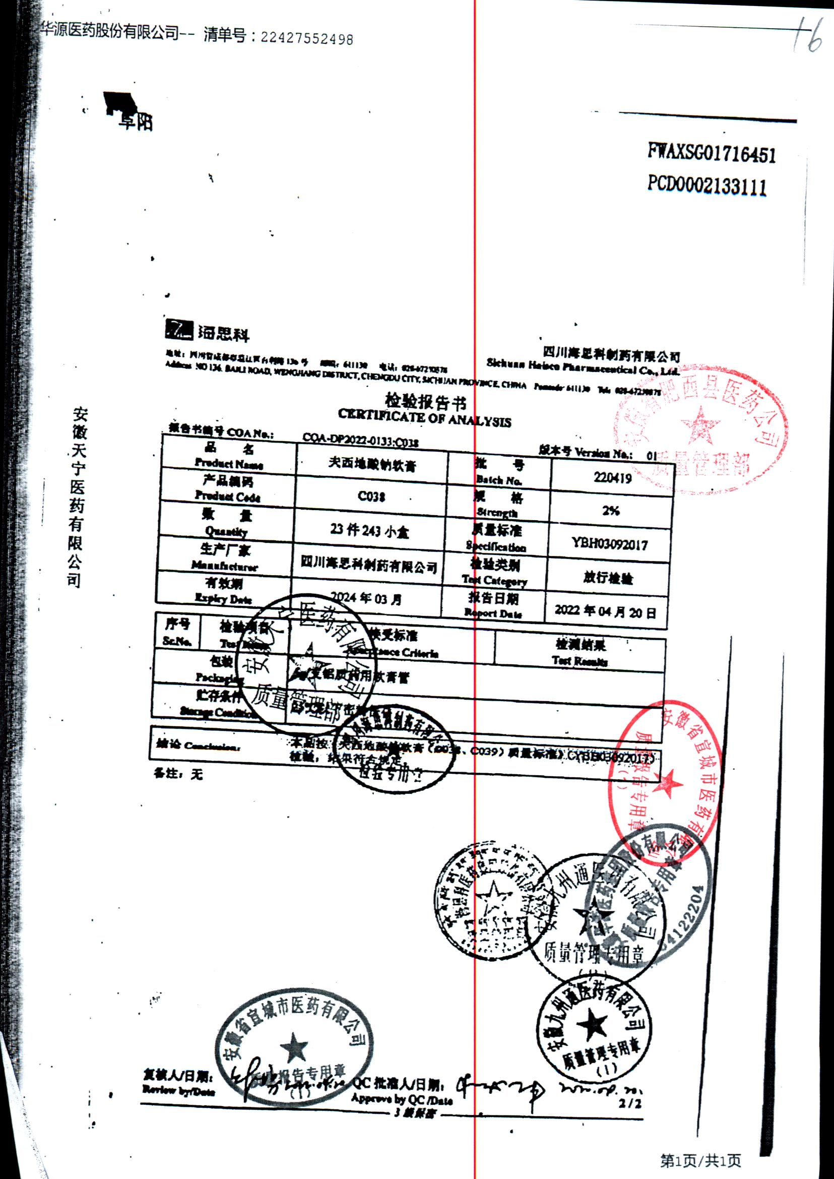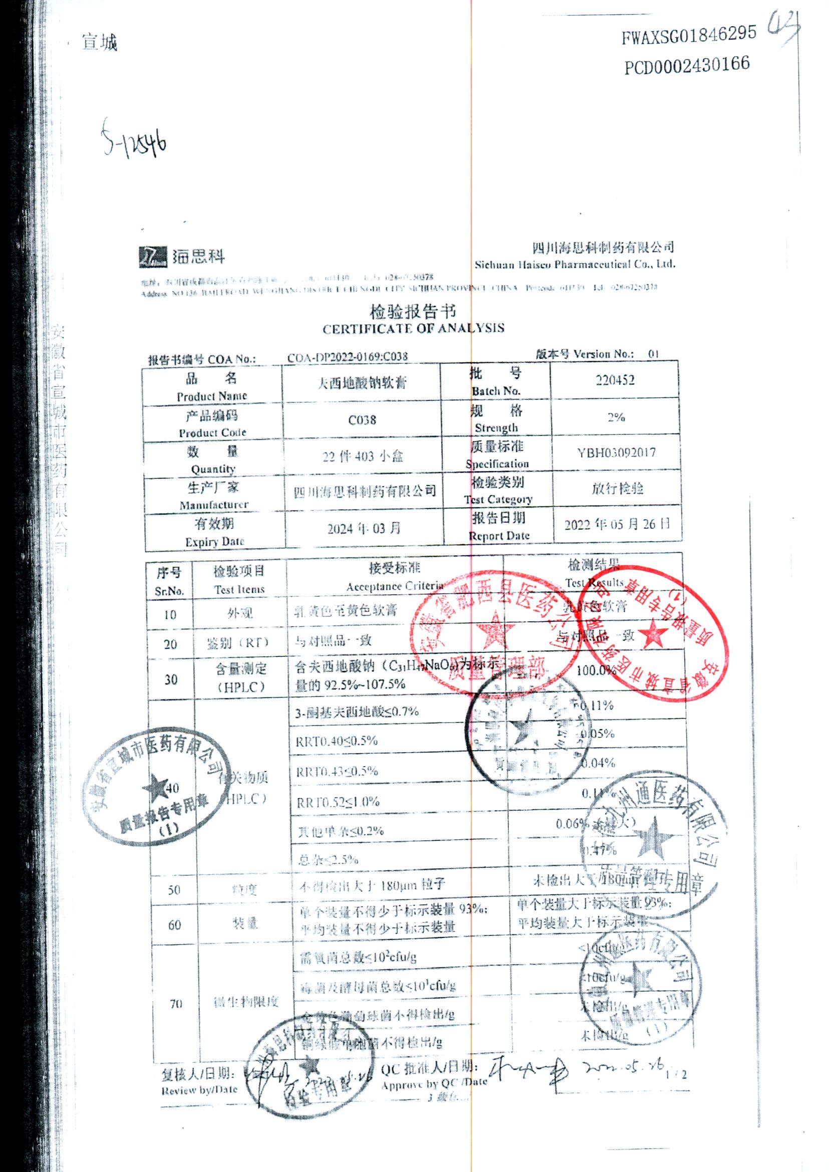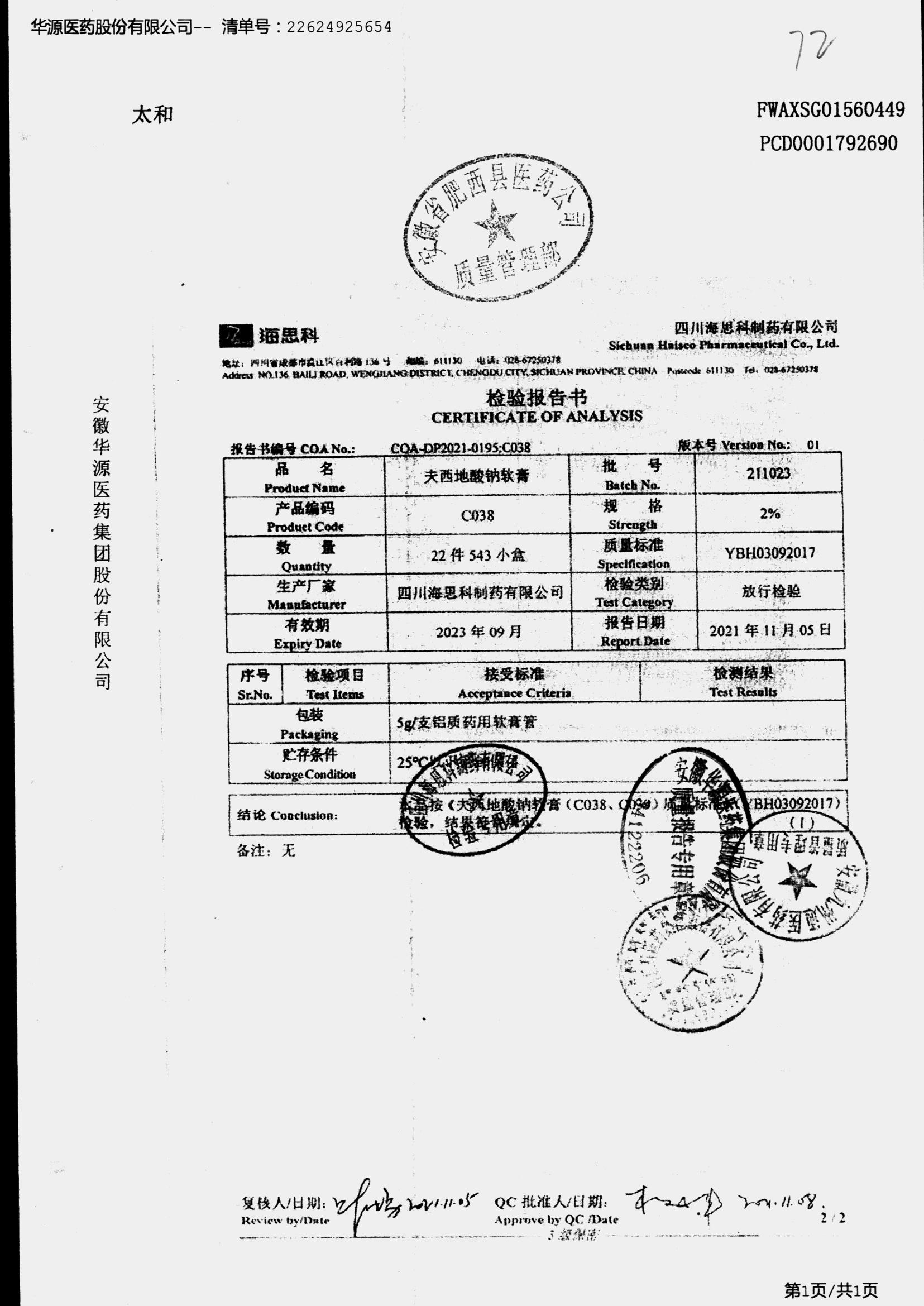 夫西地酸钠软膏 | 2% | 211128/2 | 查看详情 |
