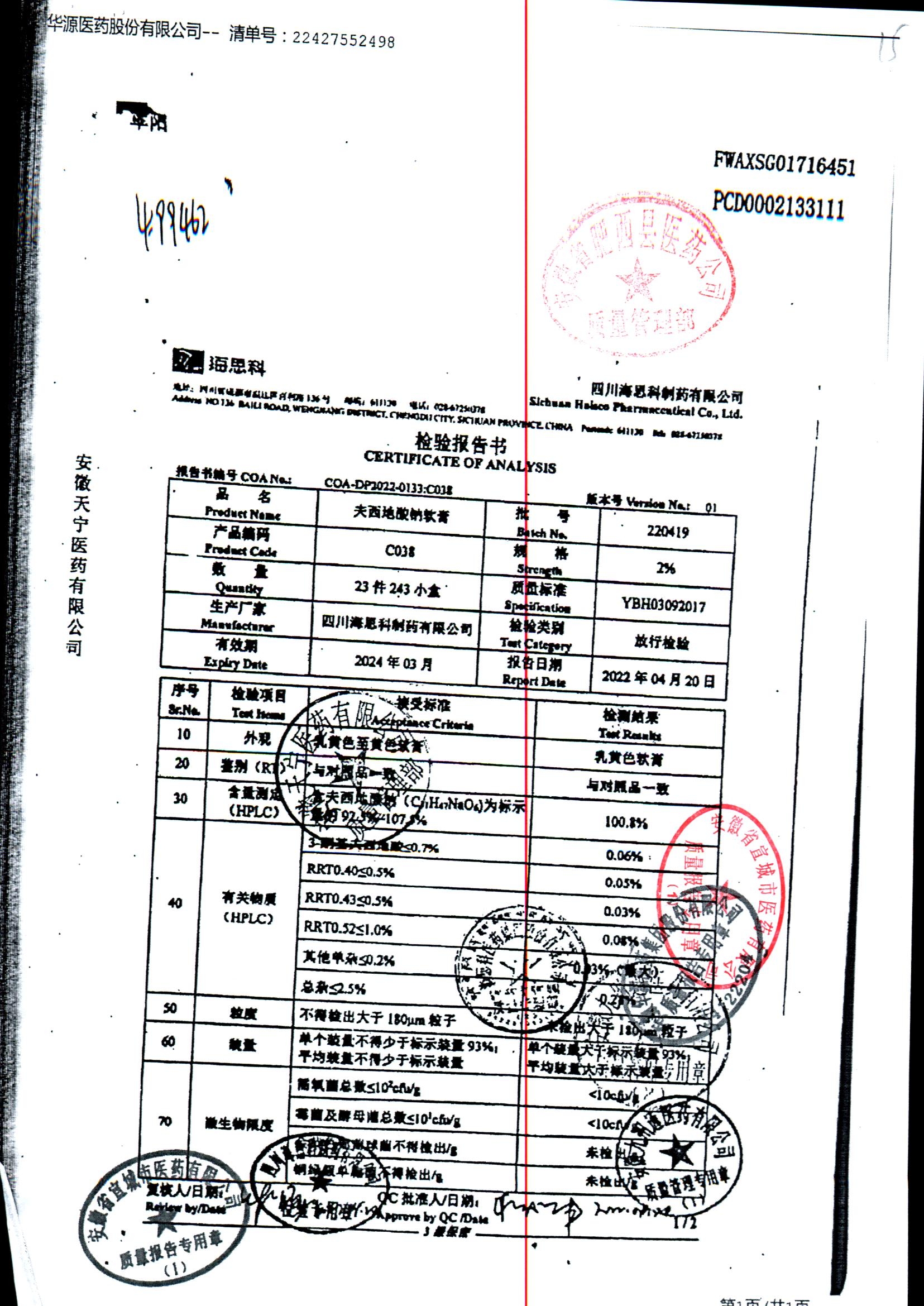 夫西地酸钠软膏 | 2% | 220419/2 | 查看详情 |