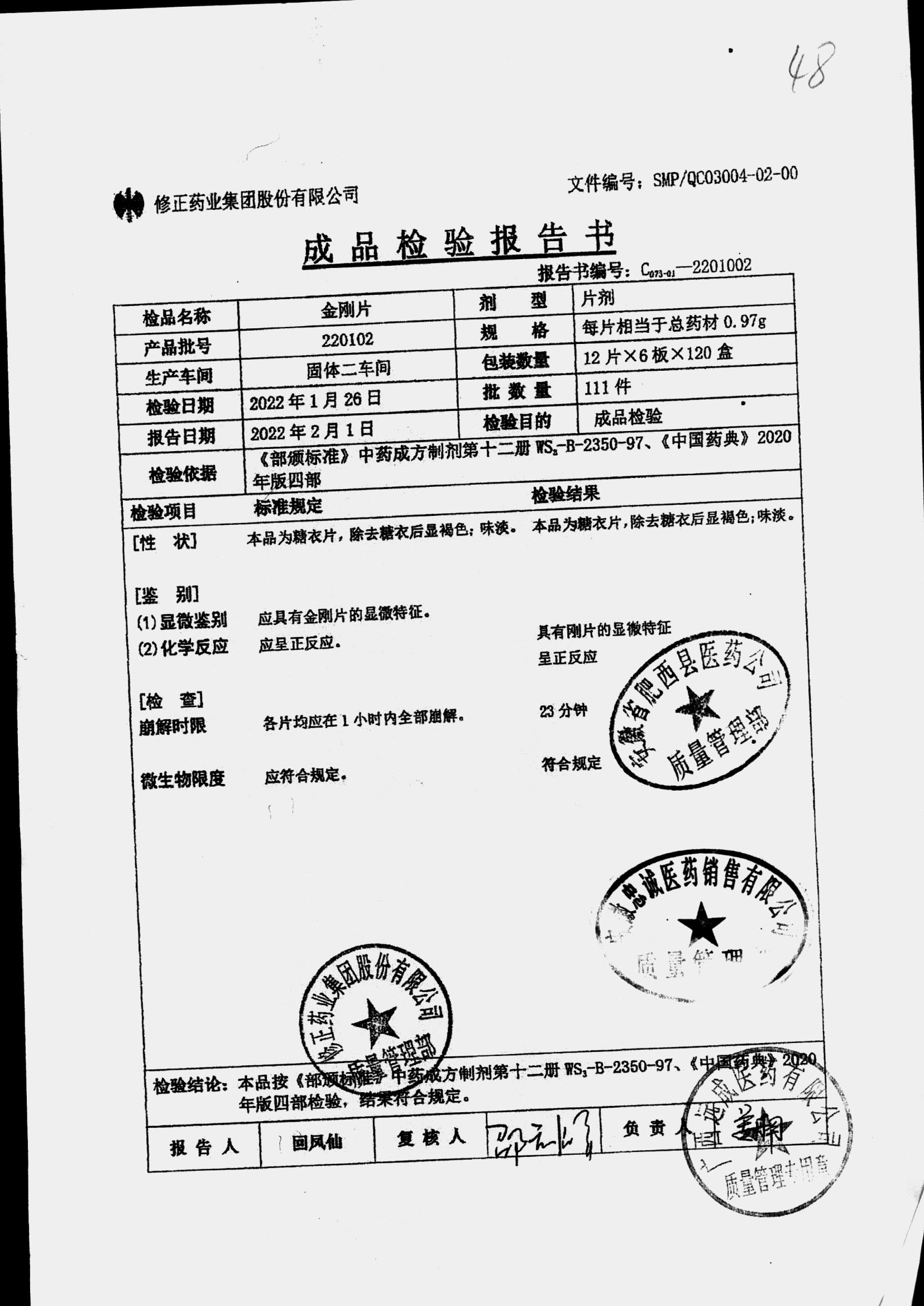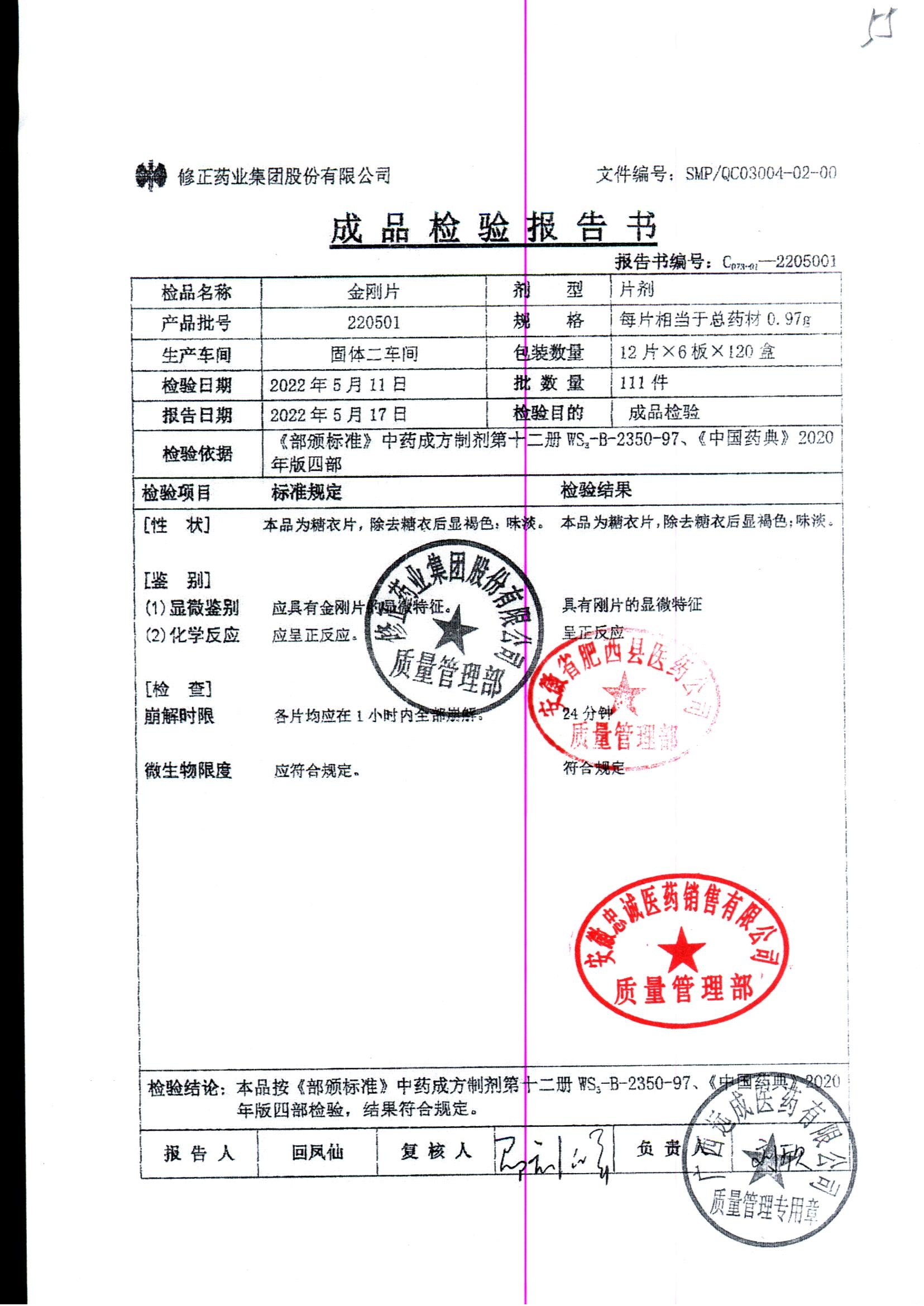 药检报告