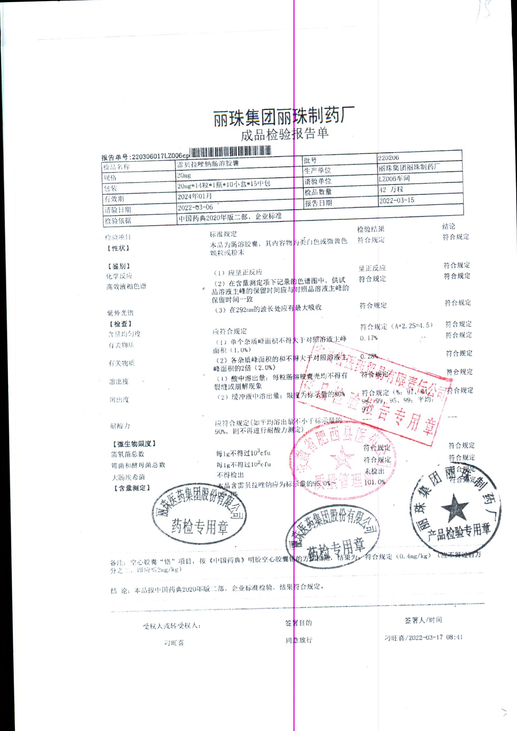 雷贝拉唑钠肠溶胶囊 | 20mg*14粒 | 220206 | 查看详情 |